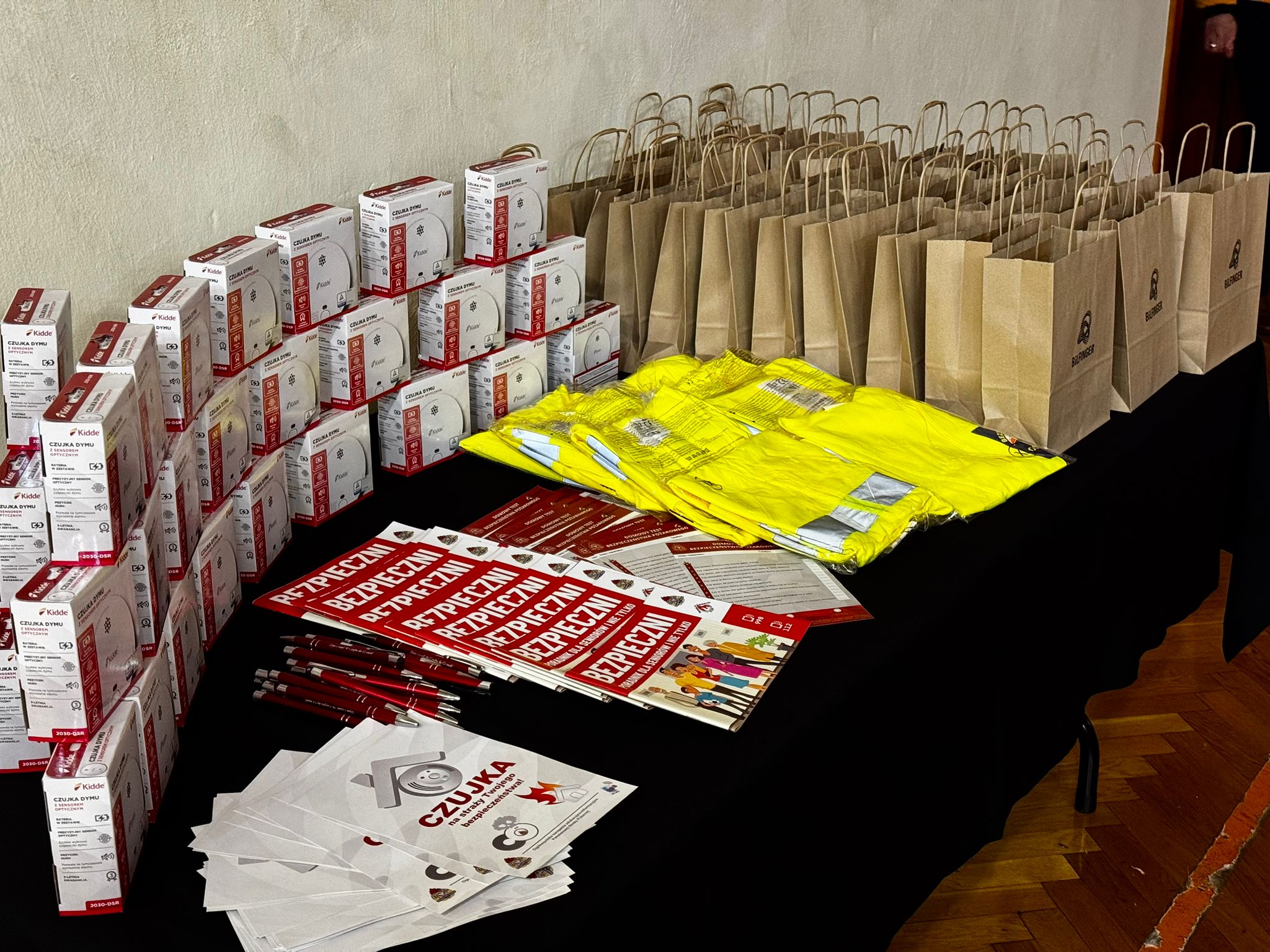 Każdy z uczestników prelekcji otrzymał czujkę dymu oraz drobny upominek ufundowany przez firmę Brifinger oraz Stowarzyszenie „Bezpieczny Powiat”. Sponsorem czujek była firma Brifinger, która wspiera działania profilaktyczne na rzecz poprawy bezpieczeństwa mieszkańców powiatu.