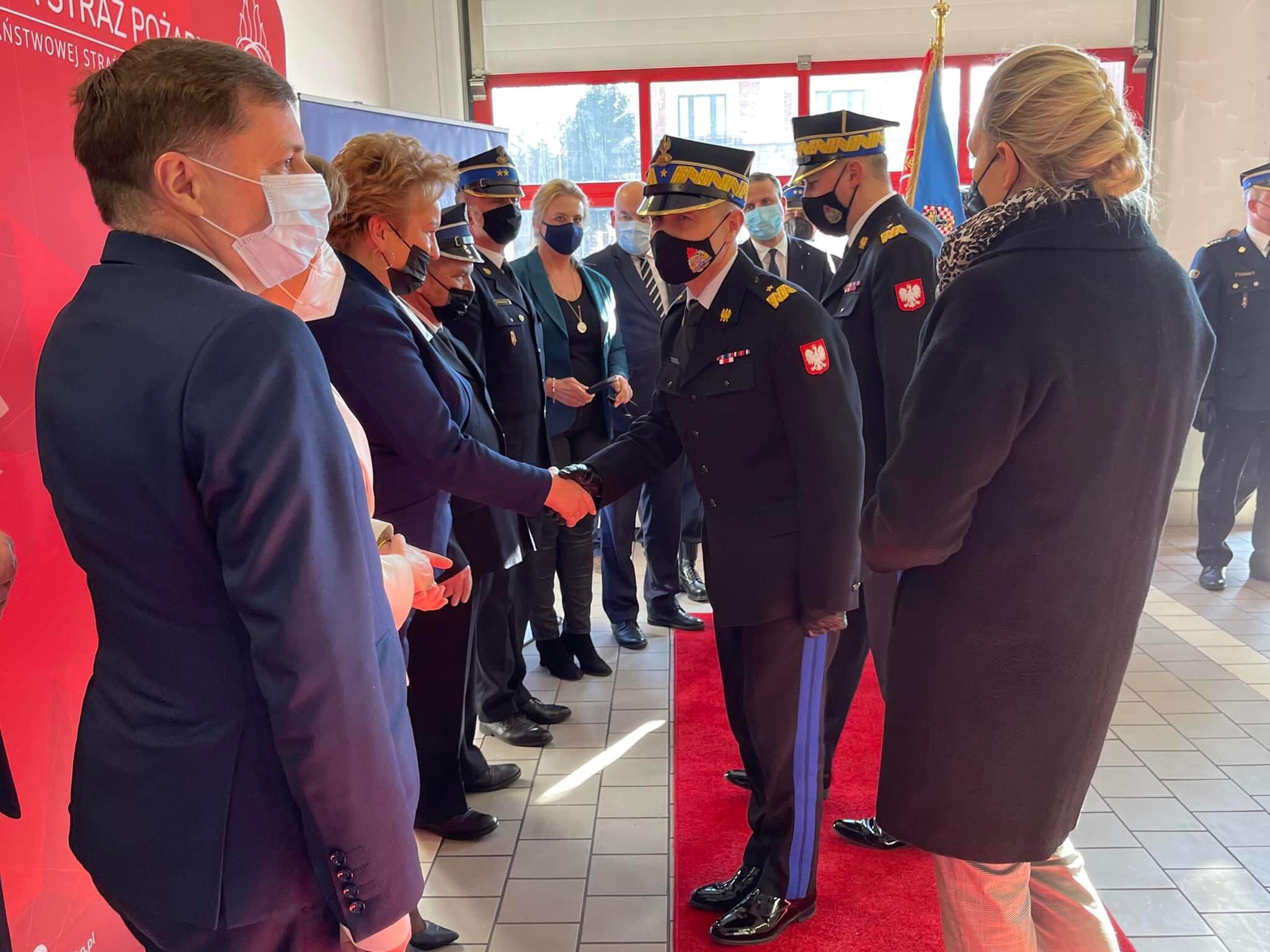 Łącznie przekazano17 promes na zakup 4 ciężkich samochodów ratowniczo-gaśniczych i 13 średnich samochodów ratowniczo-gaśniczych. Promesy wręczyli zaproszeni goście: Pani Minister Marlena Maląg - Minister Rodziny i Polityki Społecznej, Pan Minister Jan Dziedziczak - Sekretarz Stanu w KPRM, Pani Katarzyna Sójka – Poseł na Sejm RP, Pan Piotr Kaleta – Poseł na Sejm RP, Pan Tomasz Ławniczak – Poseł na Sejm RP, Pan Jan Mosiński – Poseł na Sejm RP oraz Pani Anna Lis – Przedstawiciel Pani Poseł do Parlamentu Europejskiego Andżeliki Możdżanowskiej, Pan nadbryg. Andrzej Bartkowiak – Komendant Główny Państwowej Straży Pożarnej, Pan Michał Zieliński – Wojewoda Wielkopolski, Pan nadbryg. Dariusz Matczak – Wielkopolski Komendant Wojewódzki Państwowej Straży Pożarnej.