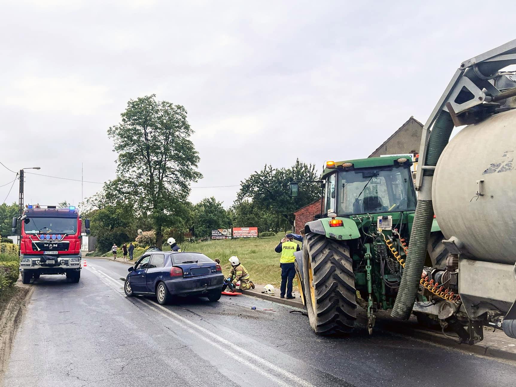 Samochód osobowy uderzył w ciągnik rolniczy