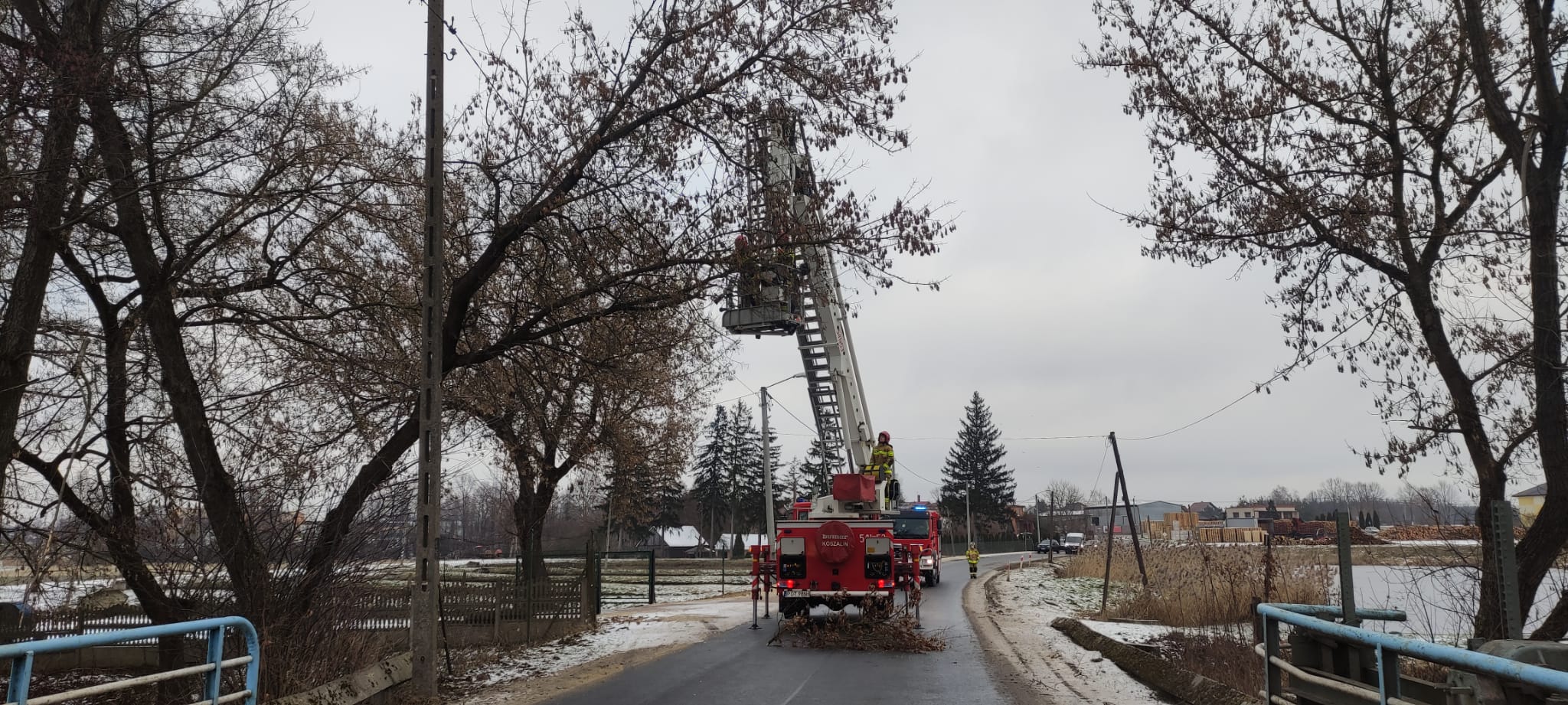 W ciągu ostatnich dni strażacy usuwali skutki silnie wiejących wiatrów oraz burz śnieżnych, które wystąpiły na terenie powiatu ostrzeszowskiego. Kumulacja zgłoszeń do Stanowiska Kierowania Komendanta Państwowej Straży Pożarnej w Ostrzeszowie nastąpiła miedzy godz. 11 a 13 w dniu 17 stycznia 2022 roku Odnotowano łącznie 16 zdarzeń, z których: 12 dotyczyło usunięcia zagrożenia jakie stwarzały powalone drzewa oraz nadłamane konary, 2 dotyczyły uszkodzonych słupów energetycznych, jedno dotyczyło uszkodzonego szczytu budynku gospodarczego oraz jedno związane było z zabezpieczeniem masztu flagowego na budynku gminy. Najwięcej zdarzeń odnotowano na terenie gminy Doruchów – 5.