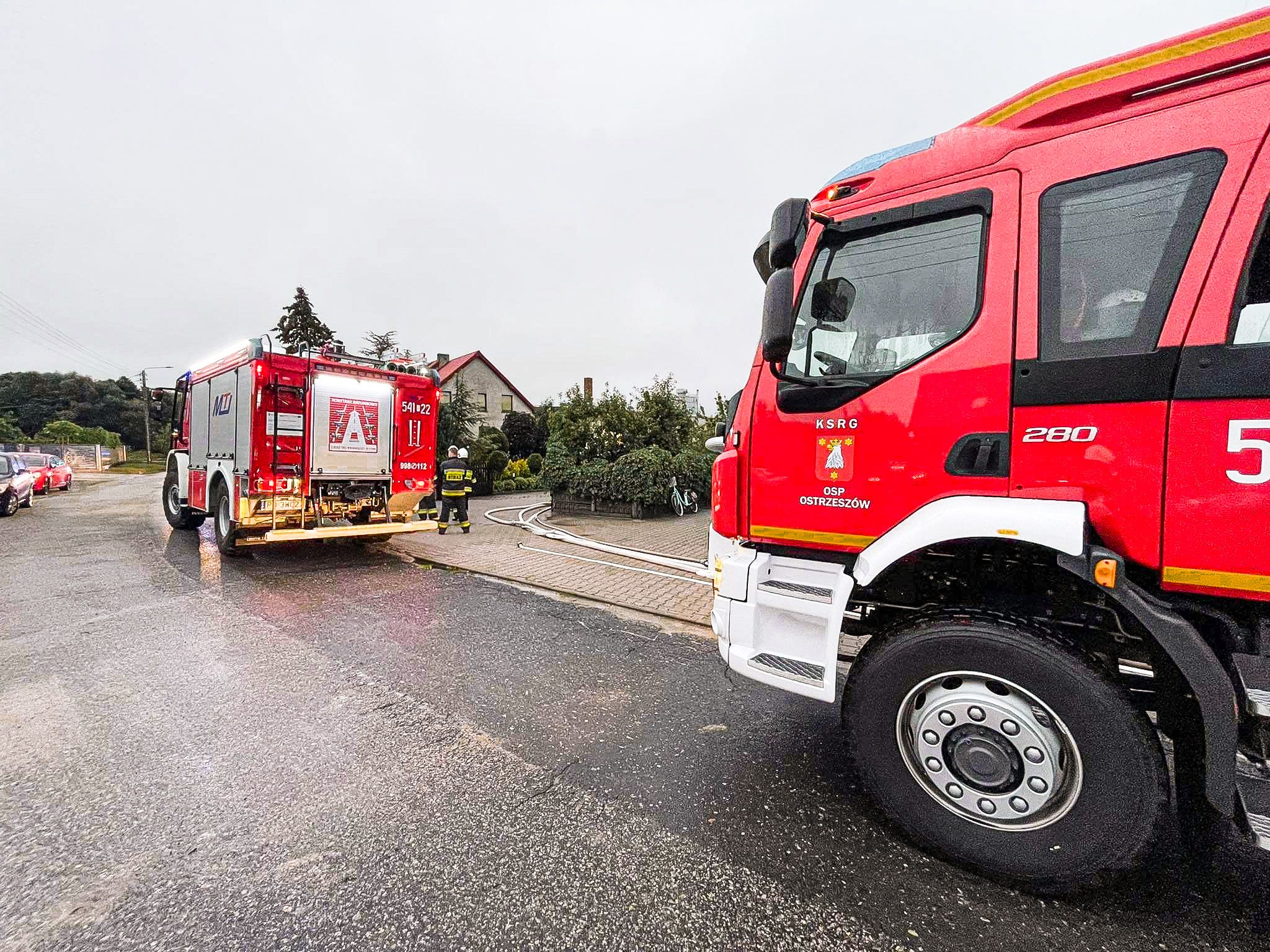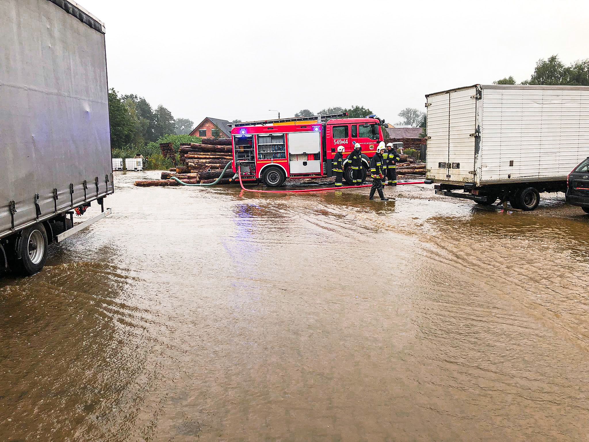 Strażacy usuwali skutki intensywnych opadów deszczu i silnego wiatru