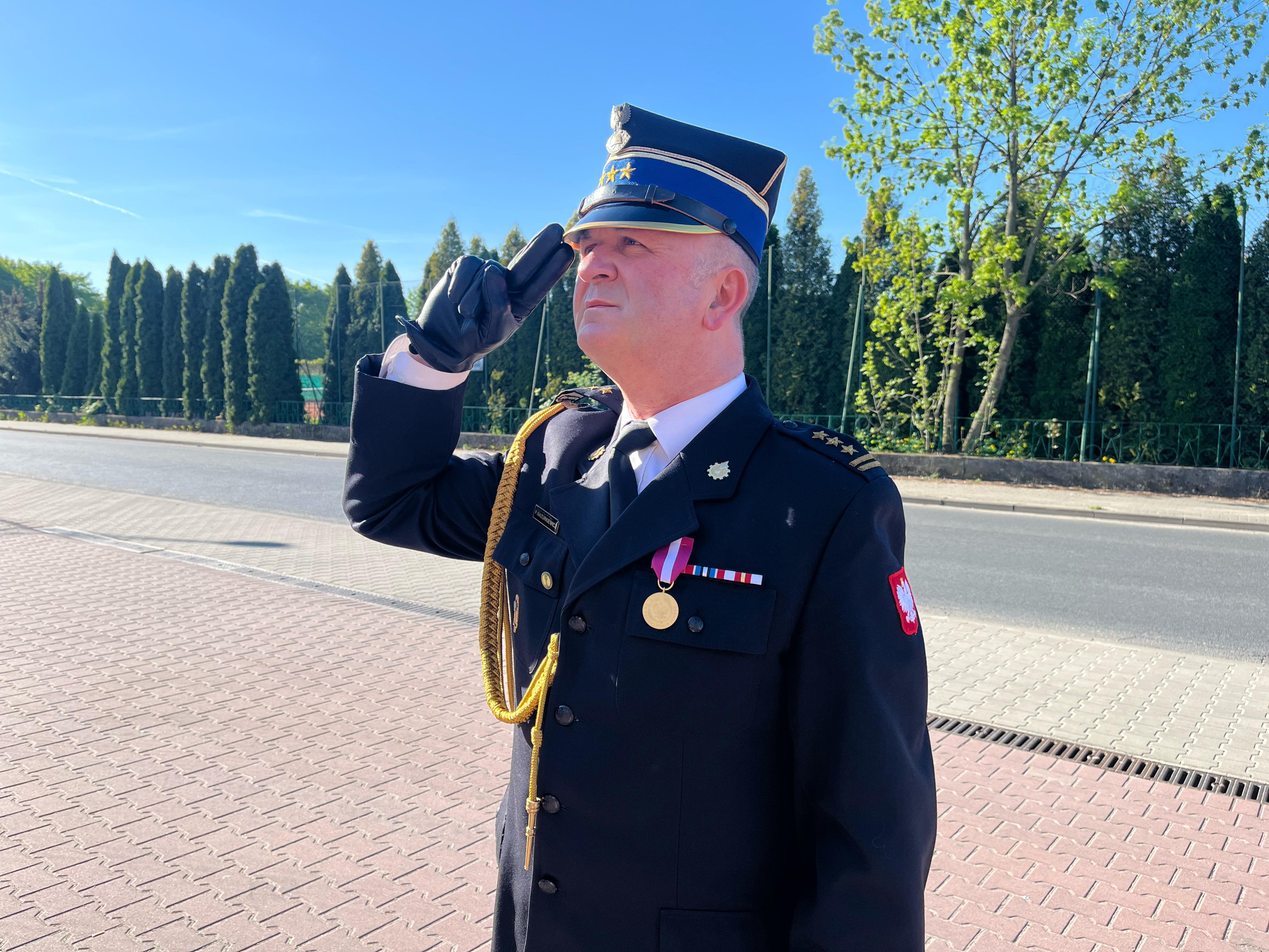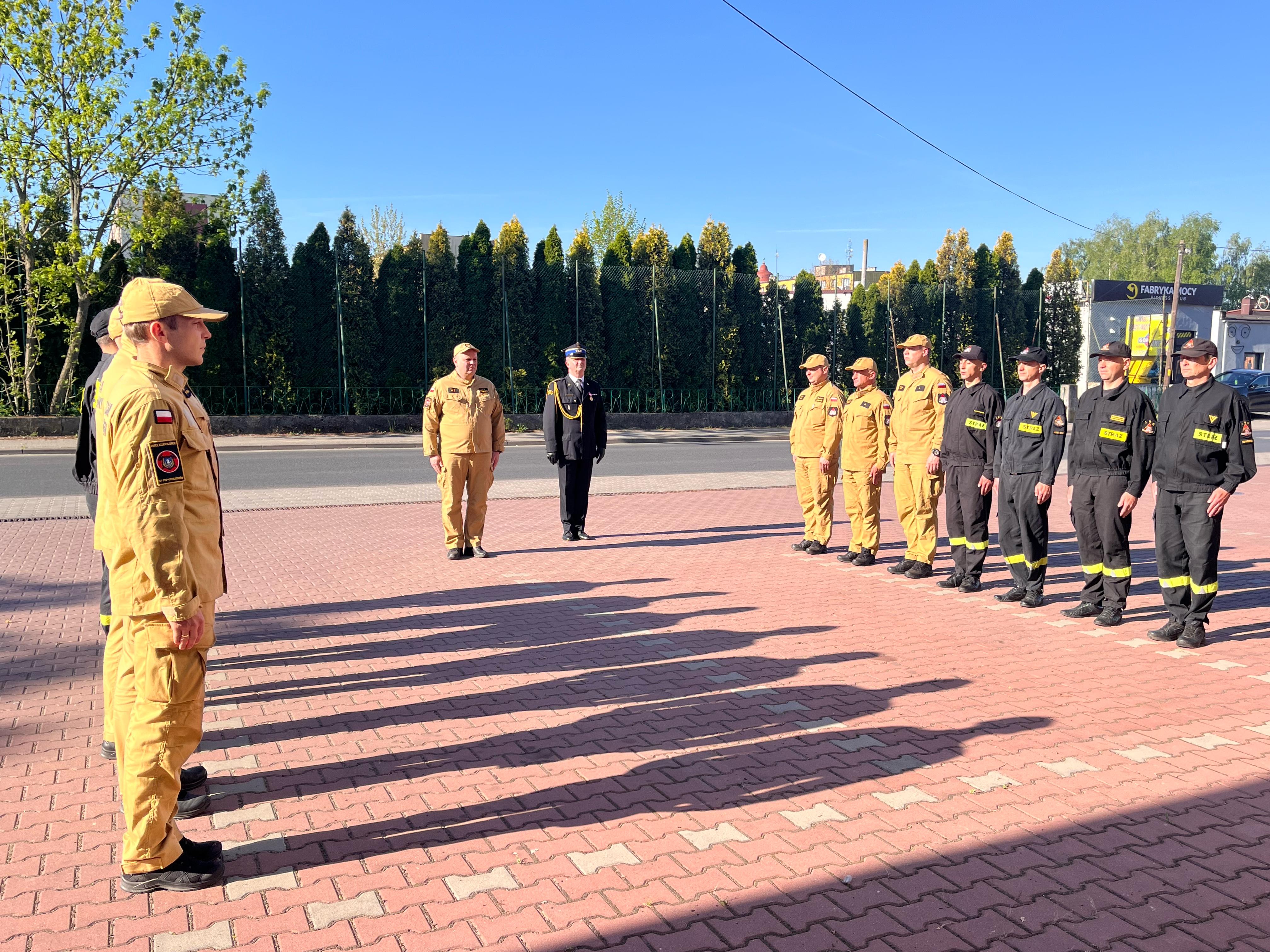 Na zmianie służby odbyła się oficjalna zbiórka, podczas której uroczyście wciągnięto flagę państwową na maszt. W wydarzeniu udział wziął Komendant Powiatowy st. bryg. Piotr Mazurkiewicz.