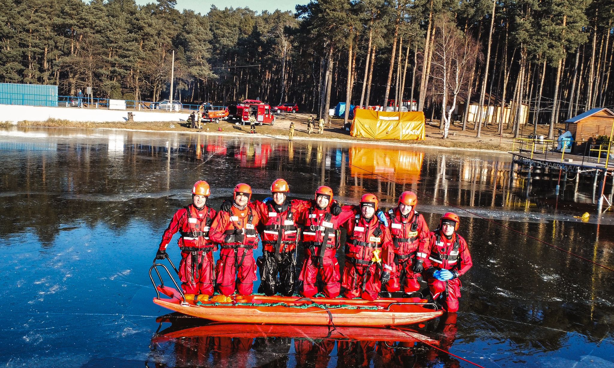 Celem szkolenia było doskonalenie technik i utrwalenie wiedzy ratownikom z zakresu zasad bezpieczeństwa oraz zagrożeń, jakie mogą wystąpić w trakcie prowadzenia działań ratowniczych na zbiornikach wodnych w sezonie zimowym.