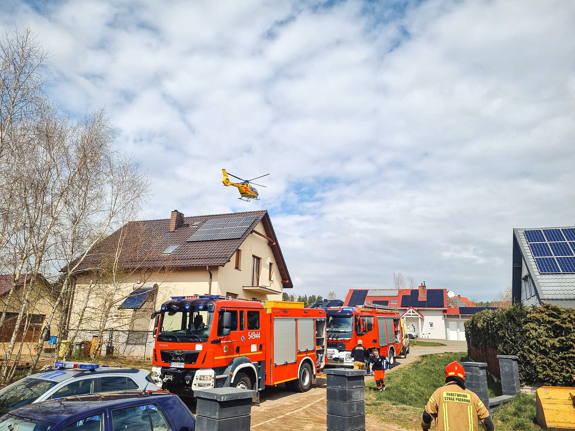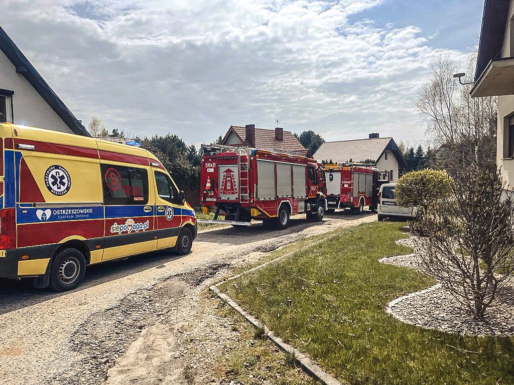 Działania Straży Pożarnej polegały na zabezpieczeniu miejsca zdarzenia oraz przeprowadzeniu rozpoznania. U dwóch osób poszkodowanych przystąpiono do udzielania kwalifikowanej pierwszej pomocy medycznej. Po przybyciu kolejnych sił i środków z Jednostki Ratowniczo Gaśniczej z Ostrzeszowa oraz Zespołu Ratownictwa Medycznego wspólnie udzielano medycznych czynności ratunkowych osobom poszkodowanym. Podczas zdarzenia ujawniono trzecią osobę poszkodowaną, która znajdowała się na piętrze. Ze względy na stan osoby poszkodowanej odstąpiono od medycznych czynności ratowniczych. Wyznaczono miejsce lądowania dla Lotniczego Pogotowia Ratunkowego. W dalszym ciągu udzielano pomocy medycznej dwóm osobom poszkodowanym. Na mocy decyzji służb medycznych odstąpiono od medycznych czynności ratunkowych u dziecka.