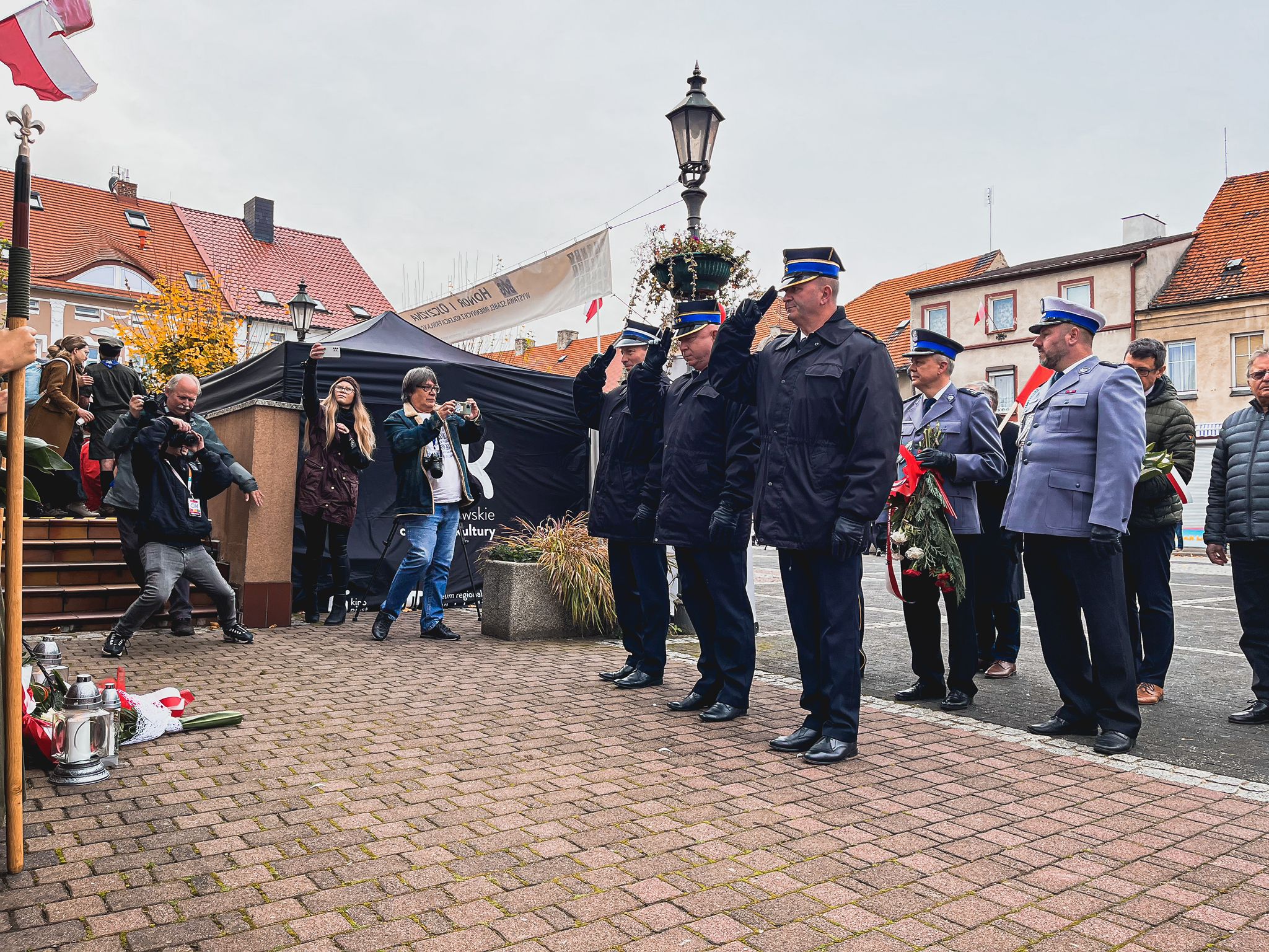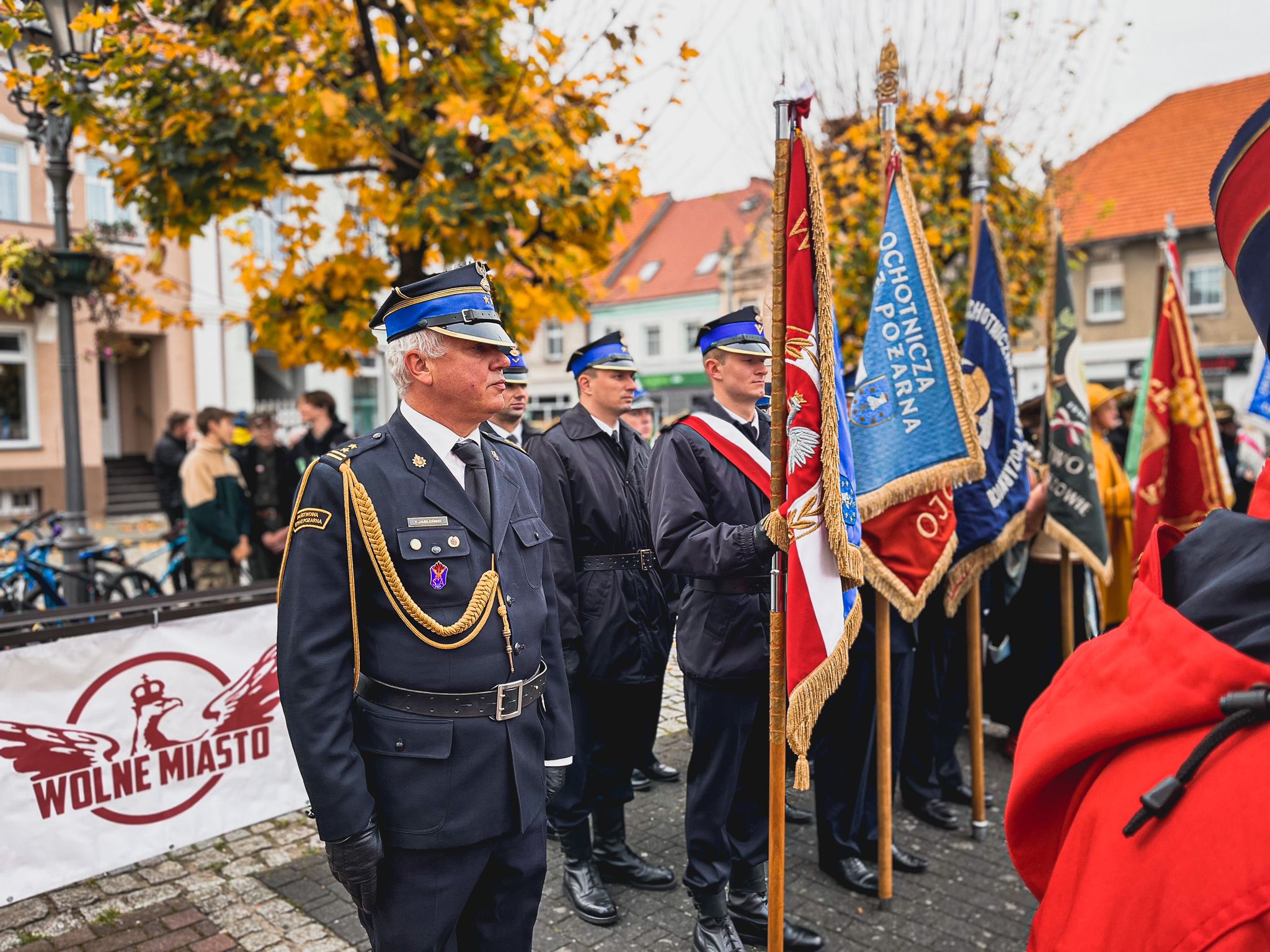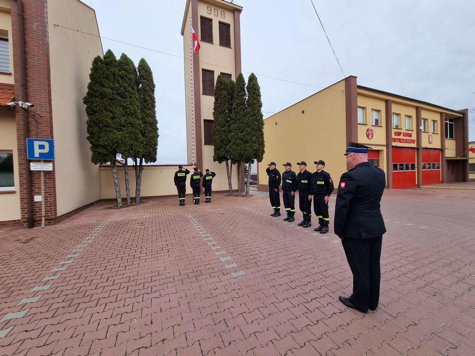 Również w tym dniu Komendant Powiatowy Państwowej Straży Pożarnej w Ostrzeszowie bryg. Piotr Mazurkiewicz wziął udział w Mszy Świętej oraz przemarszu ulicami miasta na rynek Ostrzeszowski z okazji 104-ej rocznicy odzyskania prze Polskę Niepodległości. Na rynku podczas uroczystego apelu podniesiono flagę państwową oraz odśpiewano hymn narodowy. Delegacja z Komendy Powiatowej Państwowej Straży Pożarnej w Ostrzeszowie złożyła kwiaty pod tablicami na budynku Ratusza.