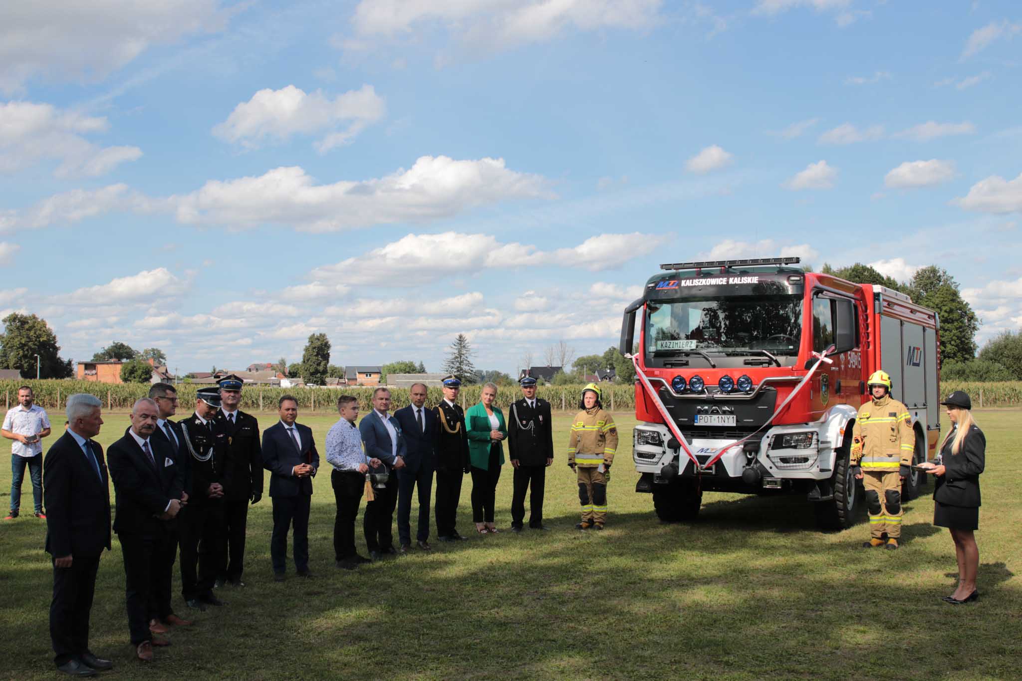 4 września 2022 roku na boisku sportowym w Kaliszkowicach Kaliskich odbył się uroczysty apel związany z poświęceniem i przekazaniem nowego średniego samochodu ratowniczo – gaśniczego dla jednostki Ochotniczej Straży Pożarnej Kaliszkowice Kaliskie. Apel rozpoczął się od złożenia meldunku o gotowości do uroczystości przez dowódcę uroczystości druha Romana Dombka, meldunek odebrał bryg. Tomasz Grelak Zastępca Wielkopolskiego Komendanta Wojewódzkiego Państwowej Straży Pożarnej w Poznaniu. Następnie Prezes OSP Kaliszkowice Kaliskie dh Łukasz Łopata przywitał przybyłych gości. W uroczystości udział wzięli między innymi: