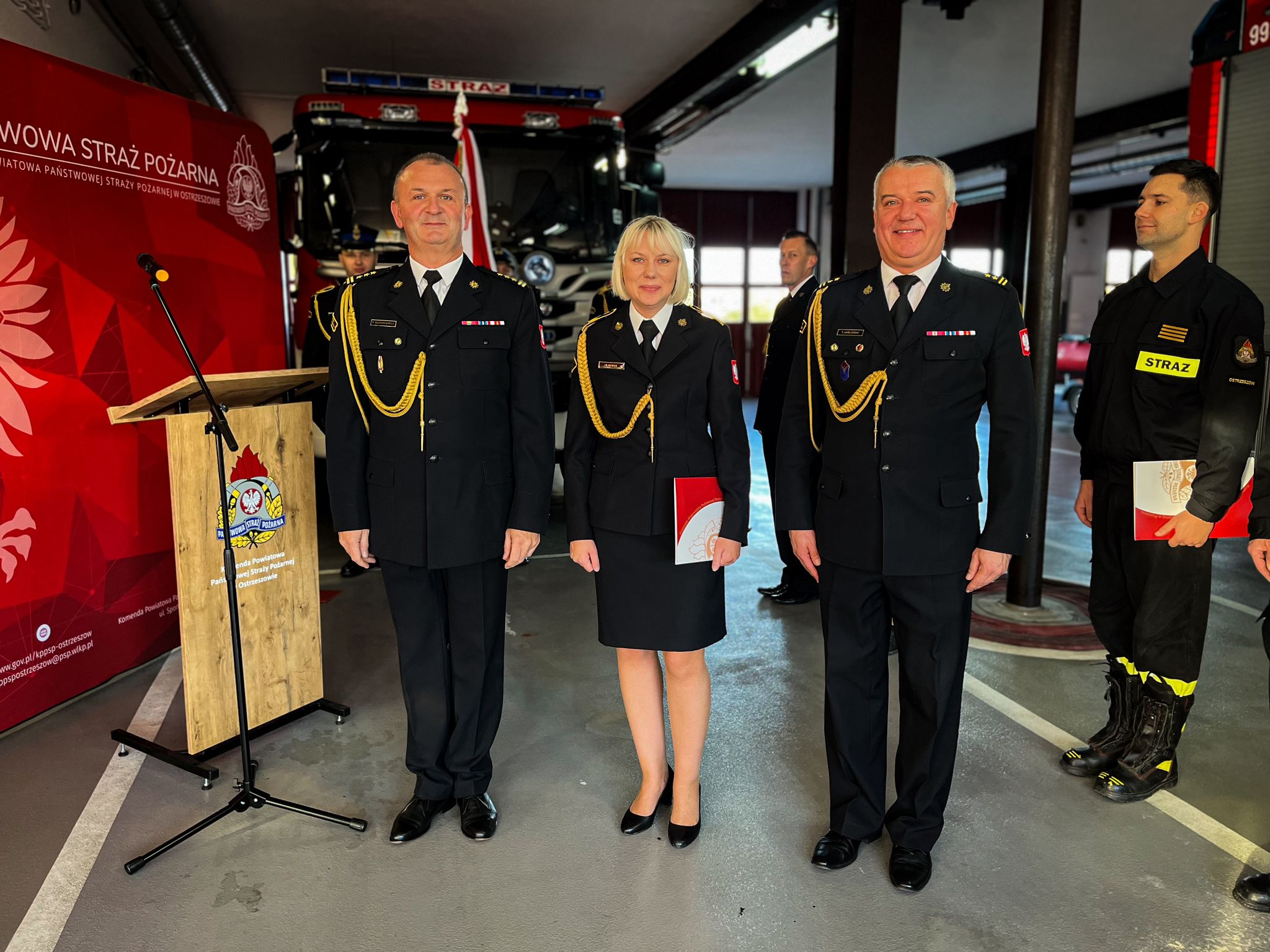 Komendant Powiatowy Państwowej Straży Pożarnej w Ostrzeszowie st. bryg. Piotr Mazurkiewicz wręczył w imieniu Komendanta Głównego Państwowej Straży Pożarnej gen. brygadiera Andrzeja Bartkowiaka oraz Wielkopolskiego Komendanta Wojewódzkiego Państwowej Straży Pożarnej w Poznaniu nadbryg. Dariusza Matczaka wyróżnienia dla zasłużonych funkcjonariuszy.