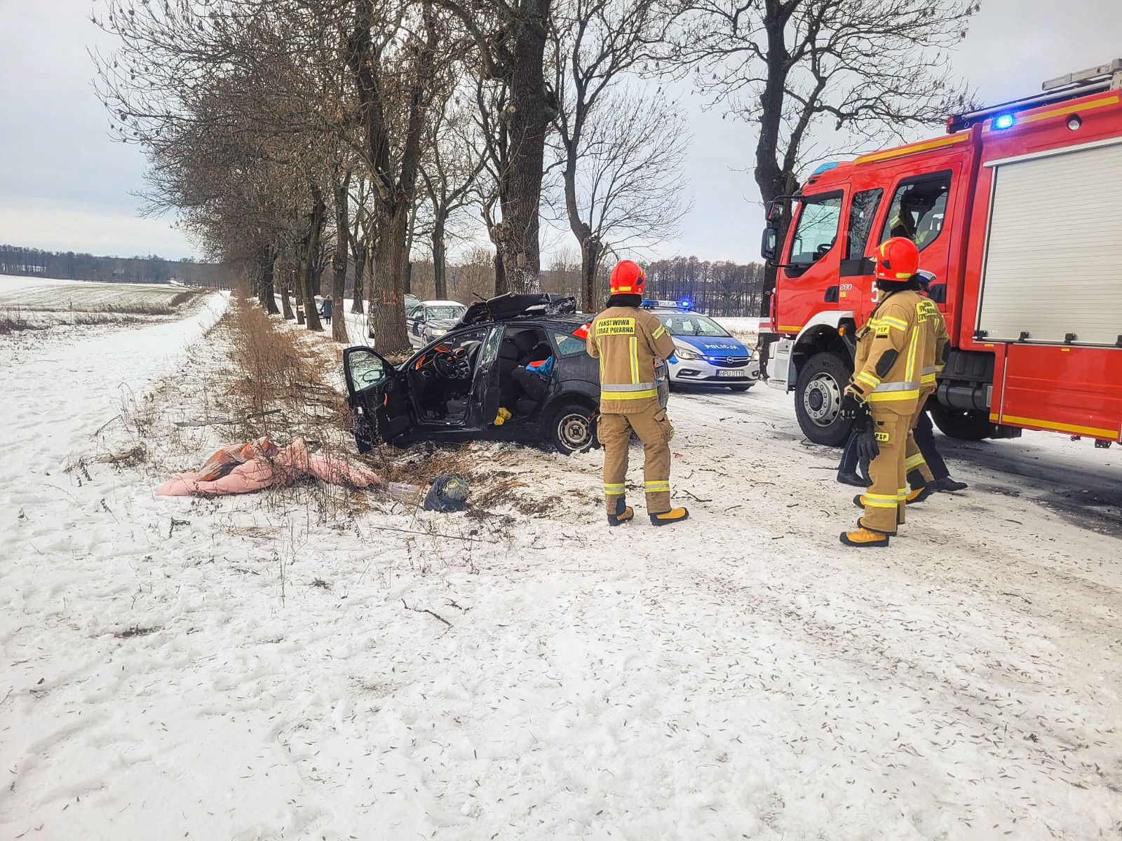 16 stycznia 2023 roku o godzinie 9:47 Stanowisko Kierowania Komendanta Powiatowego Państwowej Straży Pożarnej w Ostrzeszowie otrzymało zgłoszenie o wypadku drogowym w miejscowości Olszyna (gmina Ostrzeszów).