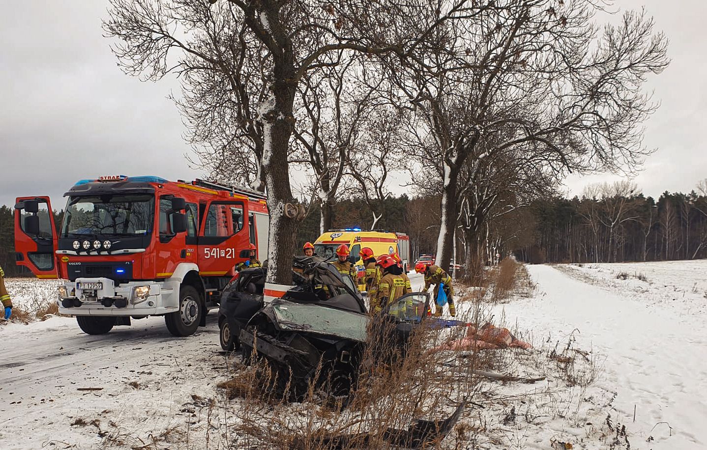 Po dojeździe na miejsce zdarzenia zastaliśmy samochód osobowy po zderzeniu z drzewem. Strażacy przy użyciu narzędzi hydraulicznych wykonali dostęp do osoby poszkodowanej, a następnie na desce ortopedycznej ewakuowali z pojazdu. Ratownicy udzielili kwalifikowanej pierwszej pomocy osobie poszkodowanej do czasu przybycia na miejsce zespołu ratownictwa medycznego. Niestety nie udało się przywrócić funkcji życiowych poszkodowanemu.