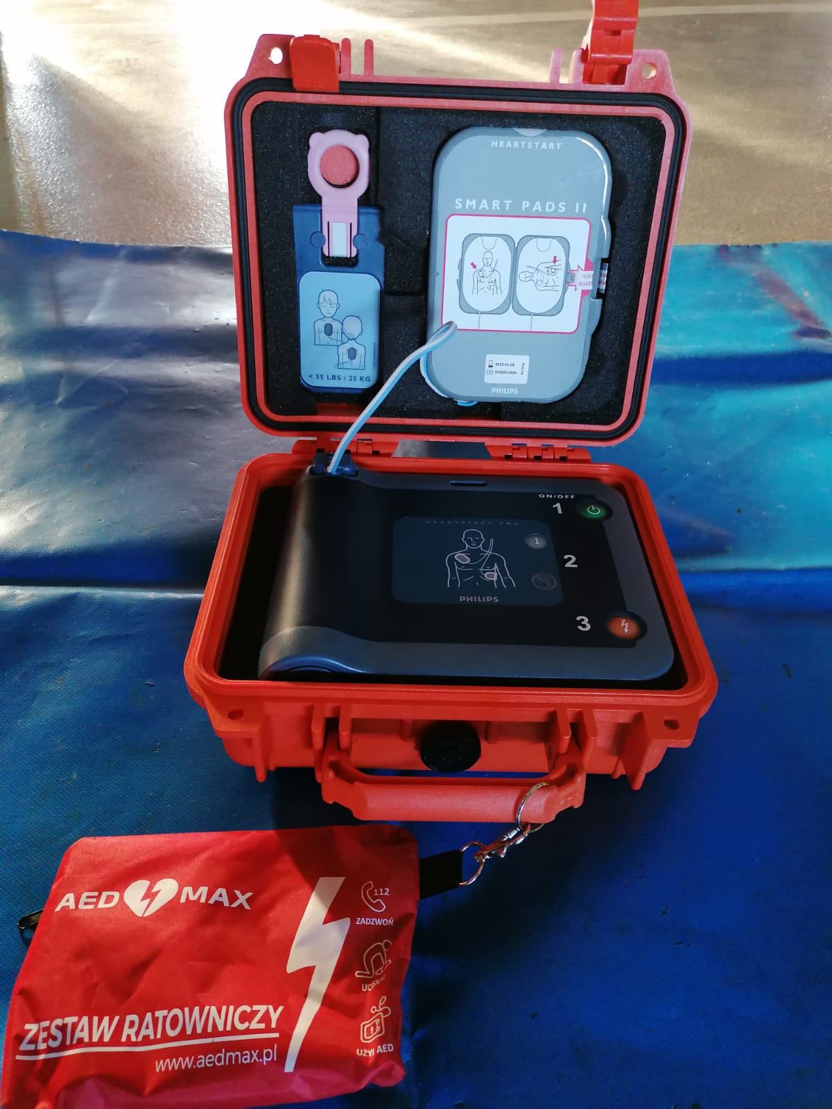 Defibrylator Philips FRx PELI_K wykorzystywany w działaniach ratowniczych o wartości 5.346 zł oraz szkoleniowy defibrylator AED Trainer XFT-120C+ o wartości 664 zł zostały zakupione ze środków budżetu państwa.