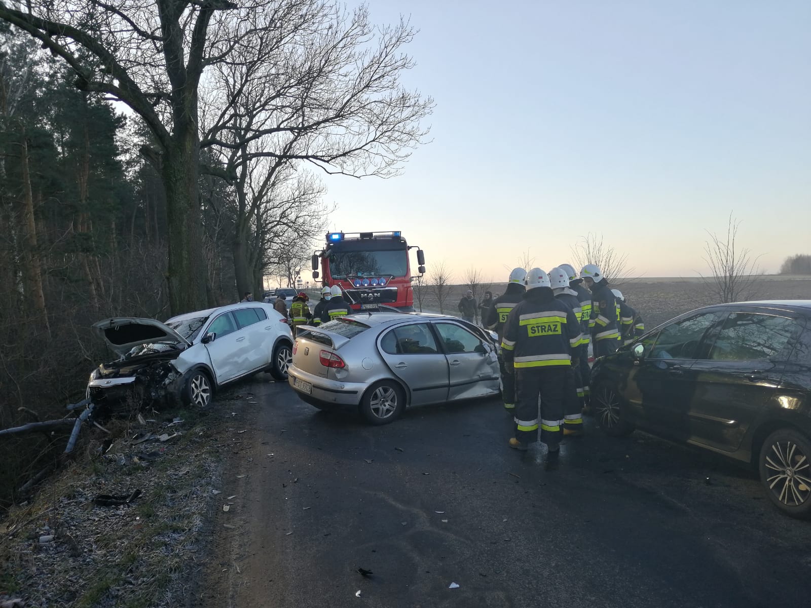 O godzinie 10:25 do Stanowiska Kierowania Komendanta Powiatowego w Ostrzeszowie, wpłynęło zgłoszenie o zdarzeniu drogowym w miejscowości Kotłów (gmina Mikstat), gdzie doszło do zderzenia czołowego dwóch samochodów osobowych. Na miejscu zdarzenia, po dokonaniu zabezpieczenia oraz rozpoznania strażacy udzielili kwalifikowanej pierwszej pomocy osobie poszkodowanej, którą następnie przekazali zespołowi ratownictwa medycznego, nie wymagała ona hospitalizacji.
