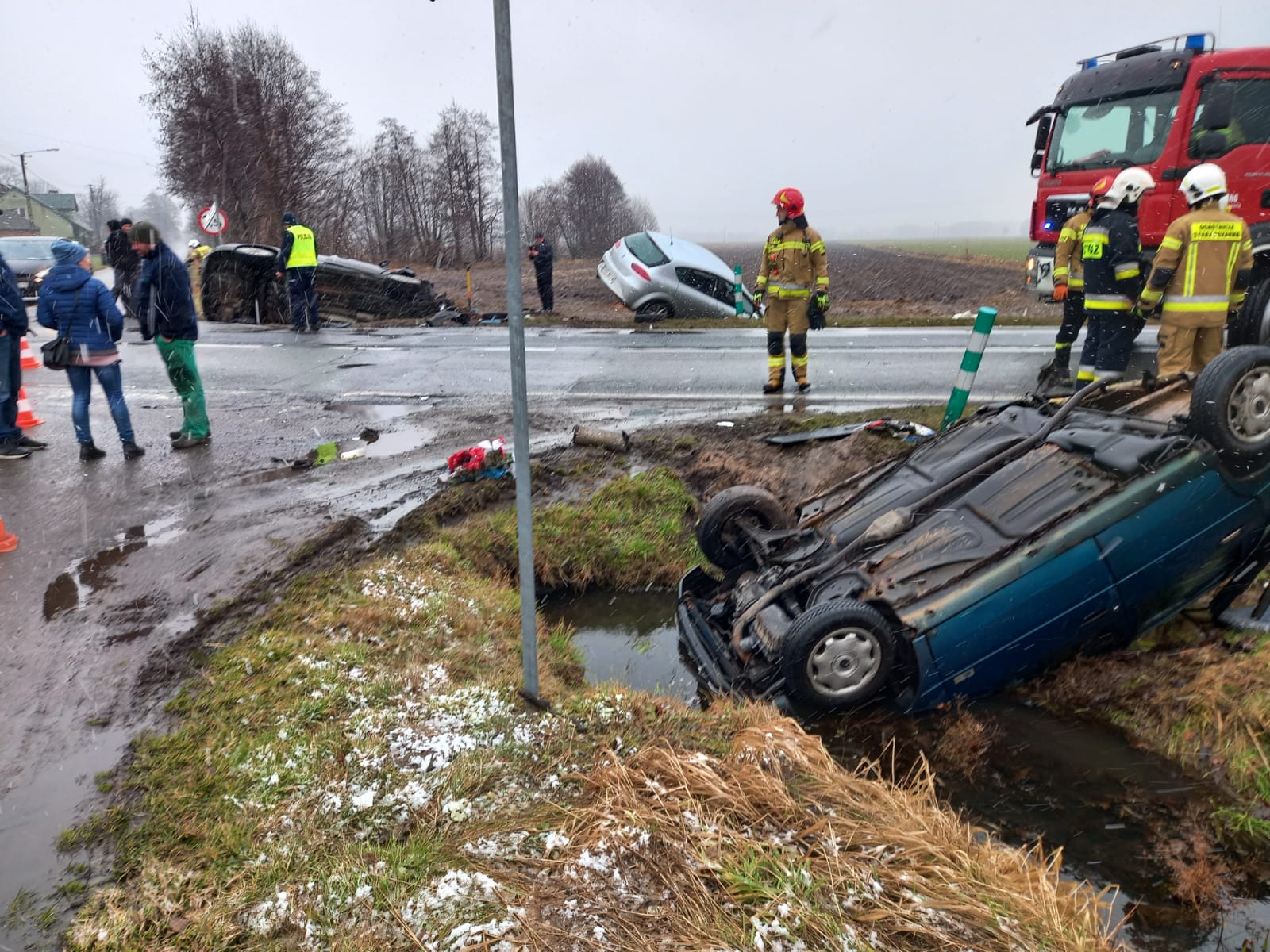 W dniu 11 lutego 2022 roku o godzinie 12.33 dyżurny Stanowiska Kierowania Komendanta Powiatowego Państwowej Straży Pożarnej w Ostrzeszowie otrzymał zgłoszenie z Centrum Powiadamiania Ratunkowego o kolizji trzech samochodów osobowych w miejscowości Giżyce. Do zdarzenia został zadysponowany zastęp Jednostki Ratowniczo-Gaśniczej w Ostrzeszowie oraz zastęp Ochotniczej Straży Pożarnej w Grabowie nad Prosną.