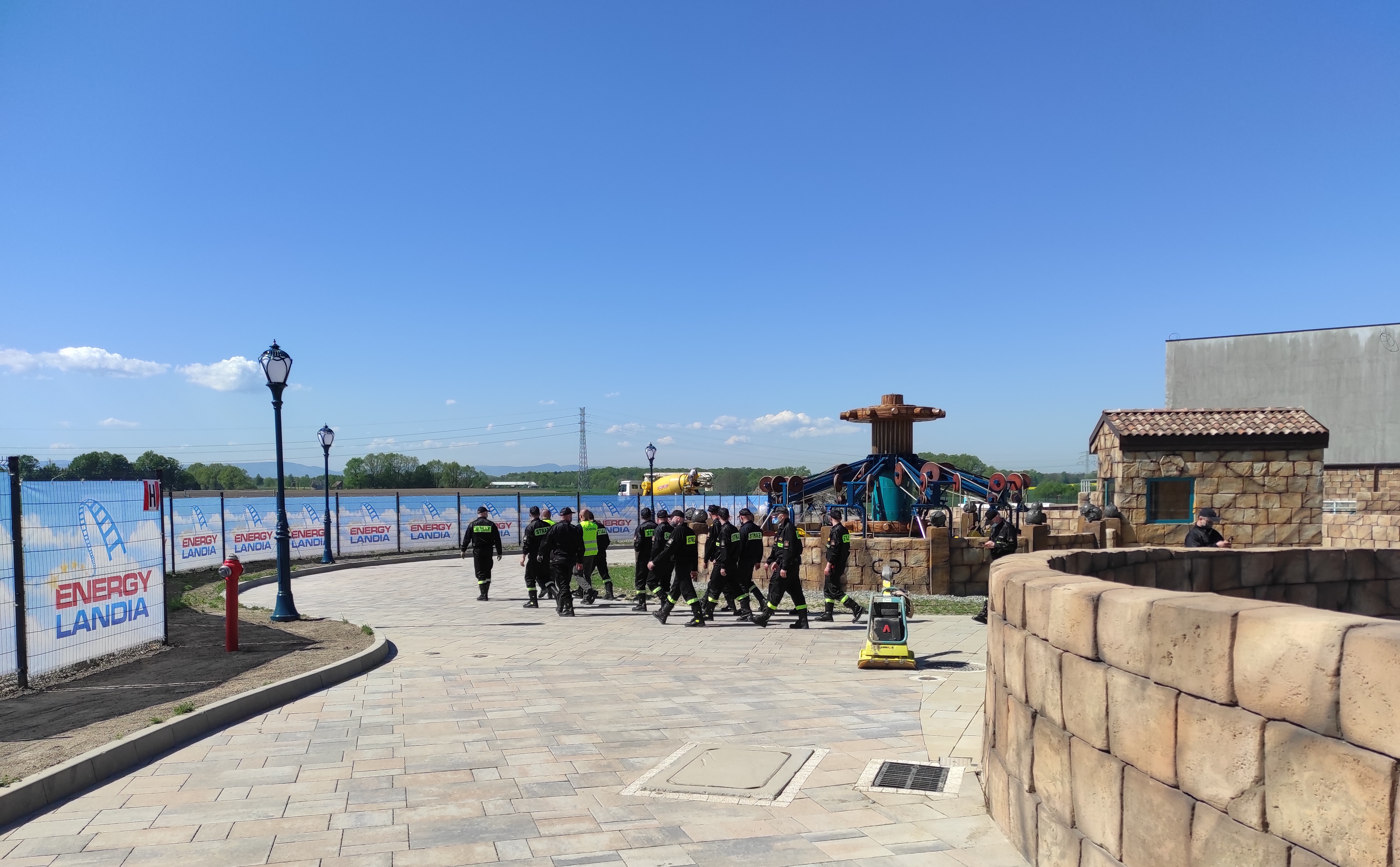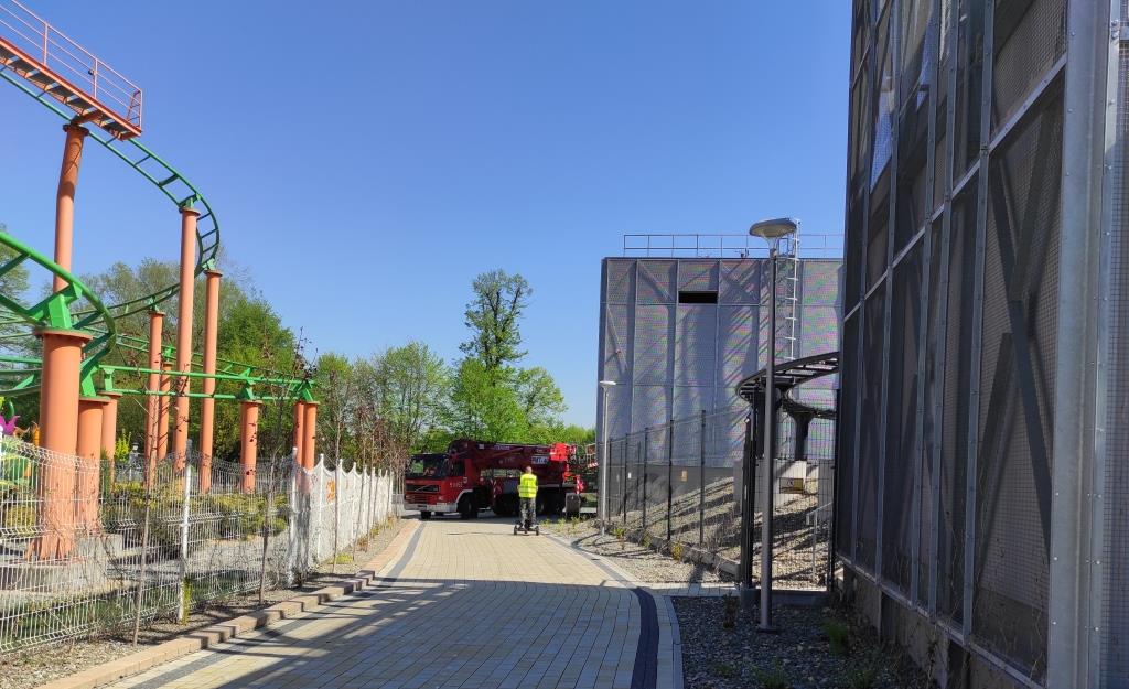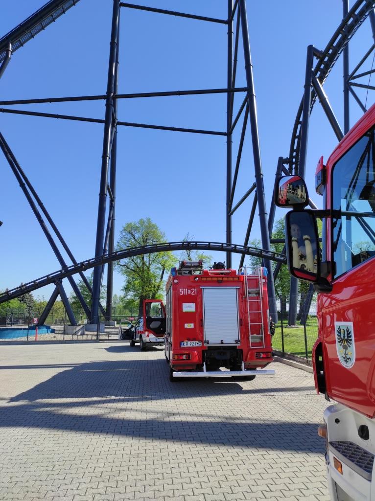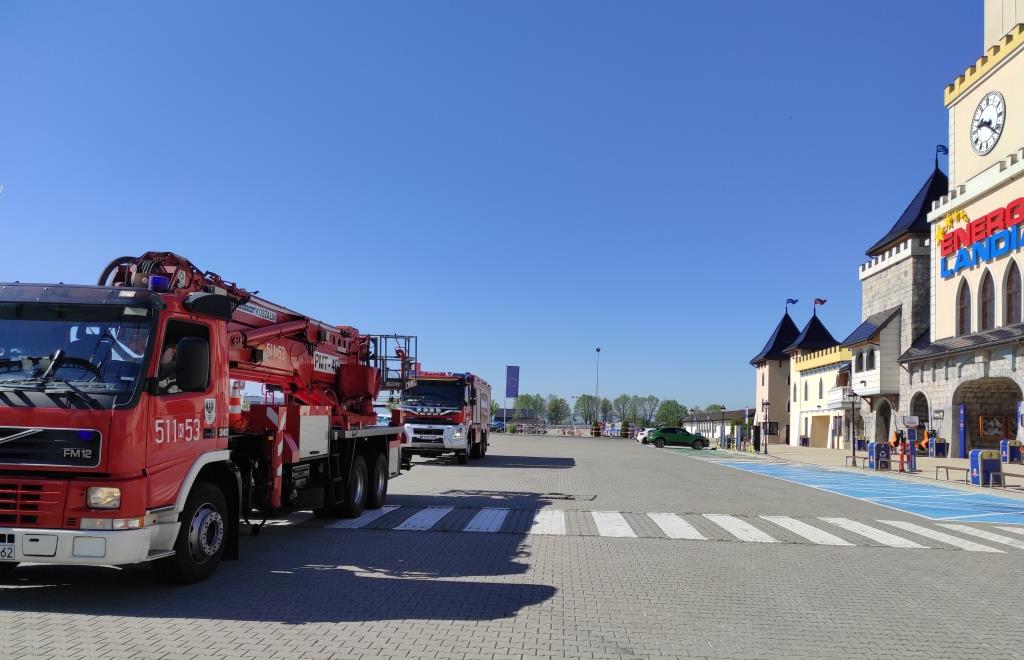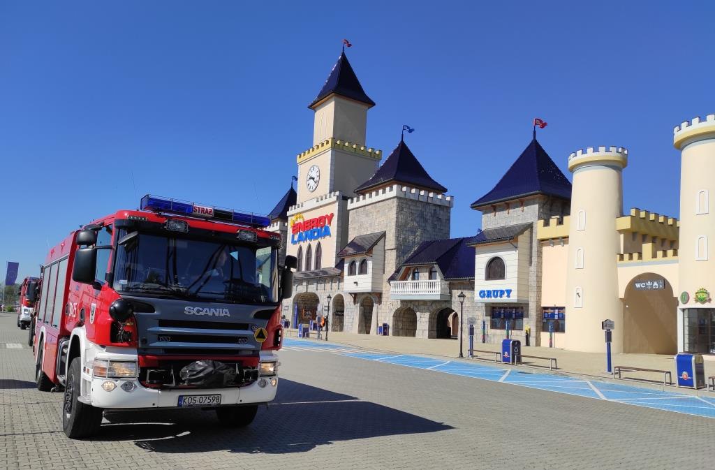 Ćwiczenia strażaków na terenie parku rozrywki Energylandia w Zatorze
