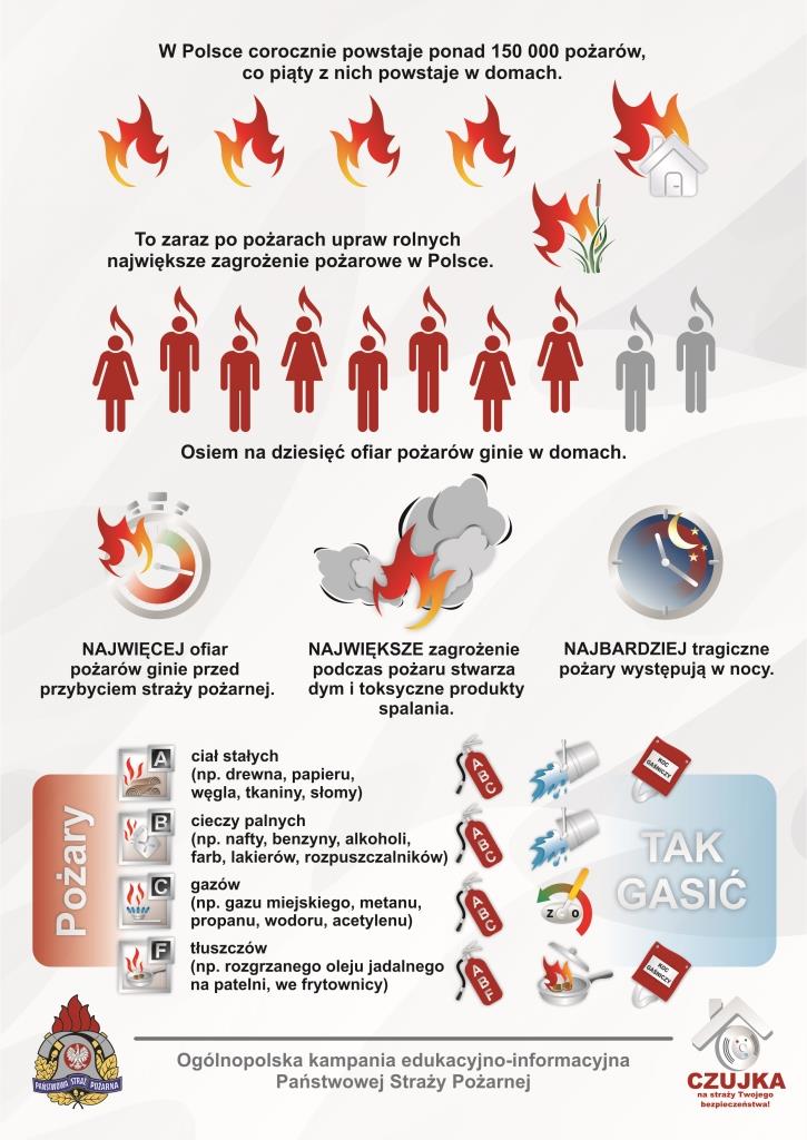 - Państwowa Straż Pożarna rekomenduje instalowanie czujek dymu i tlenku węgla.
