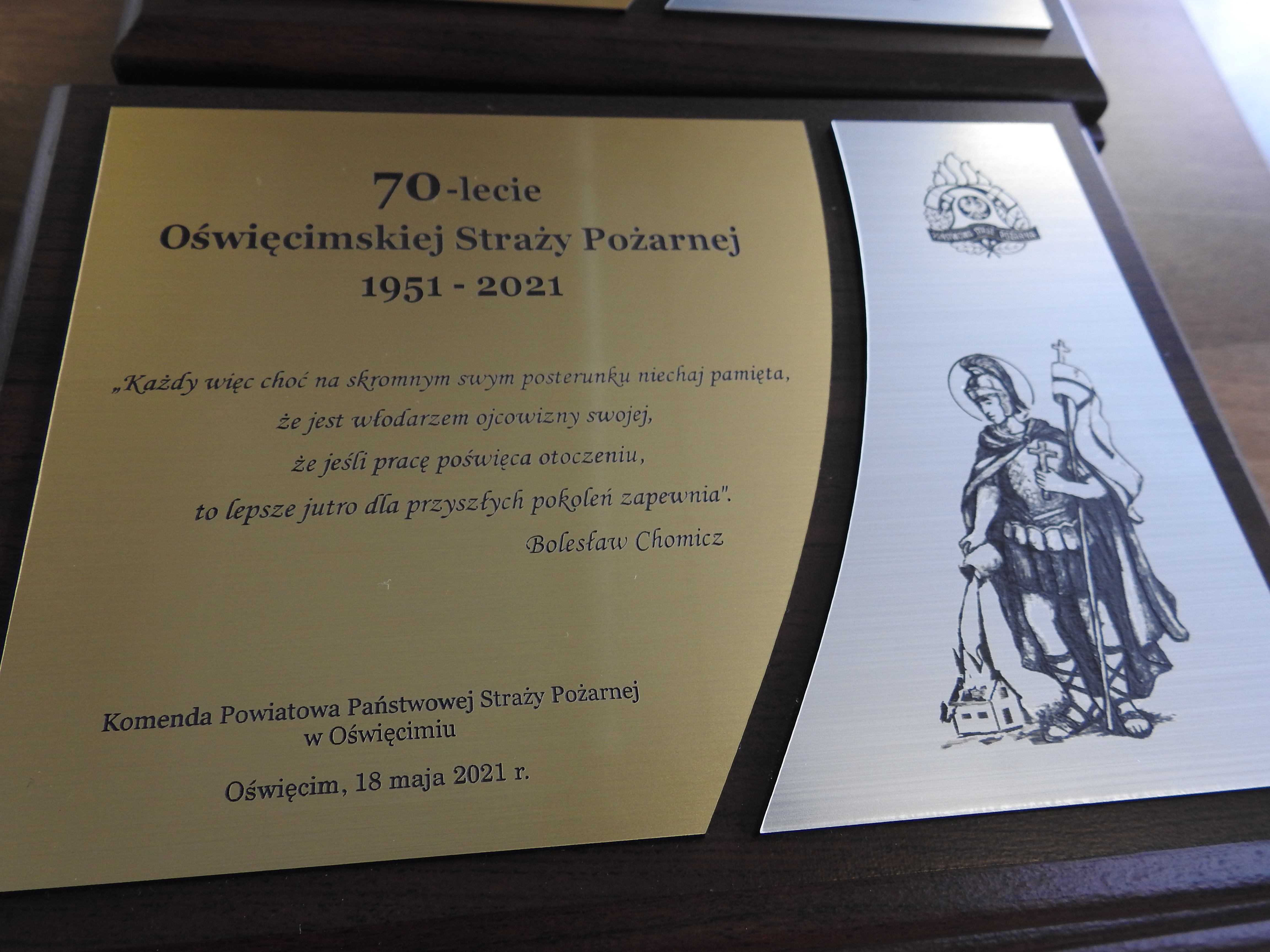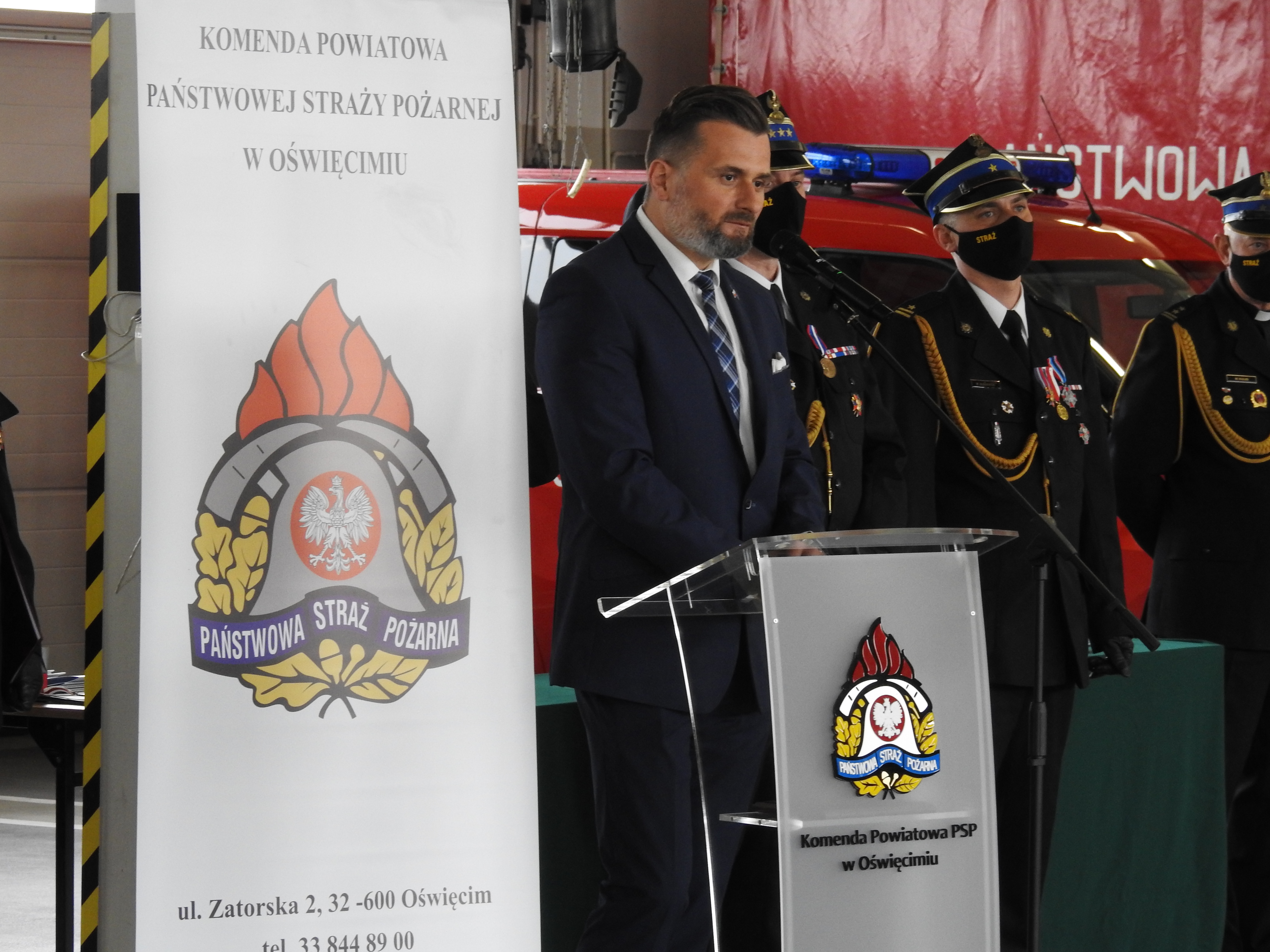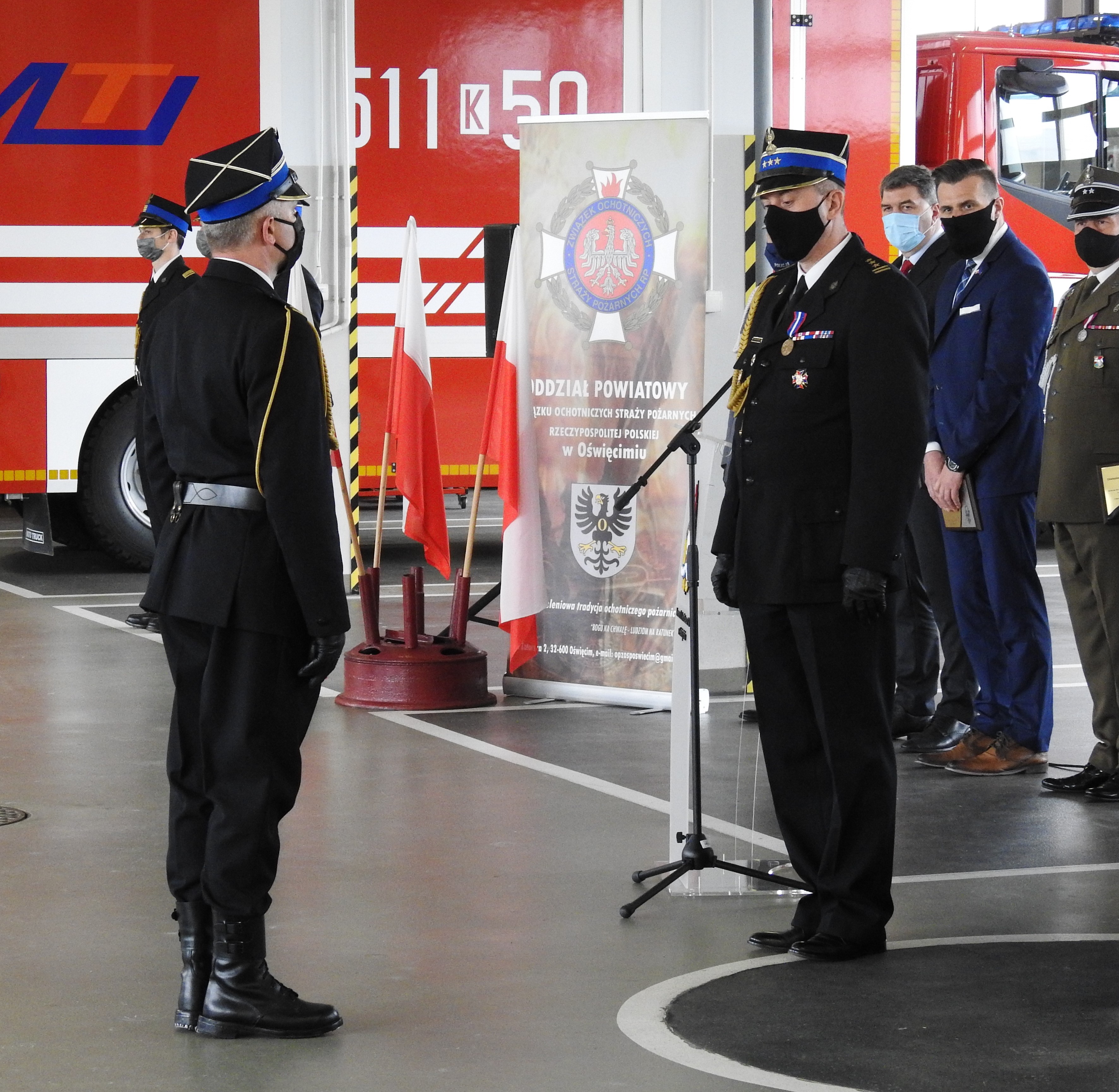 18 maja w Komendzie Powiatowej PSP w Oświęcimiu przeprowadzono uroczystą zbiórkę z okazji obchodów Dnia Strażaka. Ze względu na obostrzenia sanitarne wprowadzono znaczące ograniczenia ilości zaproszonych osób.