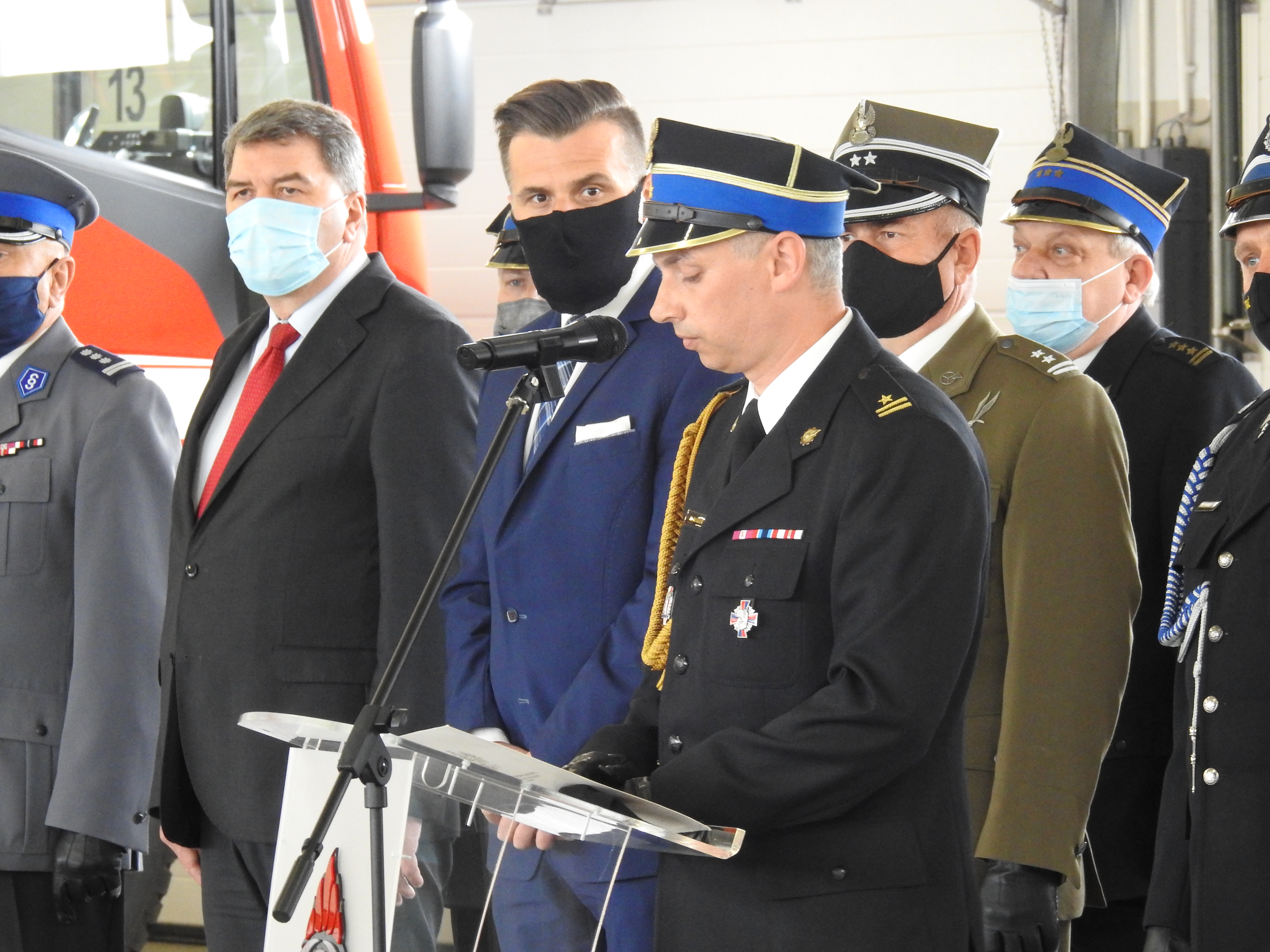 Gości przywitał Komendant Powiatowy PSP w Oświęcimiu mł. bryg. Marcin Głogowski, który podkreślił rocznicę 30-lecia powstania Państwowej Straży Pożarnej i jednocześnie 70-lecie oświęcimskiego pożarnictwa zawodowego.