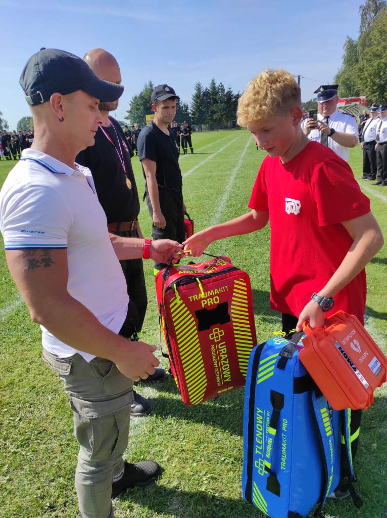 Jednocześnie w tym dniu Kacper przekazał jednostkom OSP w Harmężach i Brzezince sprzęt ratowniczy zakupiony z funduszy zebranych podczas zbiórki finansowej założonej przez jego rodziców.