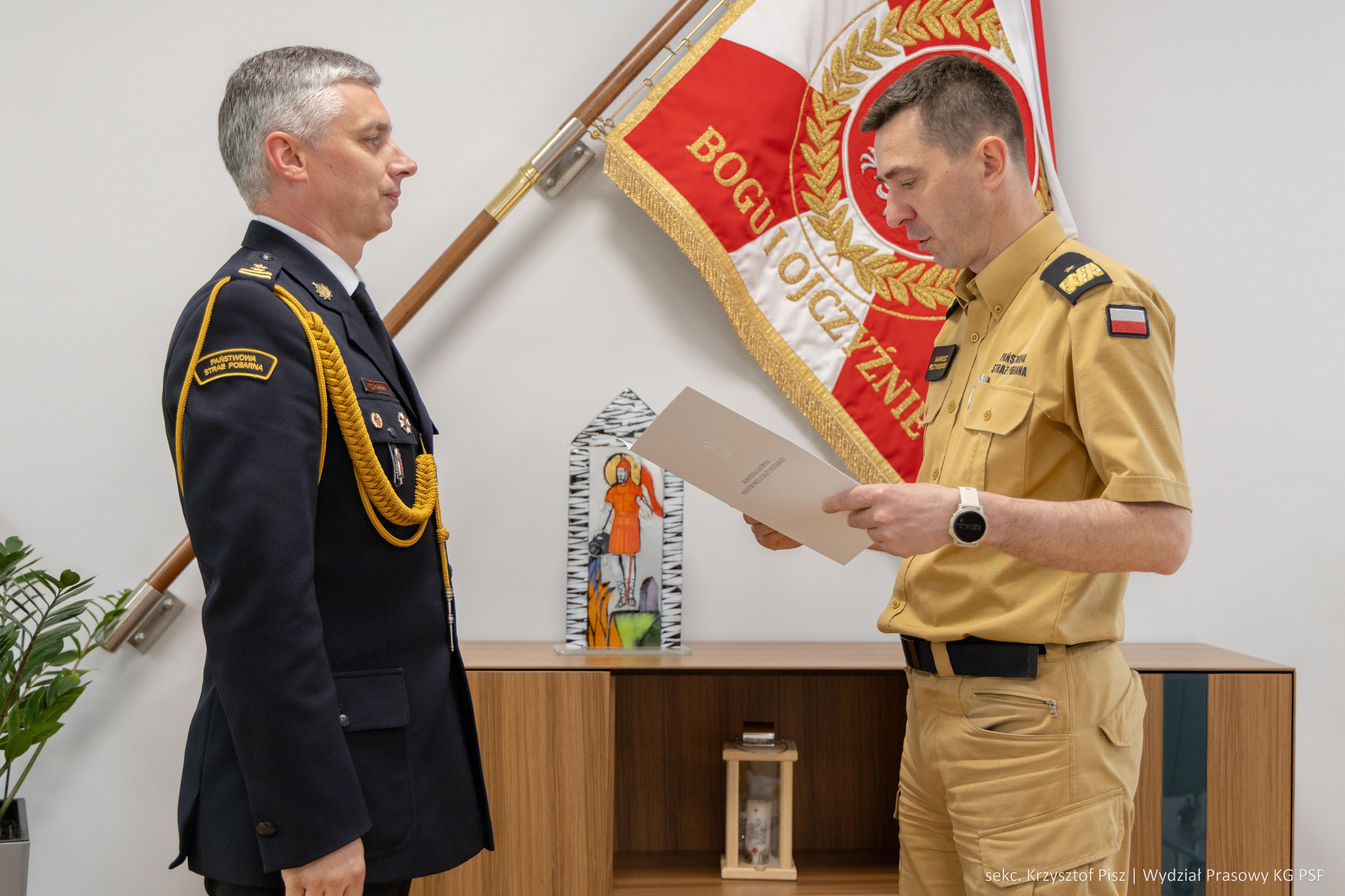 Decyzje personalne oficerom PSP wręczone zostały w siedzibie Komendy Głównej PSP w obecności małopolskiego komendanta wojewódzkiego PSP bryg. Przemysława Przęczka.