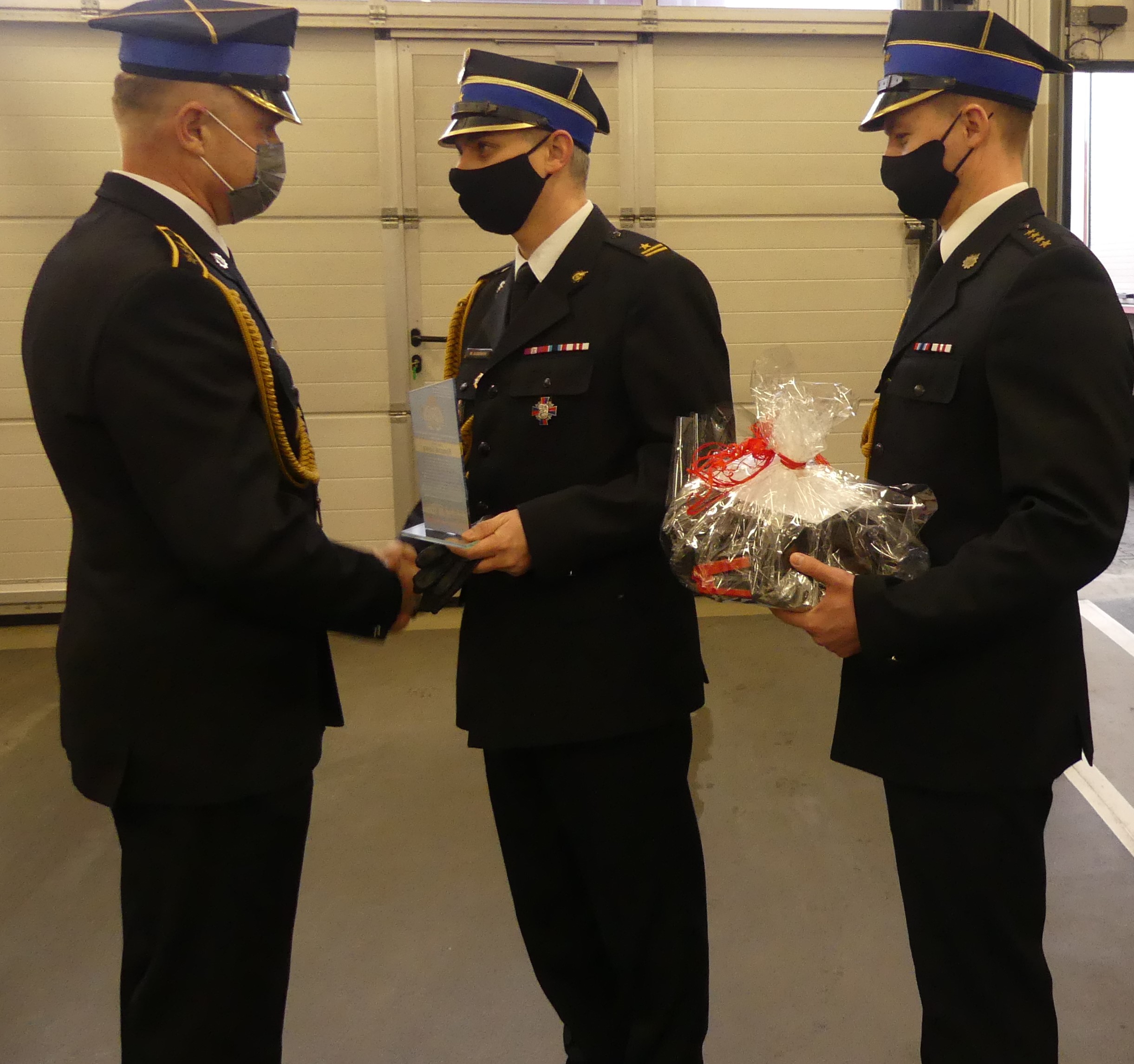 29 stycznia przeprowadzono uroczystą zmianę służby z udziałem st. bryg. Piotra Filipka Małopolskiego Komendanta Wojewódzkiego PSP, mł. bryg. Marcina Głogowskiego Komendanta Powiatowego PSP w Oświęcimiu, bryg. Ks. Władysława Kuliga Kapelana Małopolskich Strażaków, w związku z przejściem na emeryturę asp. sztab. Konrada Sowy. Po złożeniu meldunku Małopolskiemu Komendantowi Wojewódzkiemu PSP w Oświęcimiu st. bryg. Piotrowi Filipkowi odczytano przebieg służby Konrada Sowy, następnie komendanci oraz przyszły emeryt wygłosili krótkie słowa podziękowań za pełnienie służby w ochronie przeciwpożarowej. Odczytano decyzję o zwolnieniu ze służby i asp. sztab. Sowa złożył meldunek o zakończeniu służby w Państwowej Straży Pożarnej.