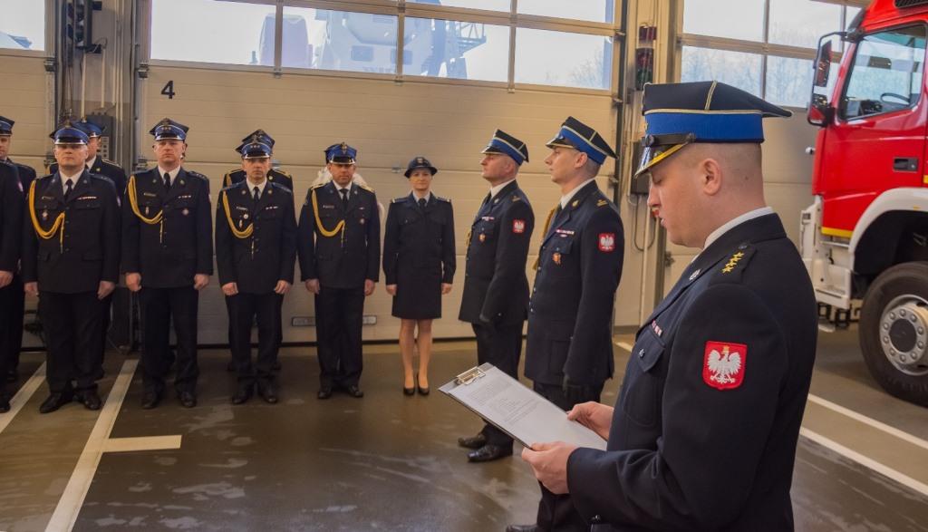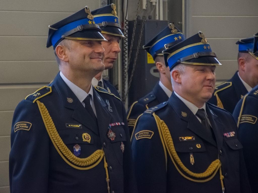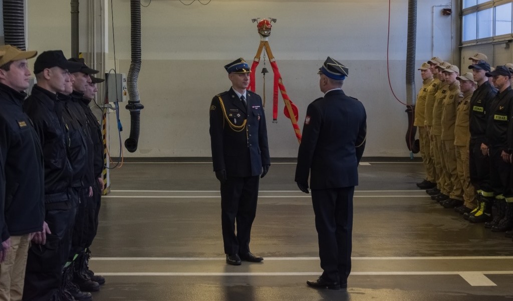 22 lutego przeprowadzono uroczystą zmianę służby z udziałem Komendanta Powiatowego PSP w Oświęcimiu mł. bryg. Marcina Głogowskiego oraz Zastępcy Komendanta Powiatowego PSP w Oświęcimiu bryg. Ryszarda Dudka, w związku z przejściem na emeryturę st. asp. Marcina Płachty. Po złożeniu meldunku komendantowi powiatowemu PSP w Oświęcimiu odczytano przebieg służby Marcina Płachty, następnie komendanci oraz przyszły emeryt wygłosili krótkie słowa podziękowań za pełnienie służby w ochronie przeciwpożarowej. Odczytano decyzję o zwolnieniu ze służby i st. asp. Płachta złożył meldunek o zakończeniu służby w Państwowej Straży Pożarnej.