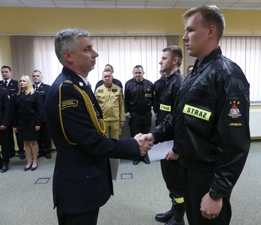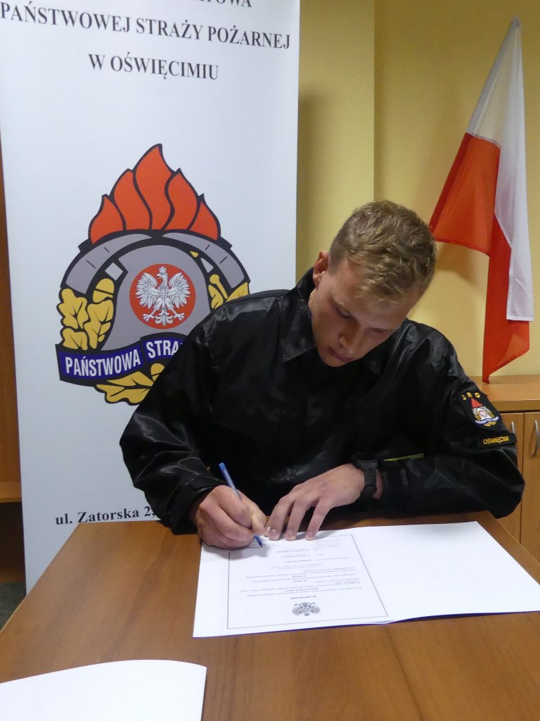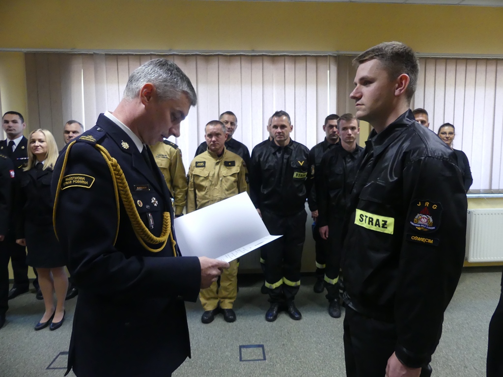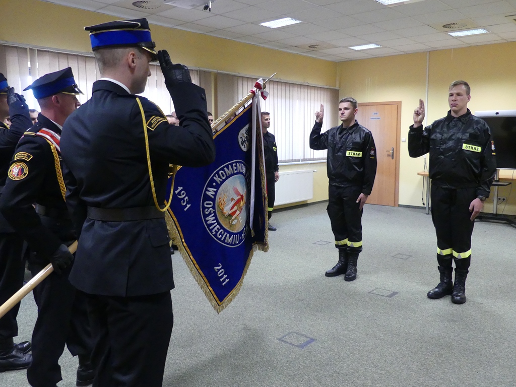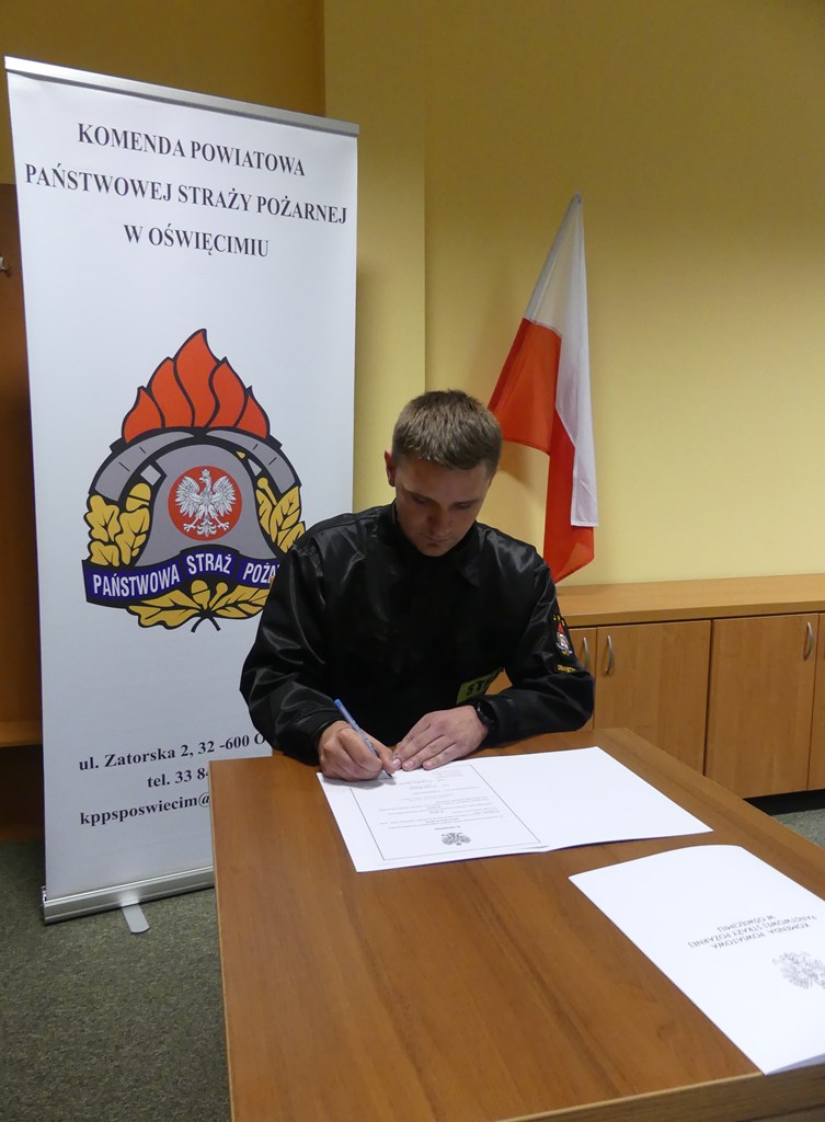12.10.2023 r. w Komendzie Powiatowej Państwowej Straży Pożarnej w Oświęcimiu odbyła się uroczysta zbiórka z okazji ślubowania, które złożyli strażacy przyjęci do służby przygotowawczej w Państwowej Straży Pożarnej. Ślubowanie przyjął Komendant Powiatowy PSP w Oświęcimiu mł. bryg. Marcin Głogowski. Ceremonia miała miejsce w obecności funkcjonariuszy Komendy Powiatowej w Oświęcimiu oraz pracowników cywilnych. To ważne wydarzenie w życiu każdego strażaka, rozpoczęcie nowej, pełnej wyzwań drogi w służbie dla bezpieczeństwa naszej społeczności. Gratulujemy nowym strażakom i życzymy im owocnej i bezpiecznej służby!