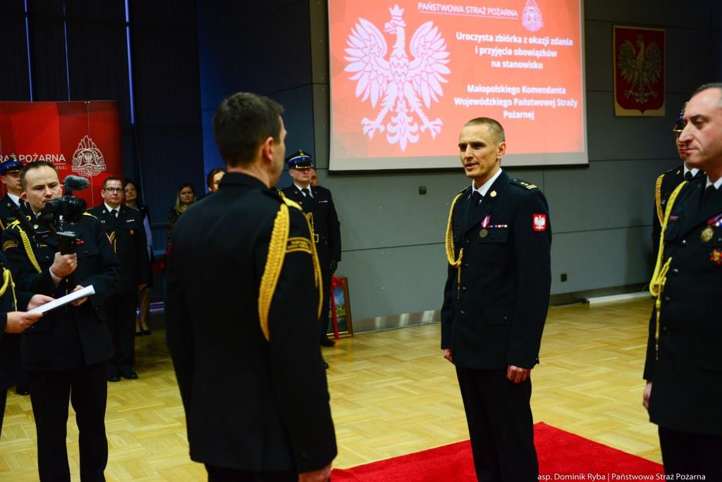 Uroczystość zdania i przyjęcia obowiązków na stanowisku Małopolskiego Komendanta Wojewódzkiego Państwowej Straży Pożarnej