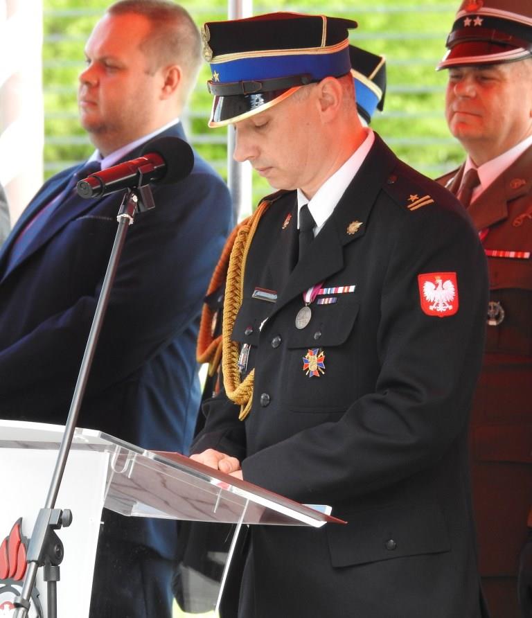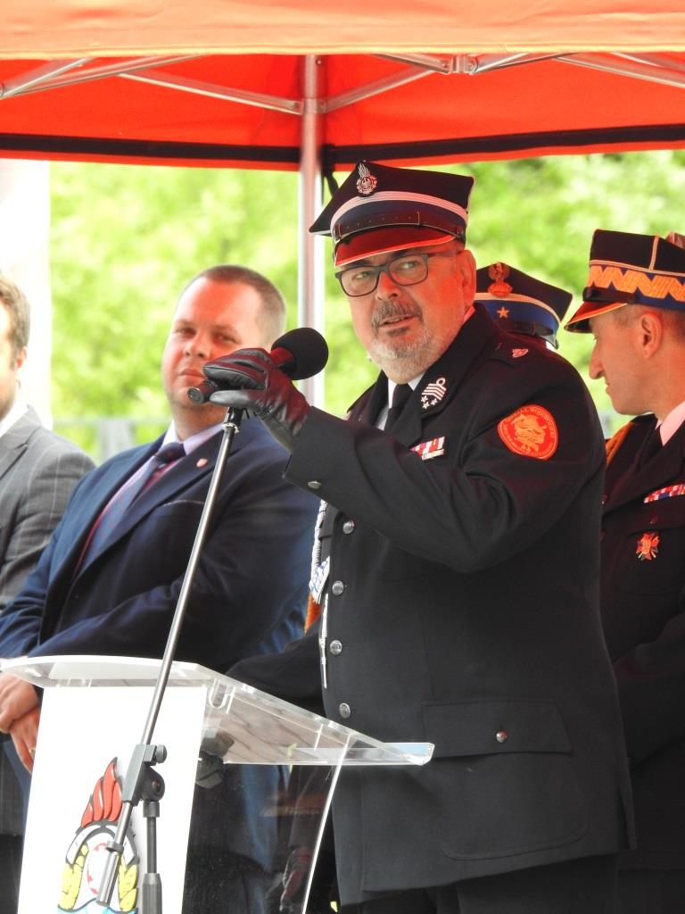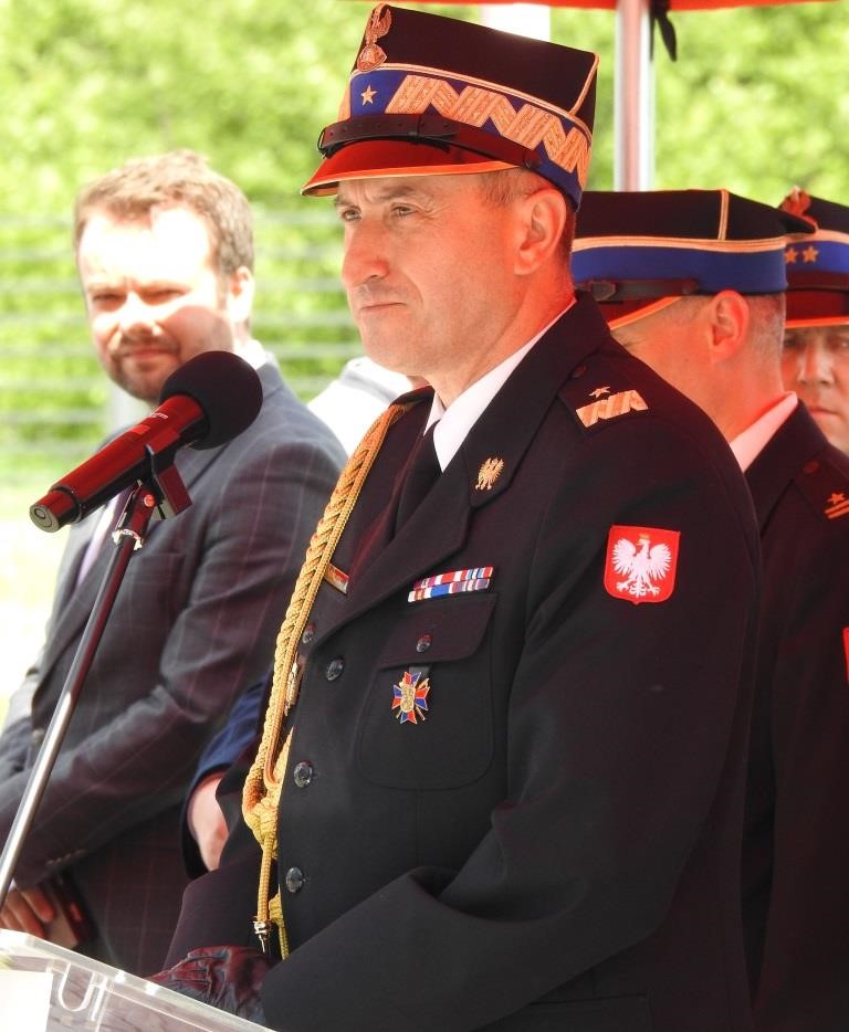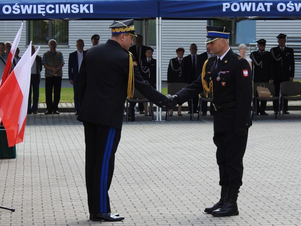 Gości przywitał Komendant Powiatowy PSP w Oświęcimiu mł. bryg. Marcin Głogowski, który podkreślił rocznicę 30-lecia powstania Państwowej Straży Pożarnej oraz jej zmiany strukturalne, kadrowe, sprzętowe. Zaakcentował szczególnie rozwój związany z zakresem wykonywanych działań ratowniczych przez nowoczesną formację, jaką stała się straż pożarna.