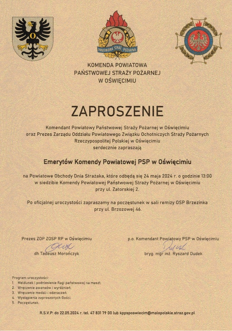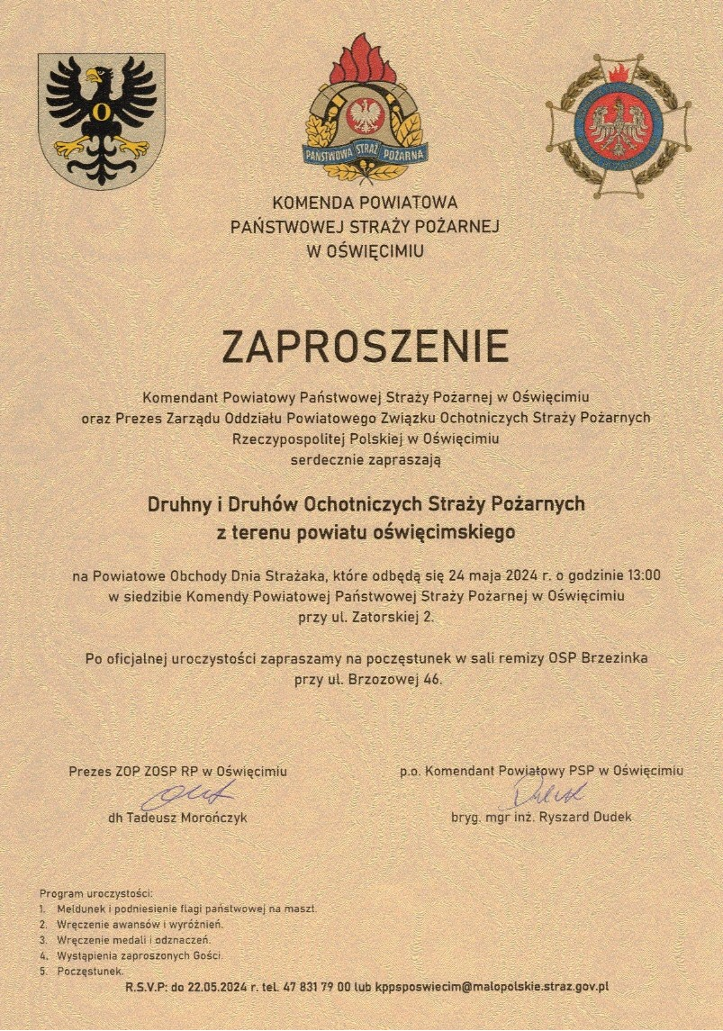 Zaproszenie na Powiatowe Obchody Dnia Strażaka 20.05.2024 Zdjęcia (2) Pokaż zdjęcie 1 z galerii. Pokaż zdjęcie 2 z galerii.