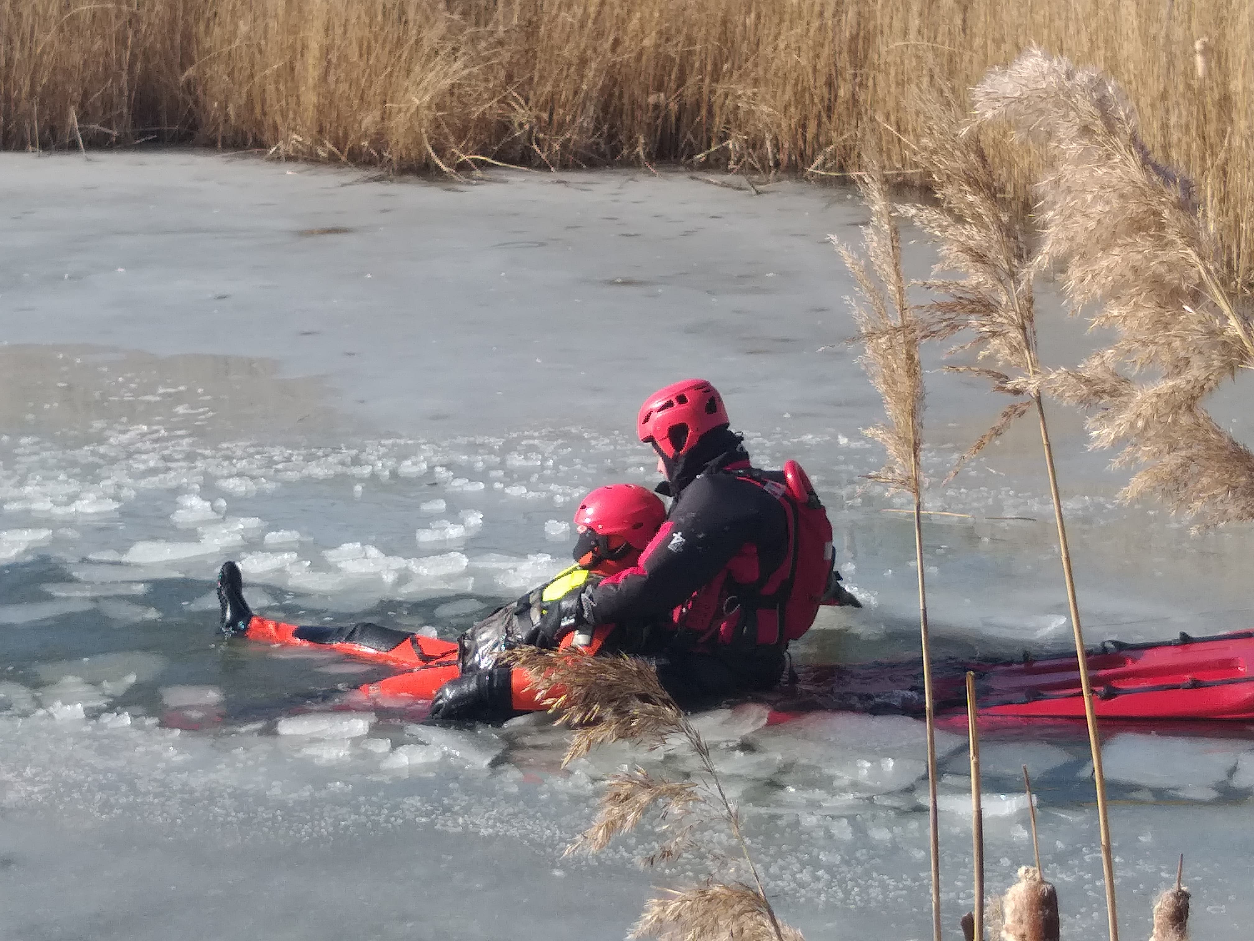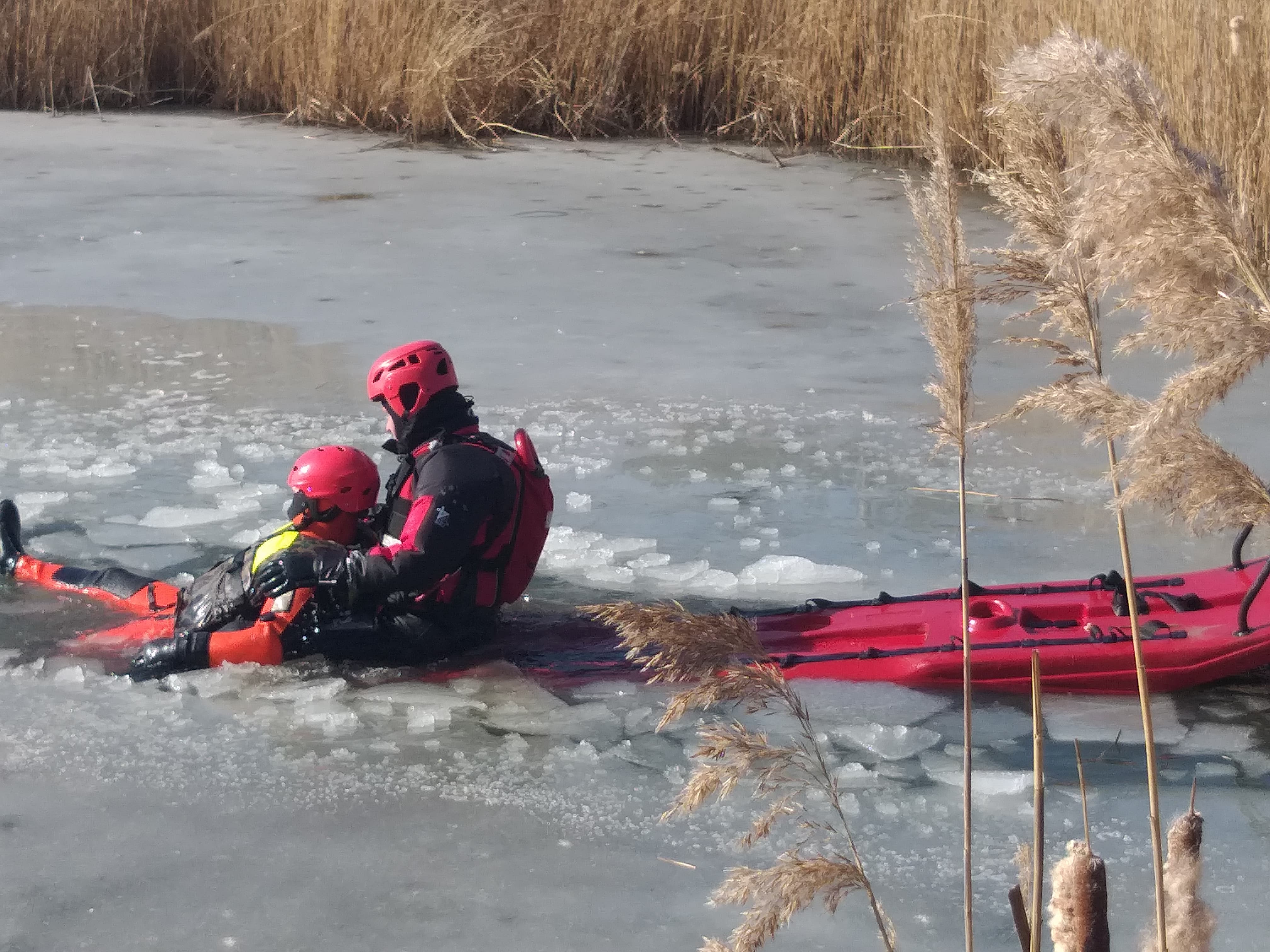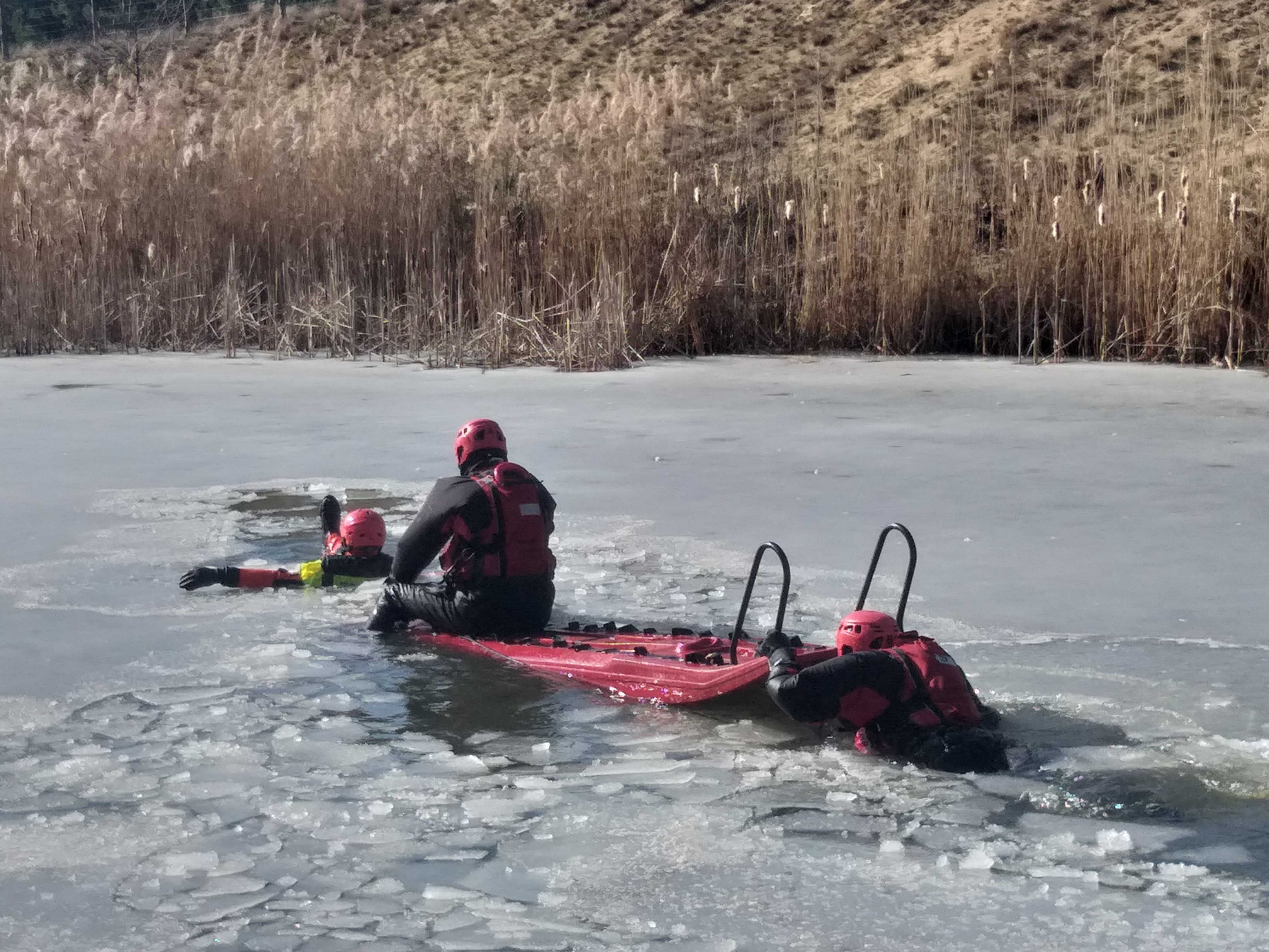 - W przypadku załamania lodu staraj się zachować spokój, jednocześnie głośno wzywając pomocy.