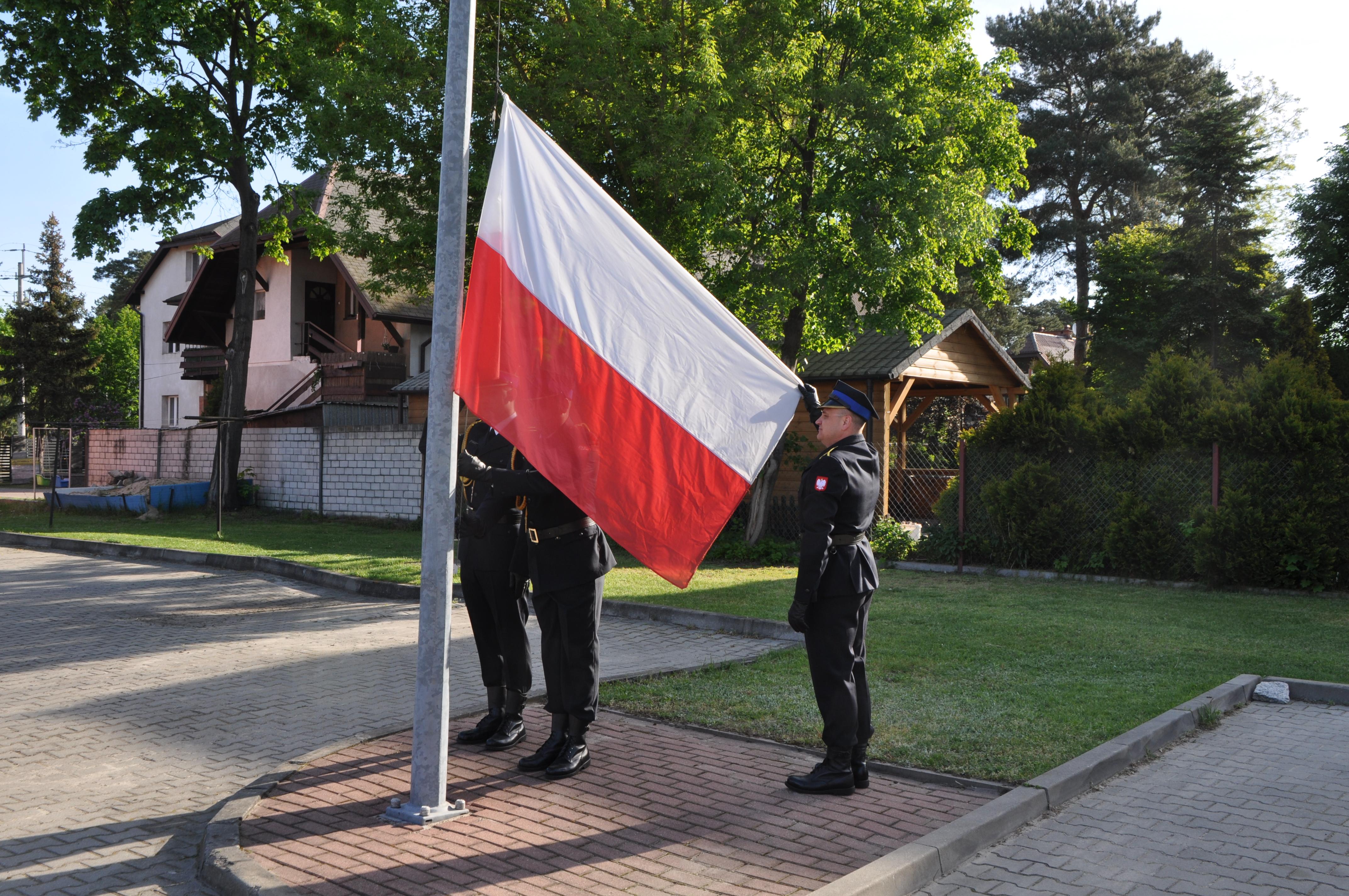 Uroczyste podniesienie Flagi Państwowej w KP PSP w Otwocku