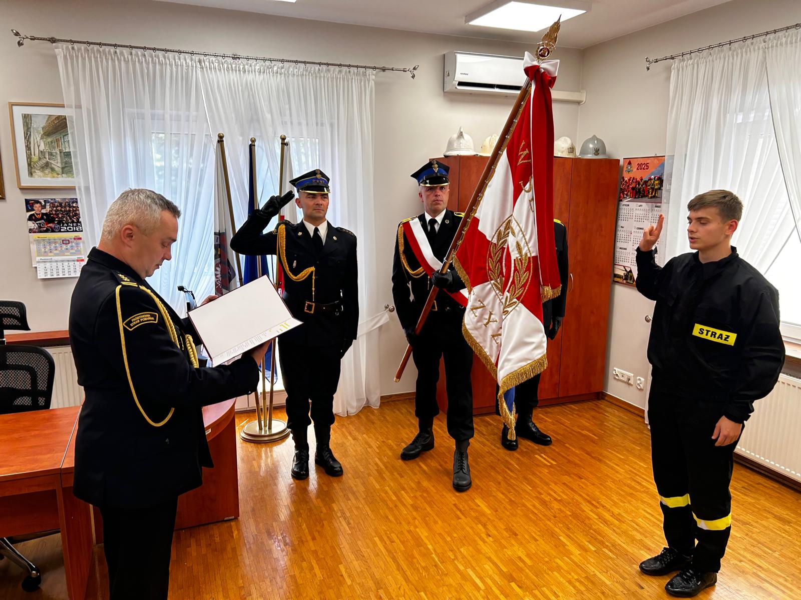 5 września, w naszej komendzie odbyła się uroczysta zbiórka z okazji ślubowania nowo przyjętego strażaka Tomasza Trzeciaka. Akt ślubowania przyjął Komendant Powiatowy PSP w Otwocku – st. bryg. Michał Gigoła.