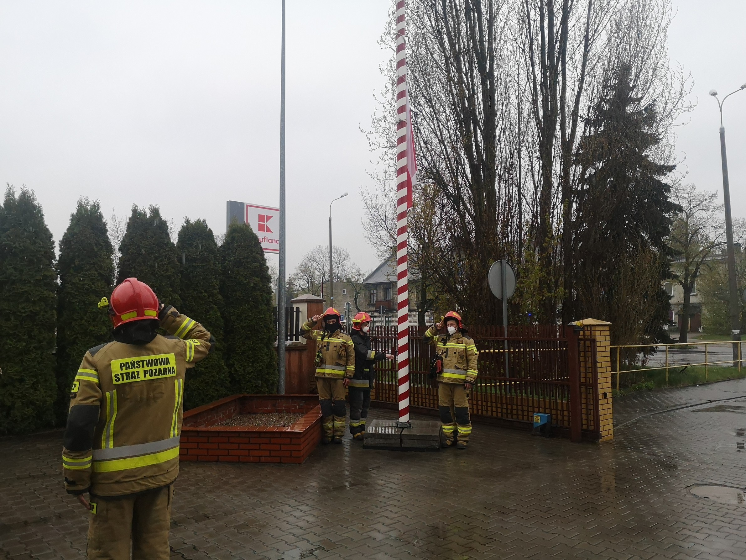 Z okazji Dnia Flagi Rzeczypospolitej Polskiej w Komendzie Powiatowej PSP w Pabianicach odbyła się uroczysta zmiana służby, podczas której podniesiono na masz biało-czerwoną flagę.