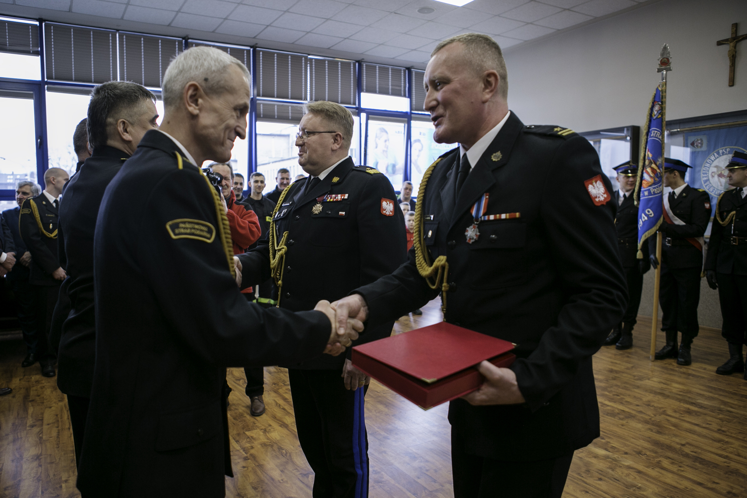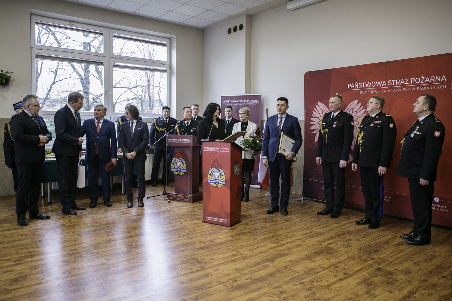 Kolejnym punktem uroczystości było powierzenie pełnienia obowiązków Komendanta Powiatowego PSP w Pabianicach dotychczasowemu Zastępcy Komendanta Powiatowego mł. bryg. Jackowi Karczowi. Komendant Wojewódzki pogratulował mu awansu i życzył dalszych sukcesów w życiu prywatnym i zawodowym.