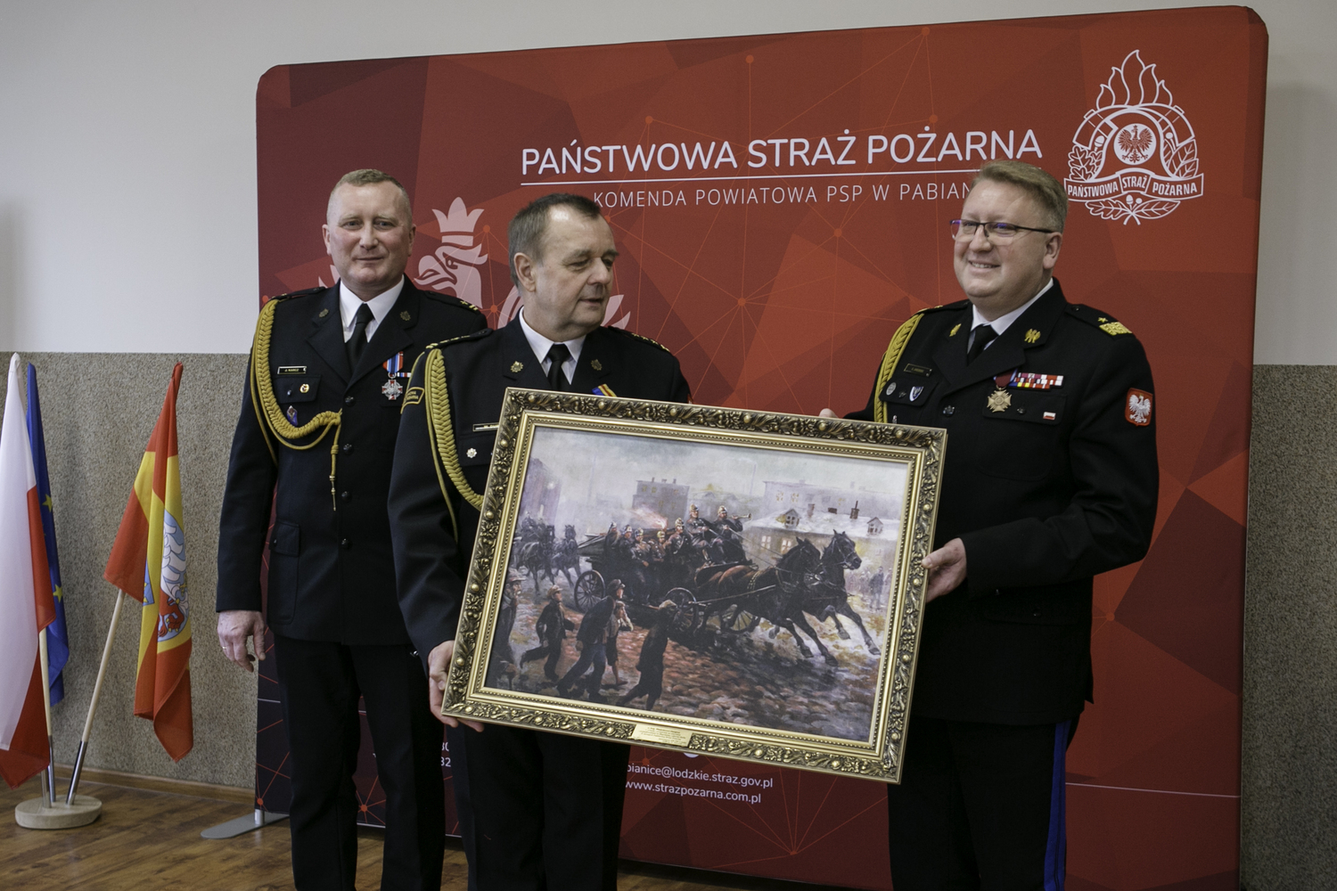 Podczas apelu Łódzki Komendant Wojewódzki wraz z Komendantami Powiatowymi PSP w Pabianicach podziękowali za lata służby przechodzącym na zaopatrzenie emerytalne: