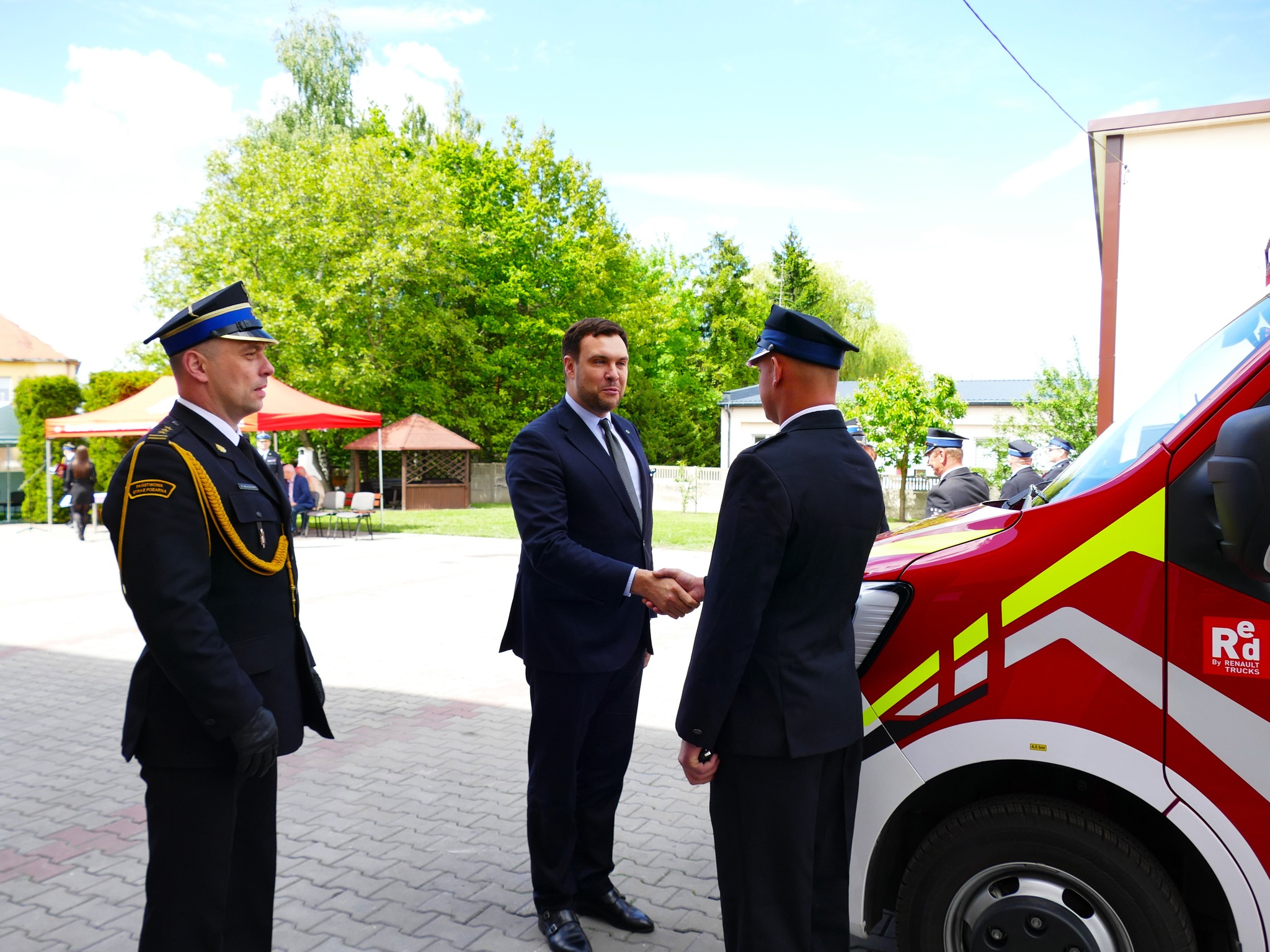 Podczas uroczystości nastąpiło również uroczyste poświecenie oraz przekazanie kluczyków do 4 pojazdów ratowniczych dla jednostek OSP z Marzęcic, Makowisk, Siedlec oraz Raciszyna.