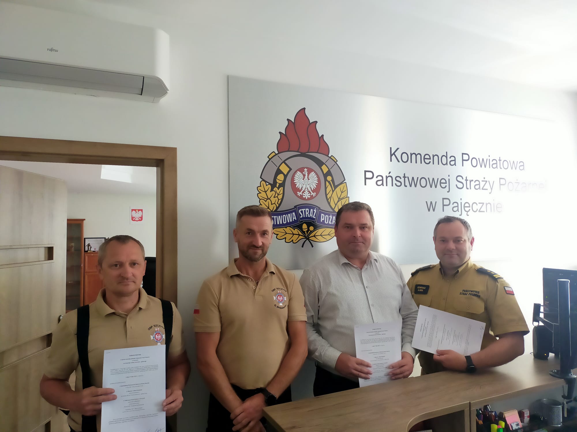 W dniach 26 i 27 lipca w Komendzie Powiatowej Państwowej Straży Pożarnej w Pajęcznie miało miejsce podpisanie porozumień w sprawie włączenia jednostek Ochotniczej Straży Pożarnej w Radzoszewicach i Szczytach do krajowego systemu ratowniczo-gaśniczego.