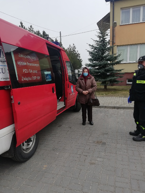 Strażacy Ochotniczych Straży Pożarnych powiatu pajęczańskiego dowożą osoby starsze na szczepienia przeciw COVID 19