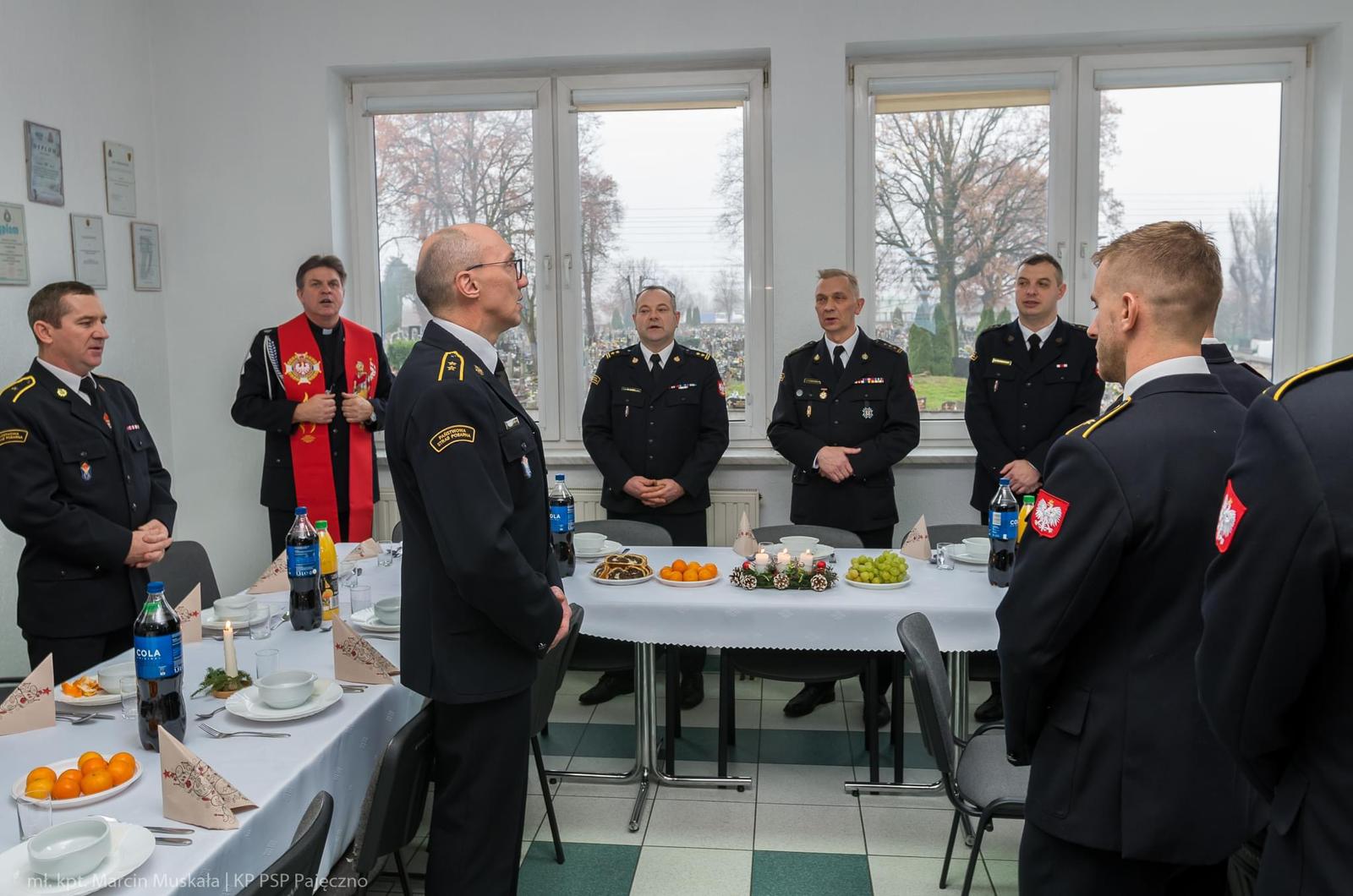 14 grudnia, w świetlicy Komendy Powiatowej Państwowej Straży Pożarnej w Pajęcznie odbyło się spotkanie wigilijne pracowników i funkcjonariuszy Komendy Powiatowej PSP w Pajęcznie. W uroczystości uczestniczyli Zastępca Łódzkiego Komendanta Wojewódzkiego PSP w Łodzi - st. bryg. Zbigniew Łyszkowicz oraz Kapelan Strażaków powiatu pajęczańskiego - ks. Tadeusz Orzeszyna.