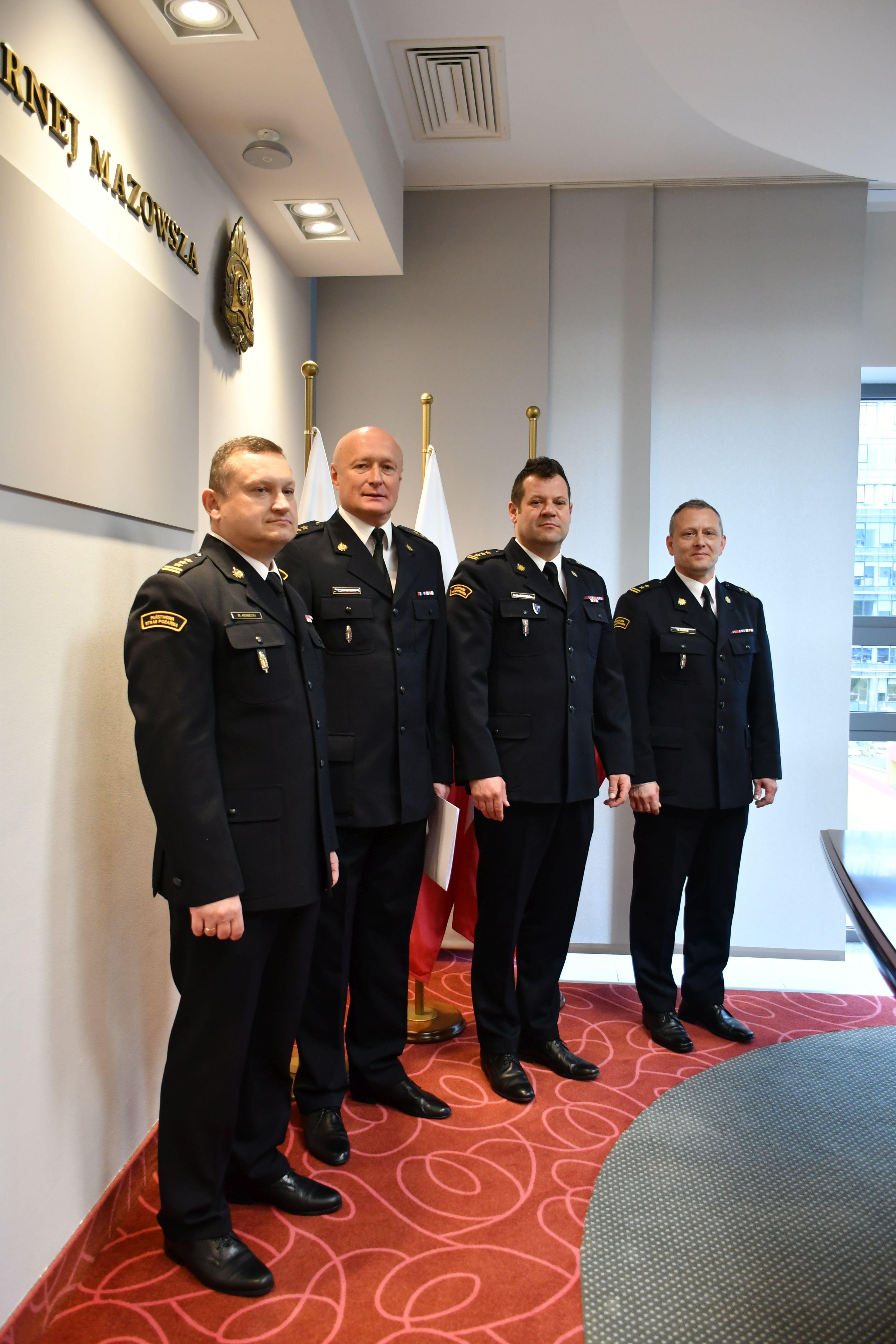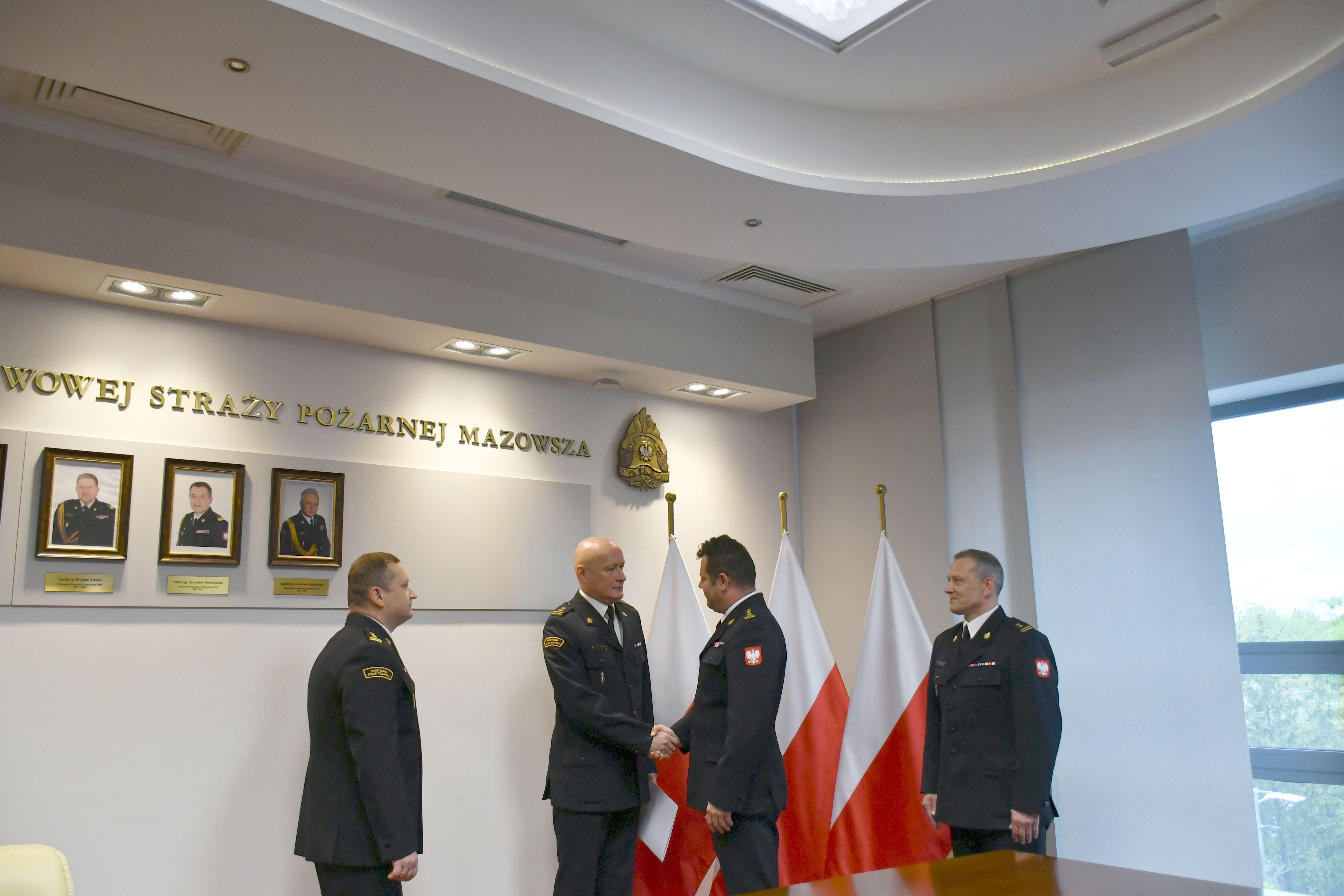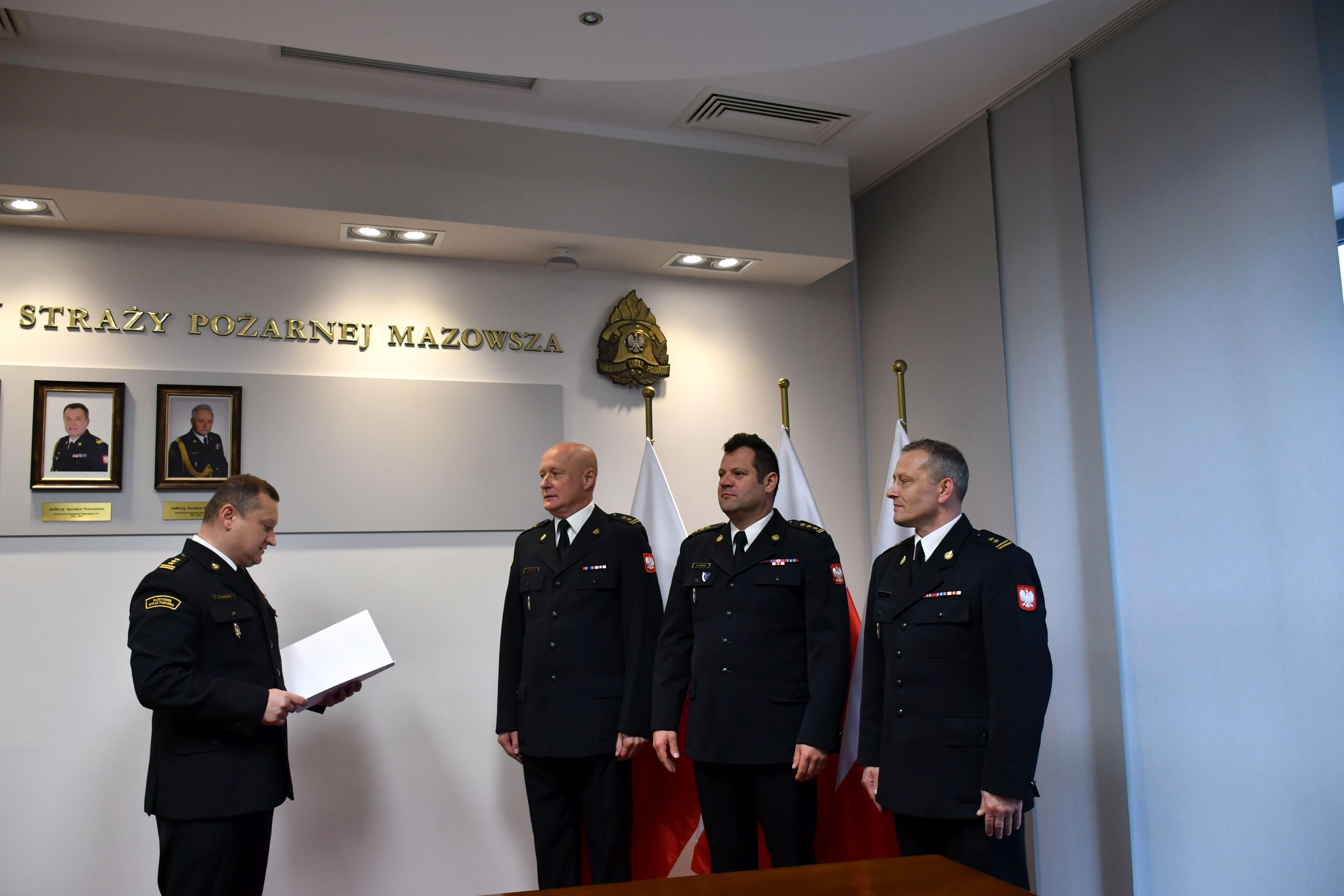Uroczyste wręczenie decyzji personalnej odbyło się w siedzibie Komendy Wojewódzkiej PSP w Warszawie w obecności bryg. Karola Kurasa - Komendanta Powiatowego PSP w Piasecznie oraz st. bryg. Marcina Koneckiego - Naczelnika Wydziału Kadr KW PSP w Warszawie.