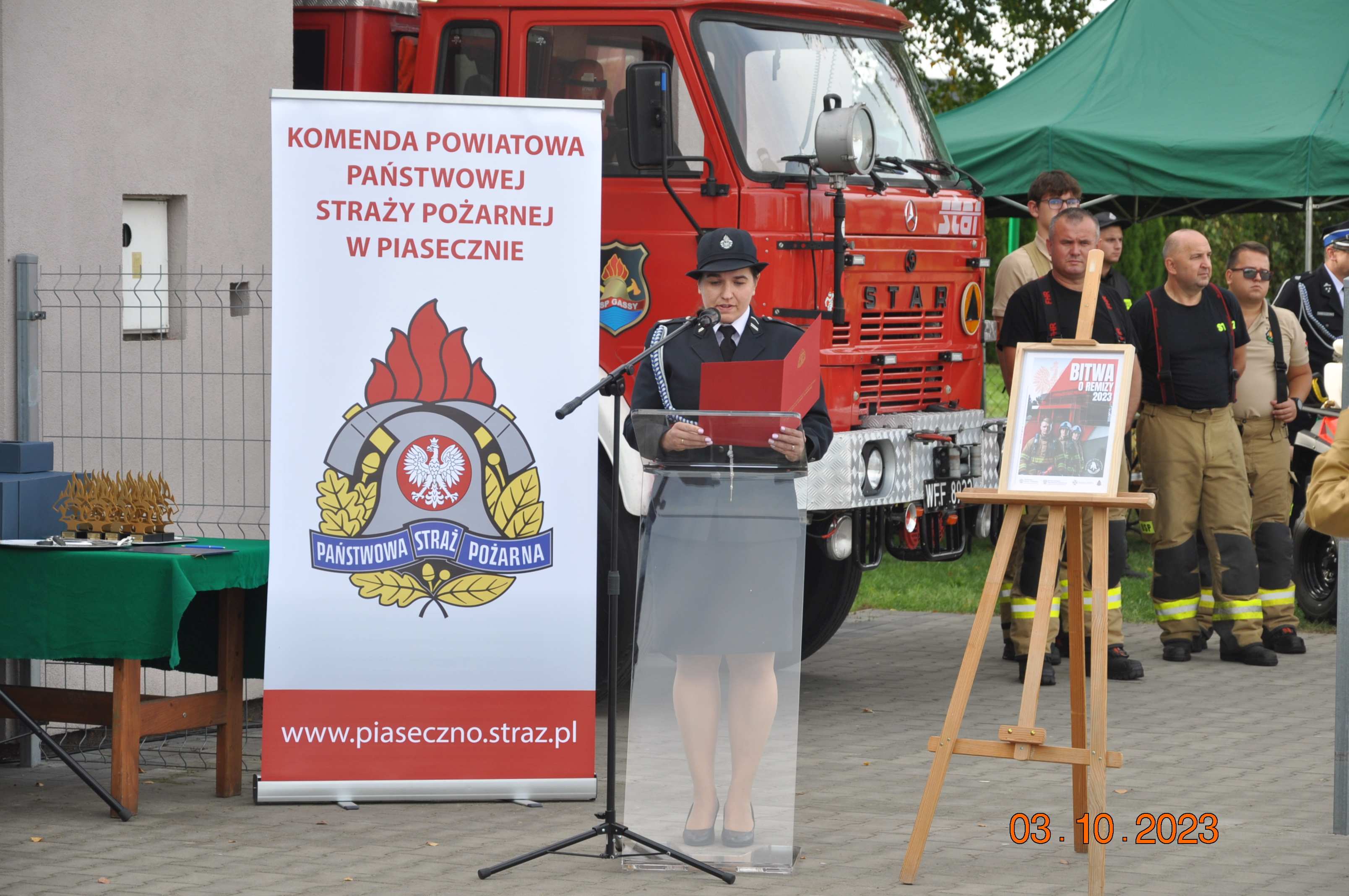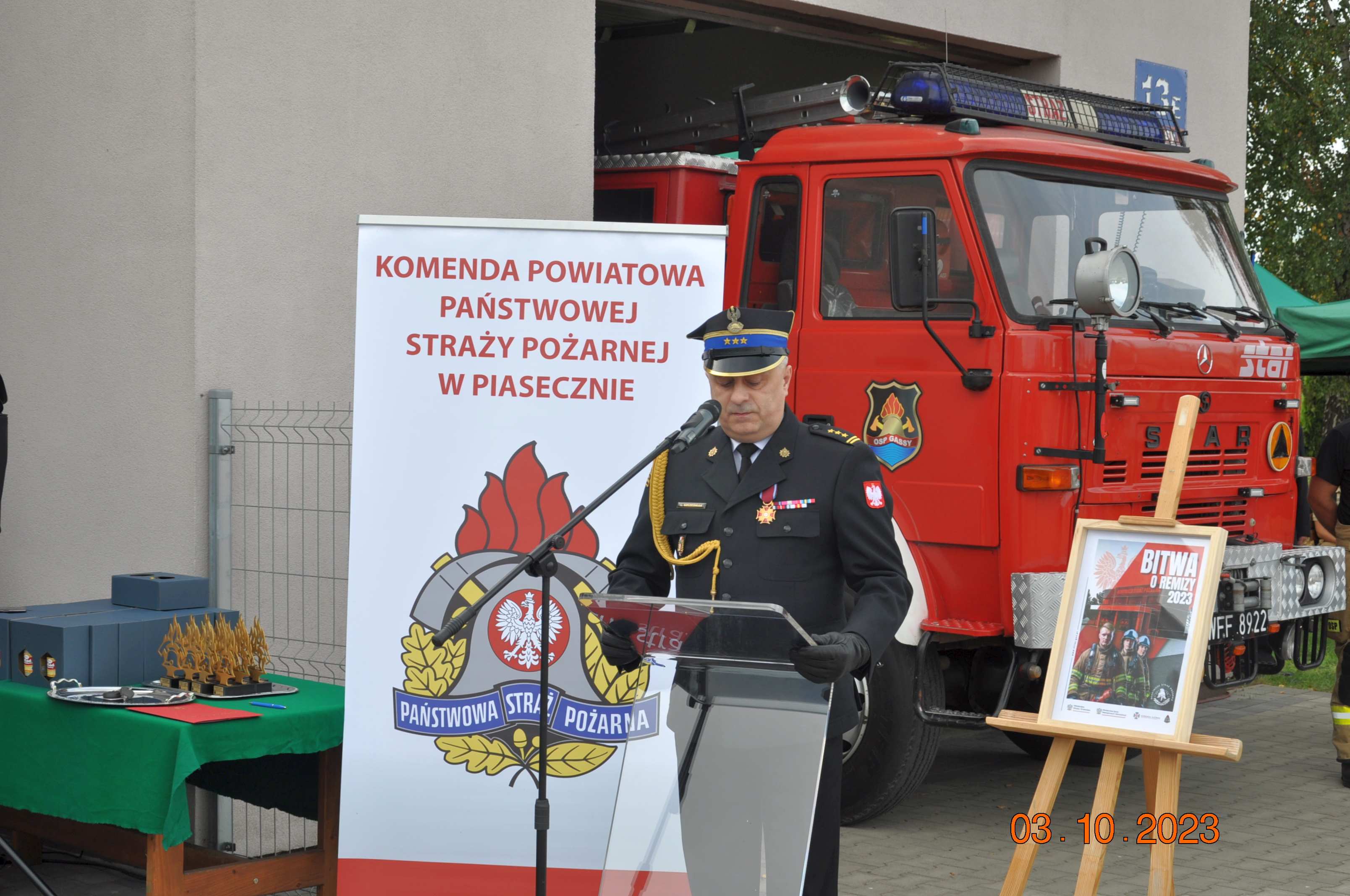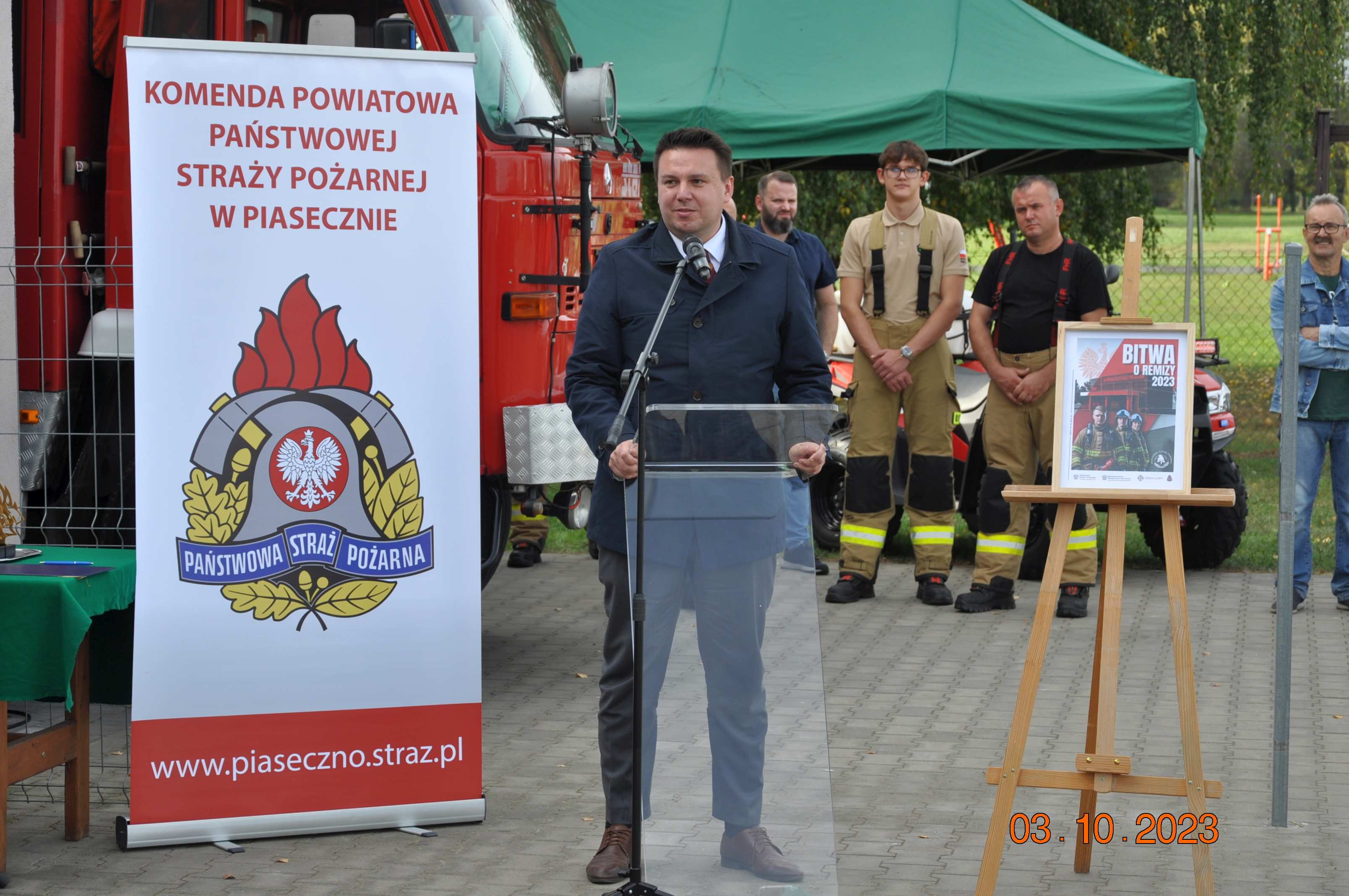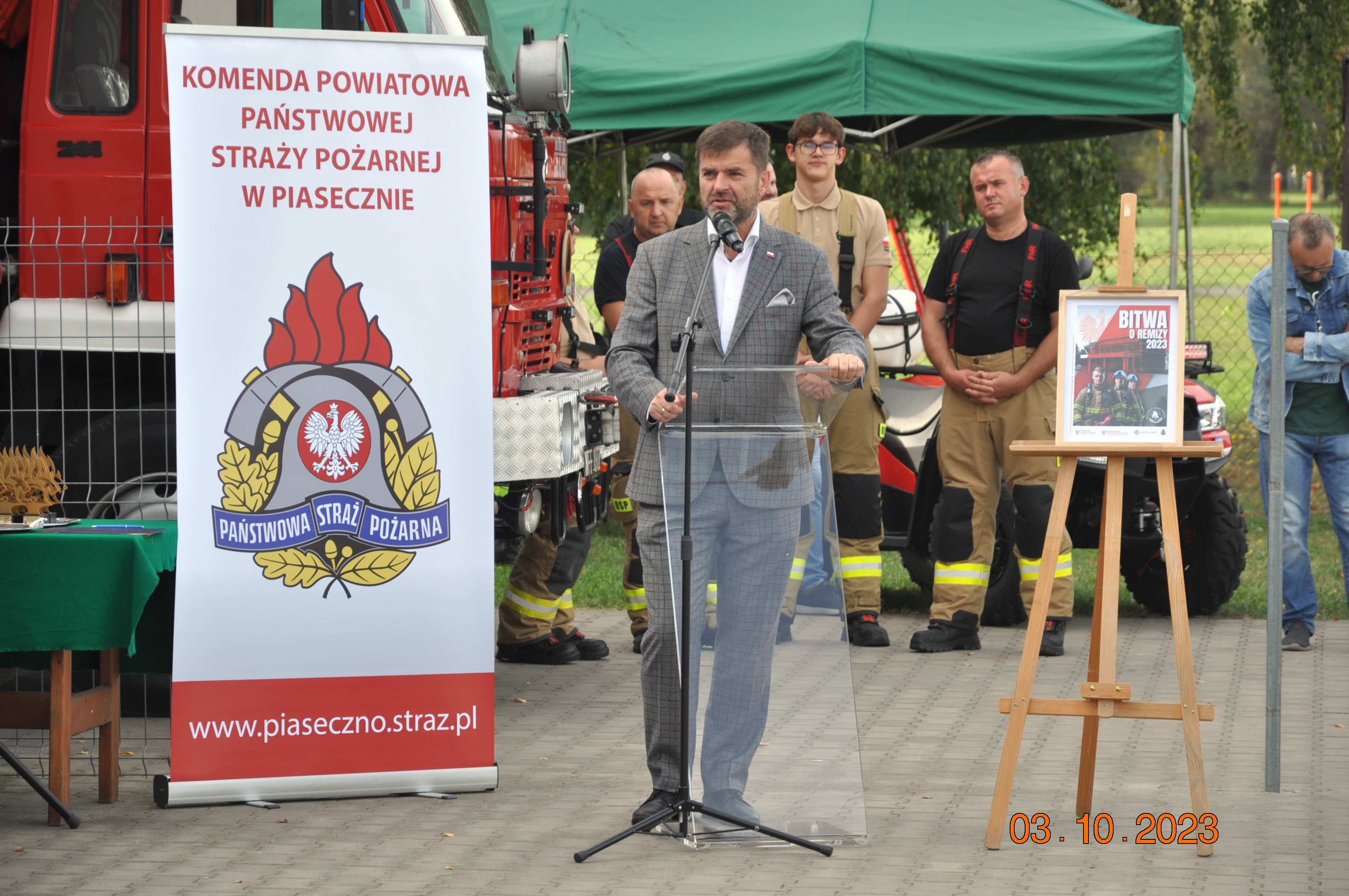 Podczas przemówień zaproszeni goście zwrócili uwagę na nowy program skierowany dla Ochotniczych Straży Pożarnych – „Bitwa o remizy”. To profrekwencyjna inicjatywa Ministerstwa Klimatu i Środowiska oraz Ministerstwa Spraw Wewnętrznych i Administracji, gdzie gmina do 20 tys. mieszkańców z największą frekwencją w danym powiecie w wyborach do Sejmu i Senatu, otrzyma 1 milion złotych dotacji na termomodernizację, remont i wyposażenie remizy strażackiej.