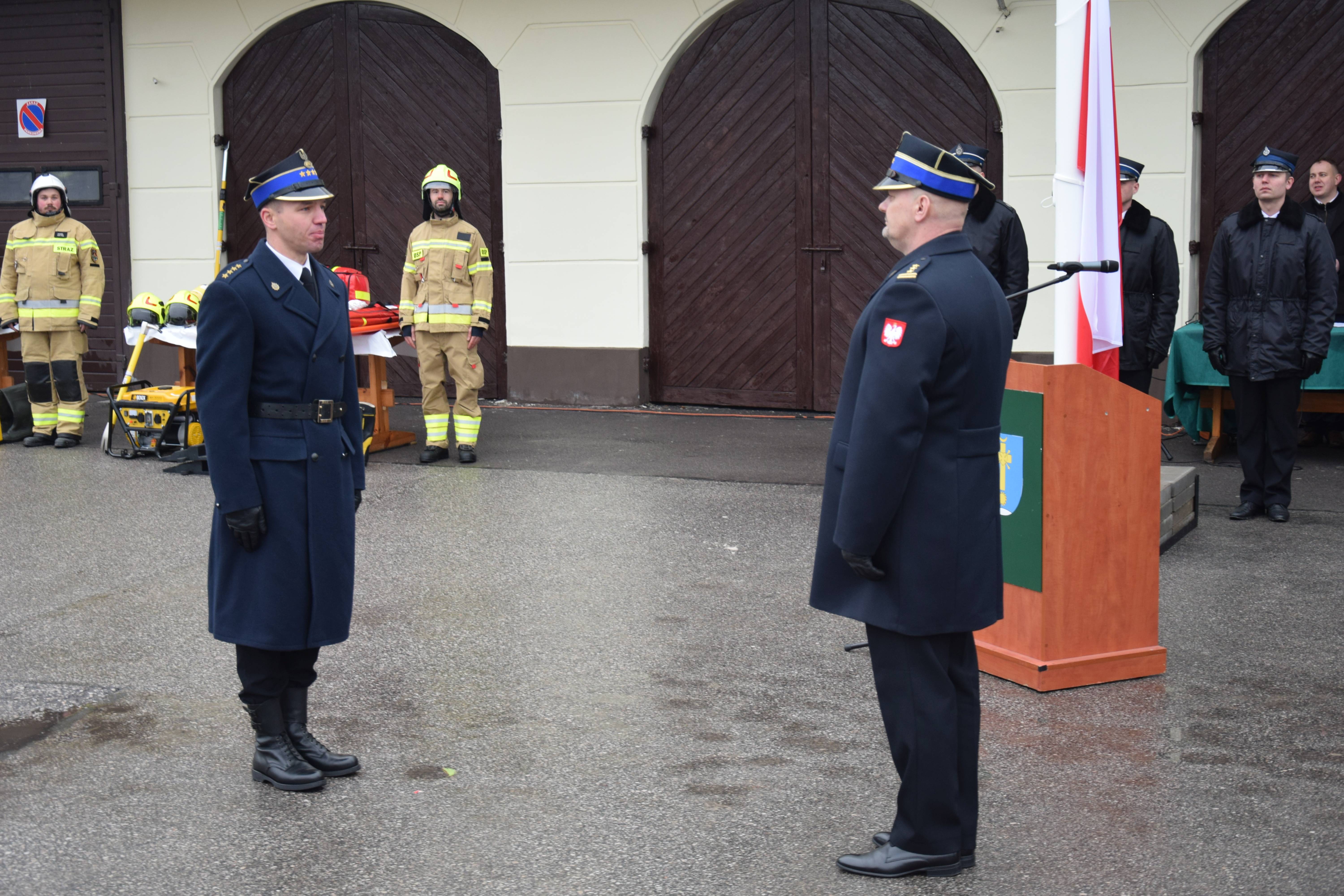 Po przywitaniu przybyłych gości przez st. bryg. Leszka Szcześniaka Komendanta Powiatowego Państwowej Straży Pożarnej w Piasecznie nastąpiło uroczyste wręczenie aktów przekazania wyposażenia.