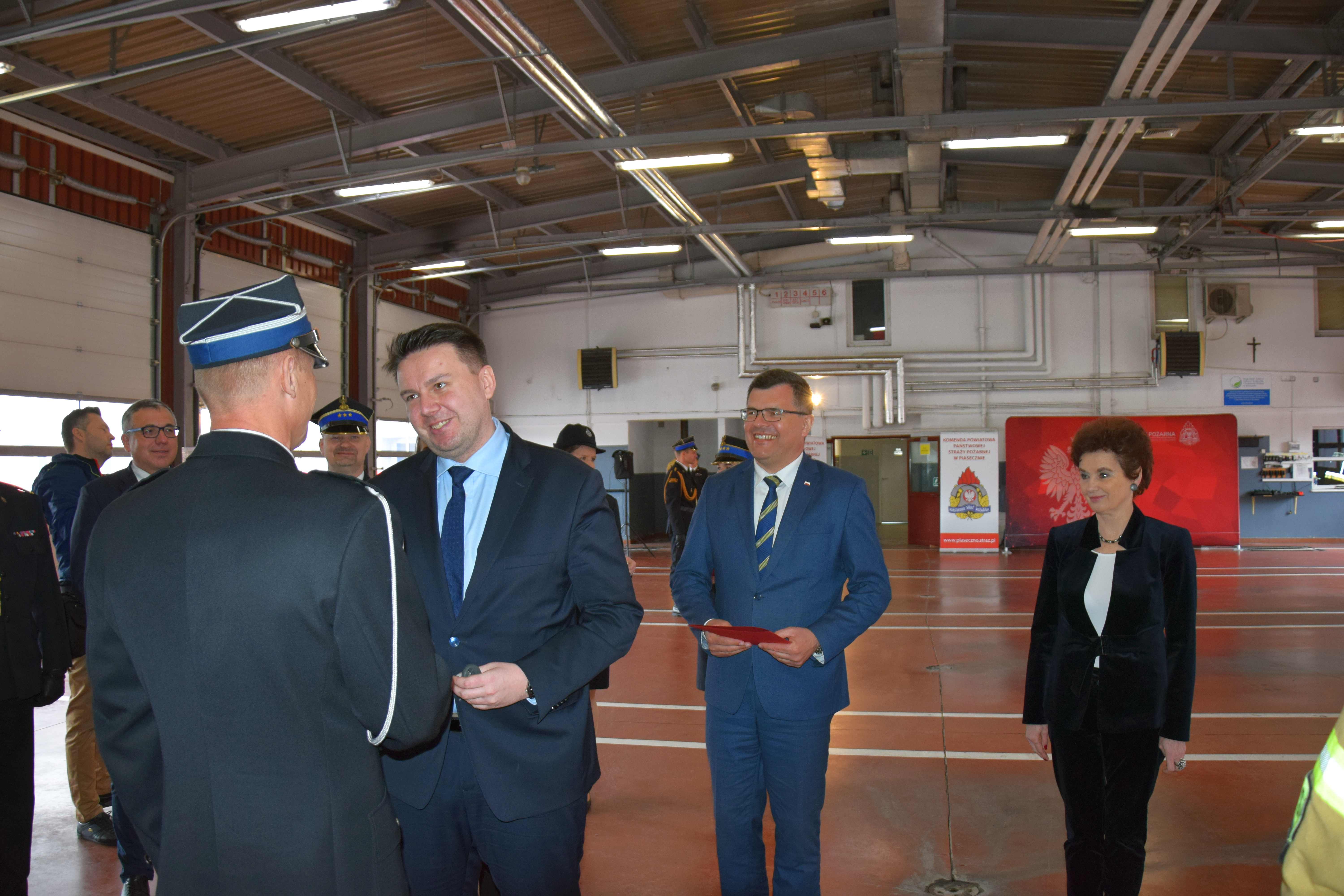 Po przywitaniu przybyłych gości przez Komendanta Powiatowego PSP w Piasecznie st. bryg. Leszka Szcześniaka nastąpiło uroczyste wręczenie aktów przekazania sprzętu ratowniczego dla jednostek OSP.