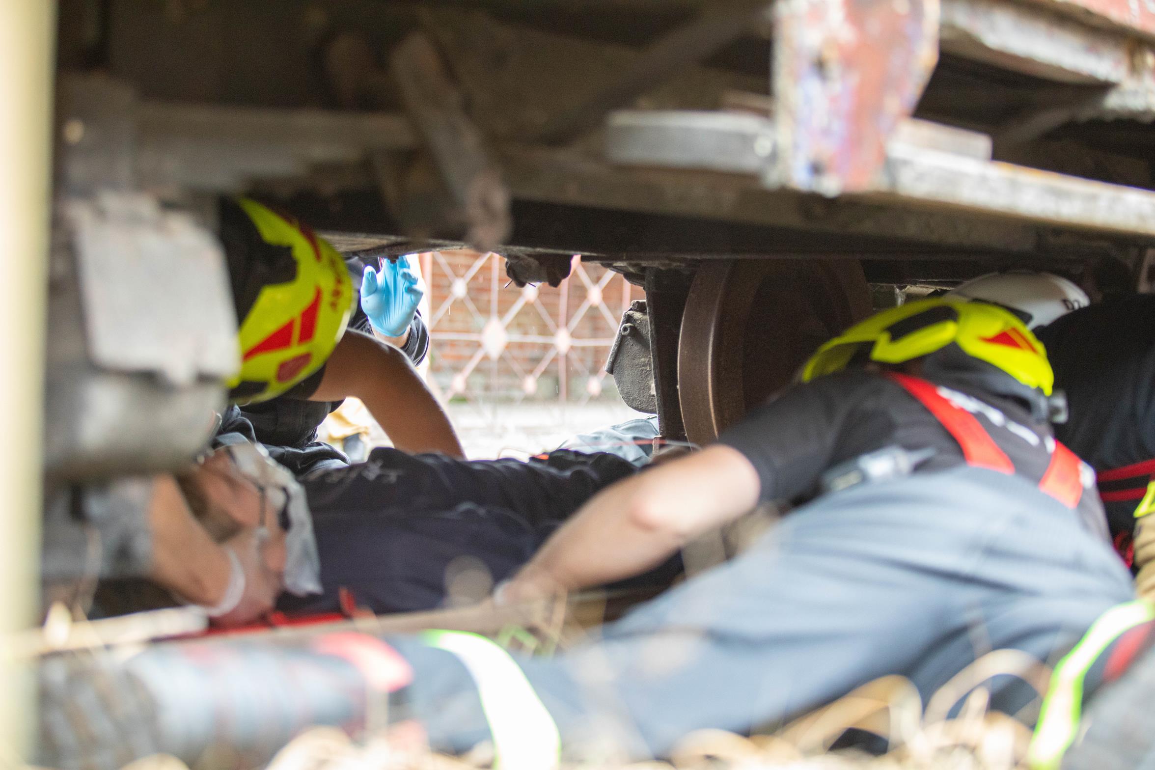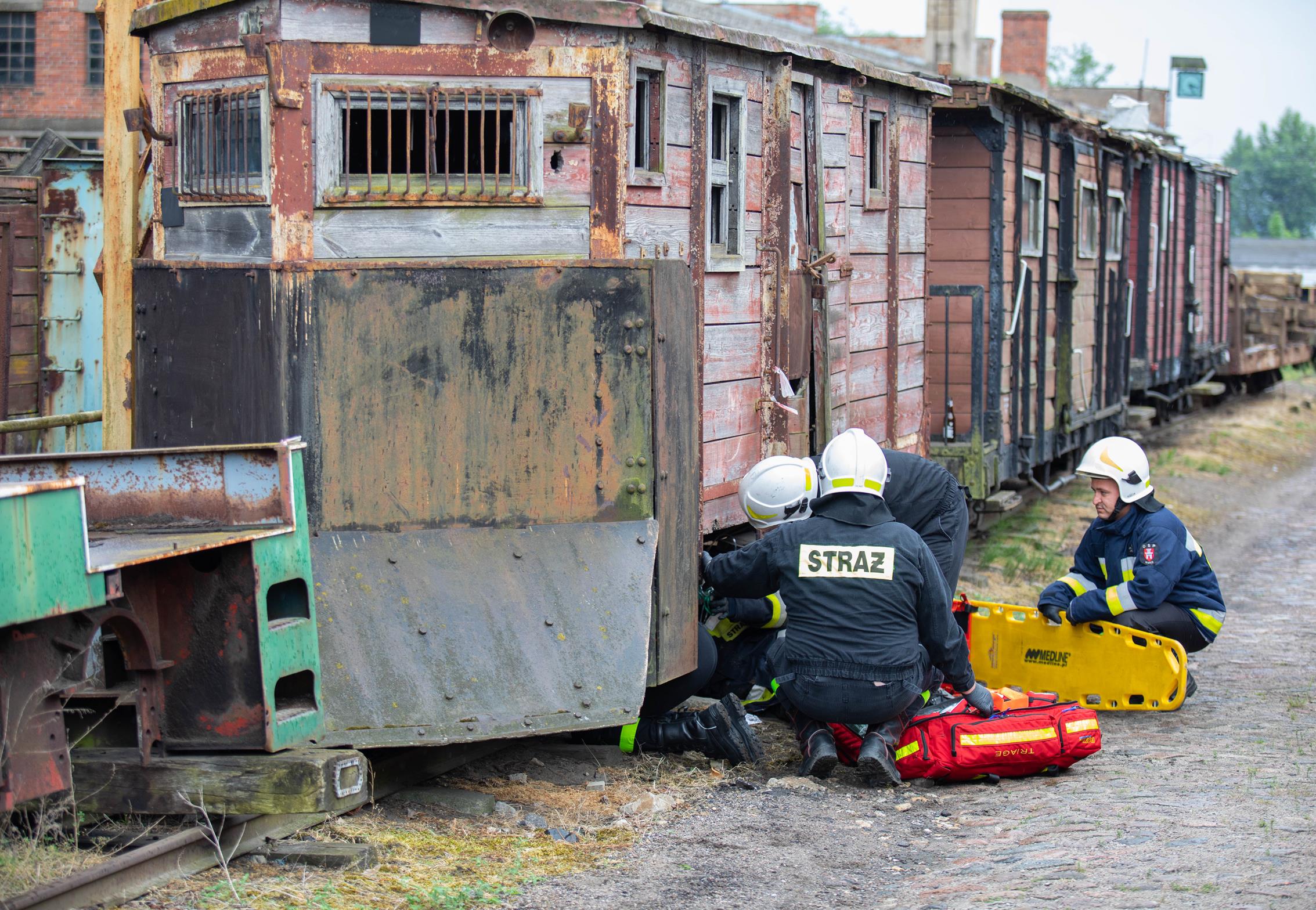 - Osoba poszkodowana z urazami pod wagonem kolejki wąskotorowej.
