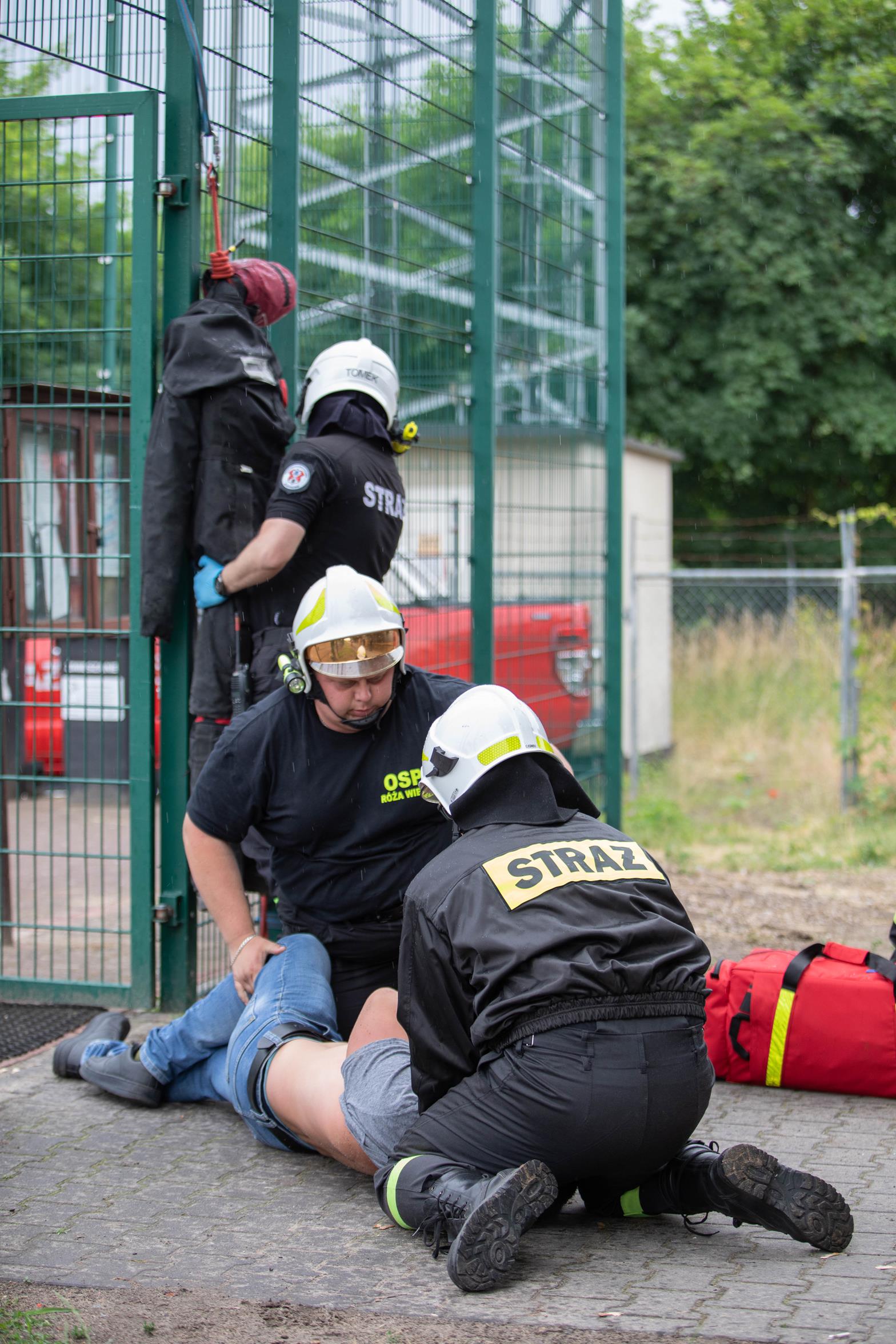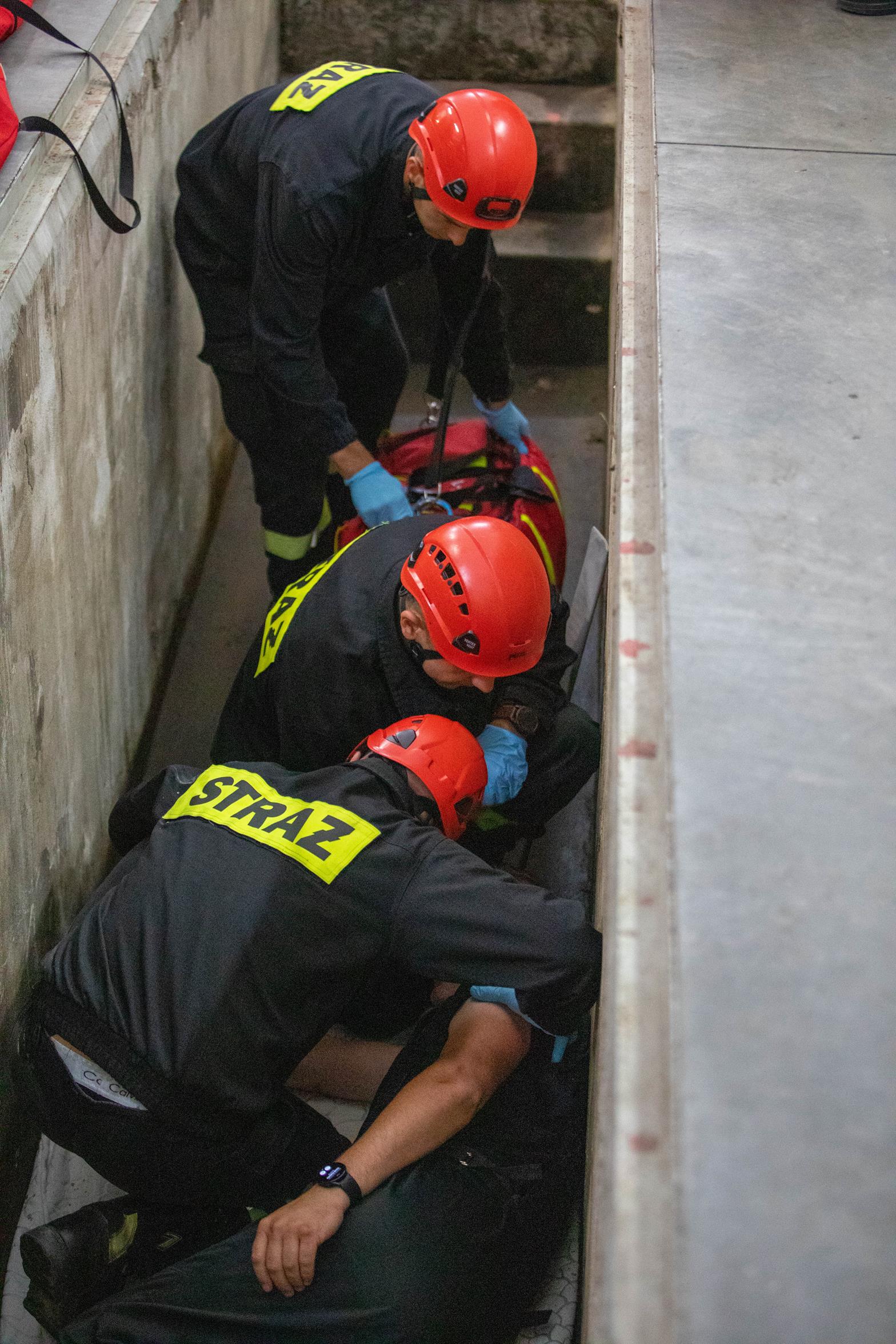 - Osoba poszkodowana z urazami znajdująca się poniżej poziomu terenu (kanał rewizyjny w strażnicy OSP).