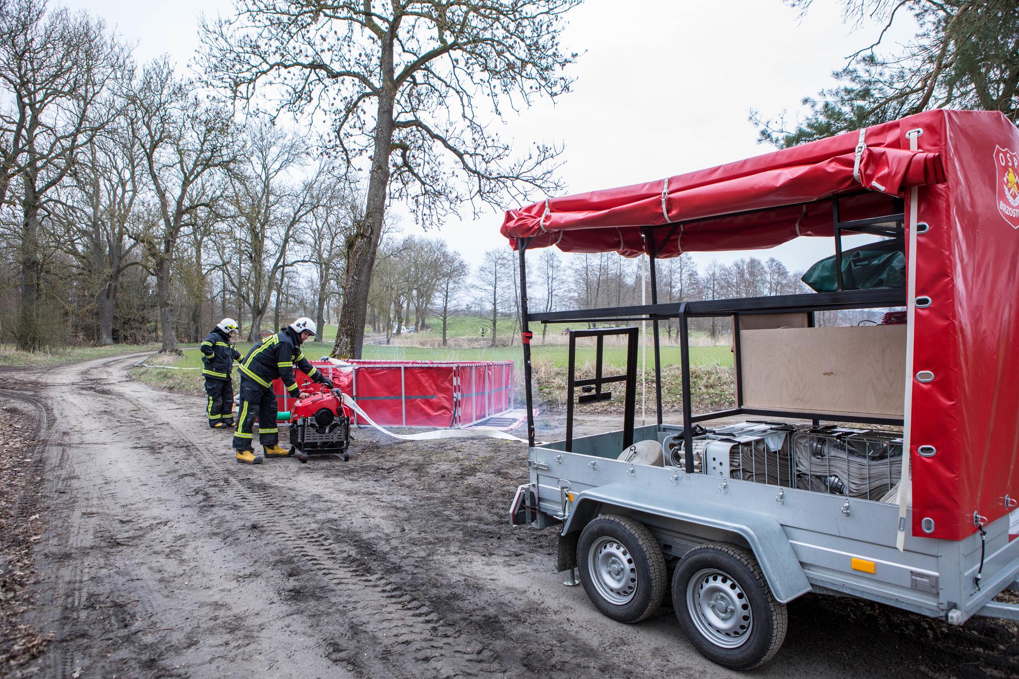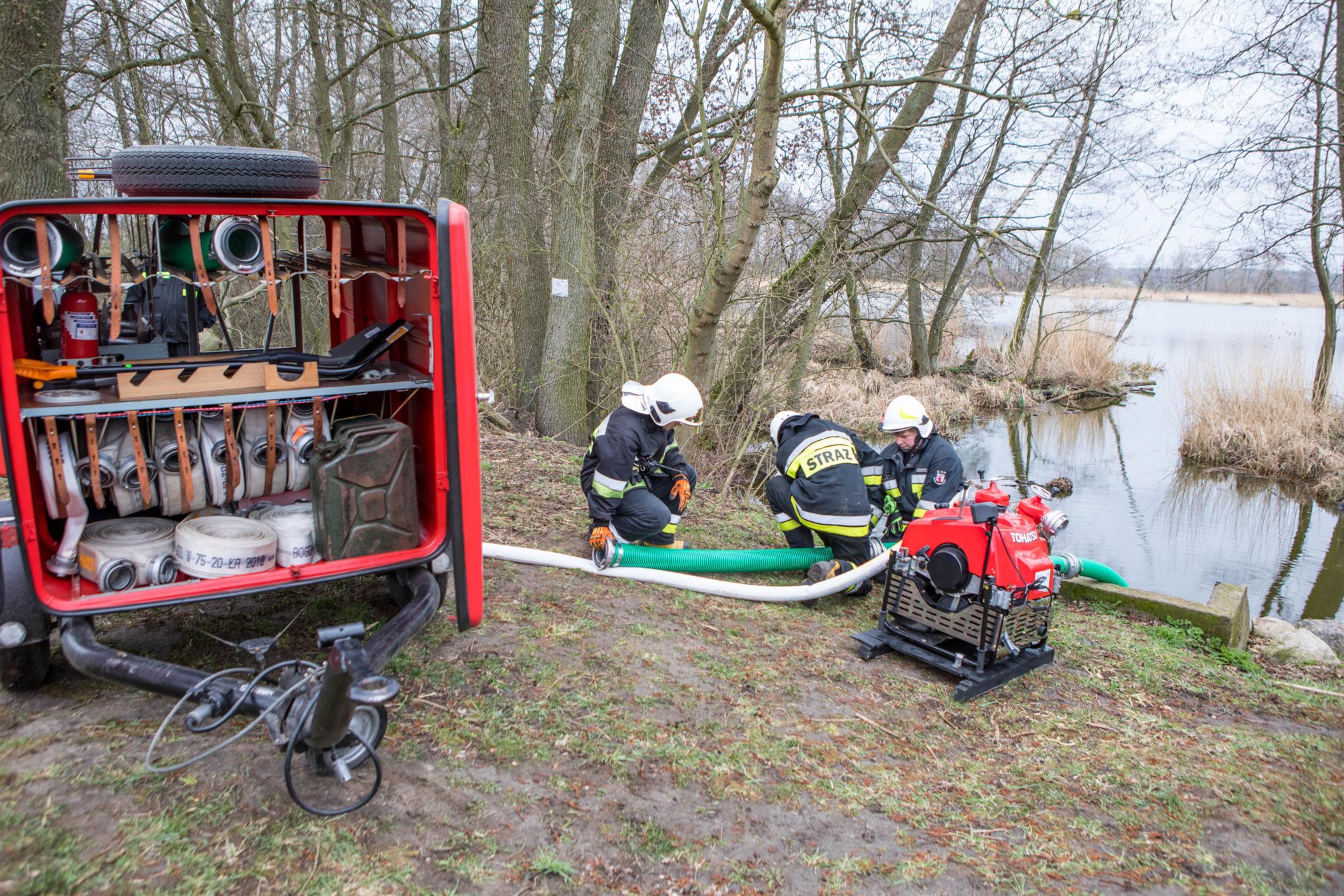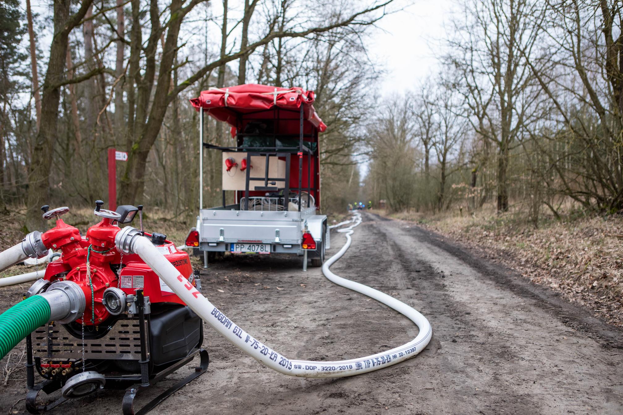 Głównym założeniem było dostarczenie wody na miejsce prowadzonych działań gaśniczych w oparciu o naturalny zbiornik wodny – jezioro Stare znajdujące się w pobliżu miejsca prowadzenia działań, a także specjalistyczny sprzęt strażacki, przygotowany specjalnie do takich działań.