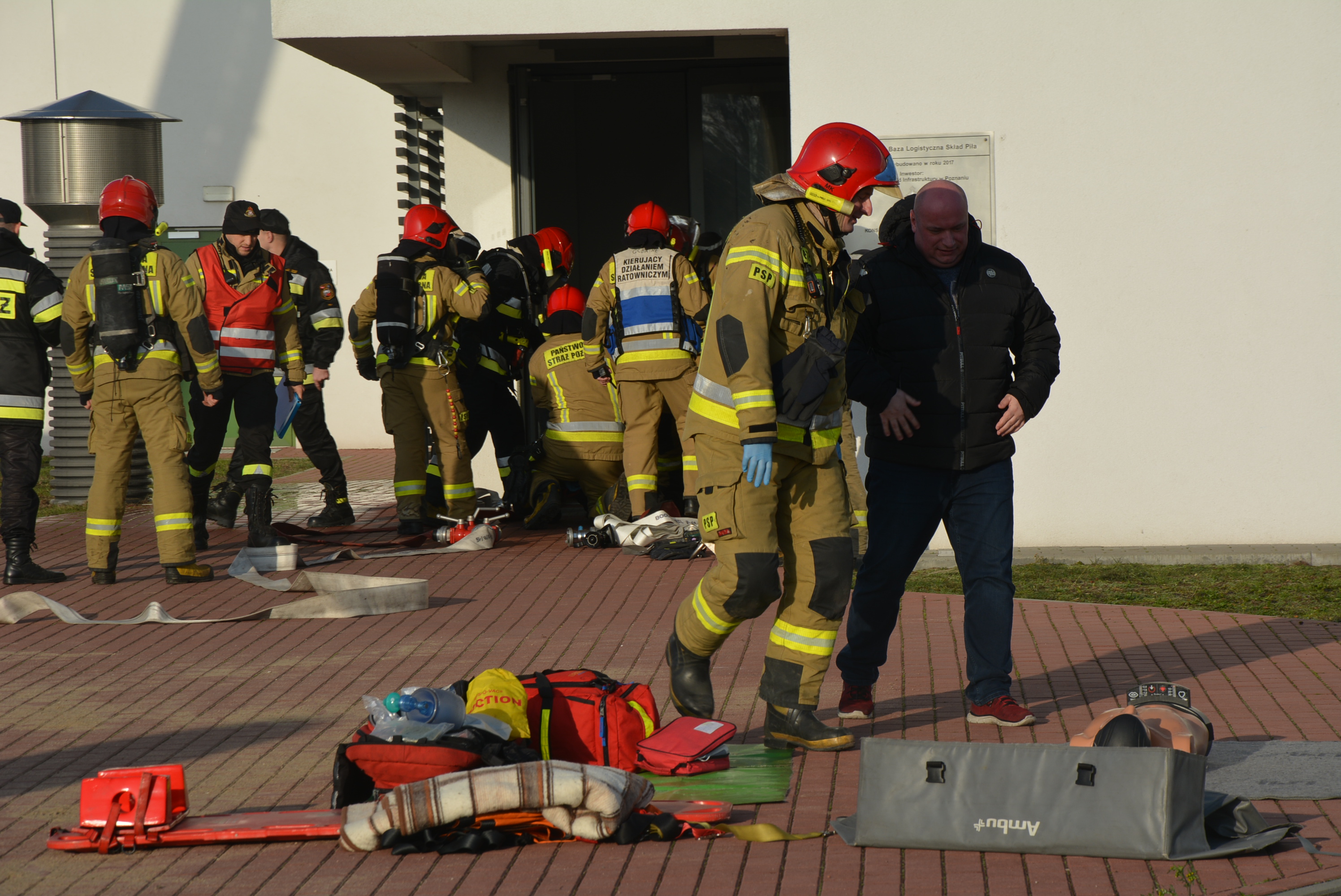 Założenie do ćwiczeń zakładało zadymienie części pomieszczeń administracyjnych na pierwszym piętrze budynku 1 Regionalnej Bazie Logistycznej Wielkopowierzchniowego Wielobranżowego Składu Materiałów w Pile. Po przeprowadzonej ewakuacji obiektu przez kierownika zakładu stwierdzono że w budynku pozostały dwie osoby. Podczas ćwiczeń strażacy mieli możliwość przetrenowania szeregu czynności wyznaczonych przez dowódcę w tym: wprowadzenie linii gaśniczej do obiektu, przeszukanie pomieszczeń, udzielanie kwalifikowanej pomocy oraz nadzorowanie czasu pracy strażaka w sprzęcie ochrony dróg oddechowych.