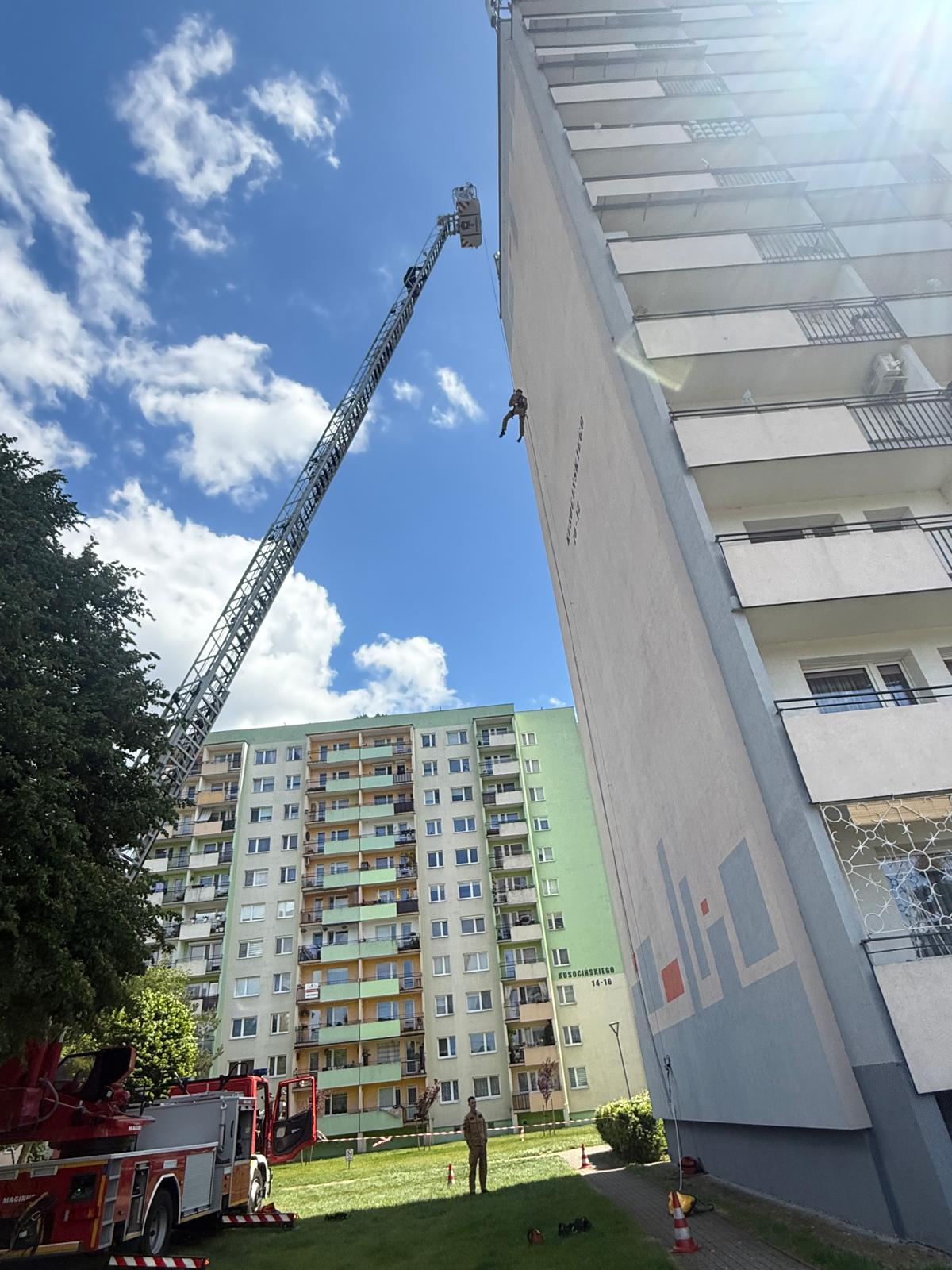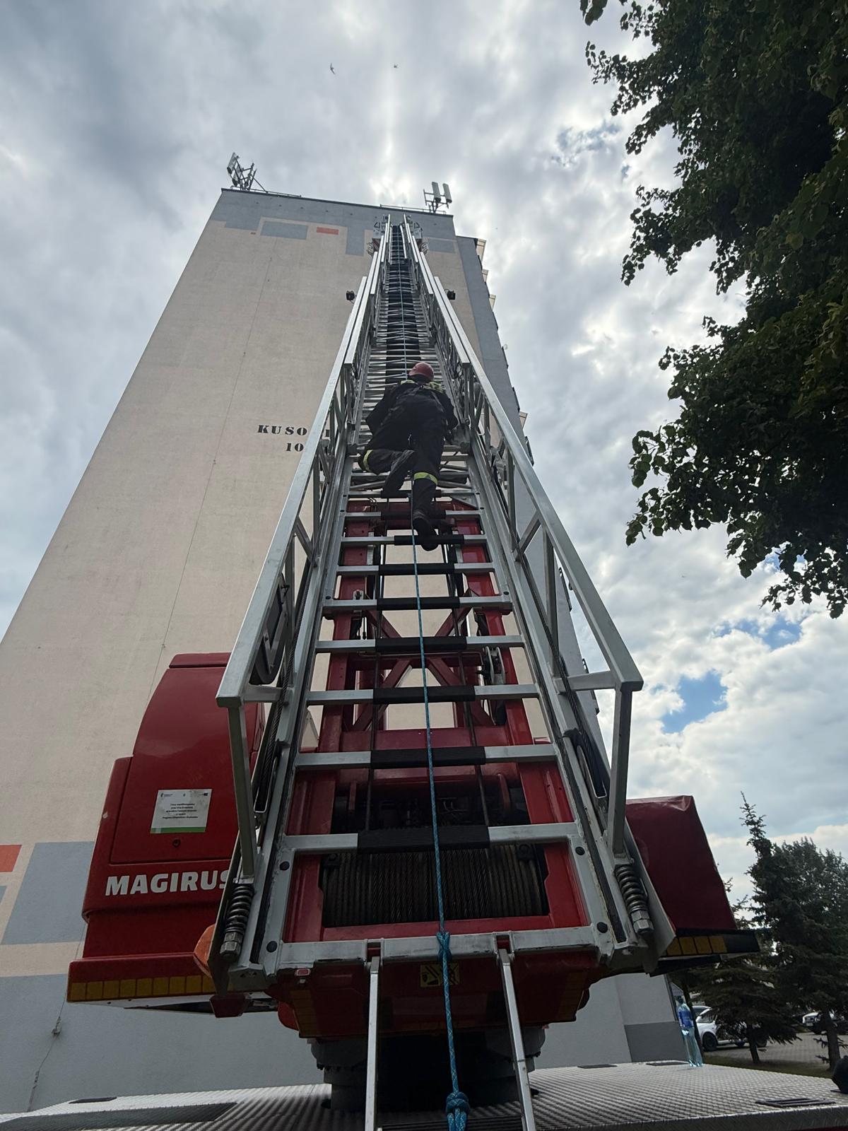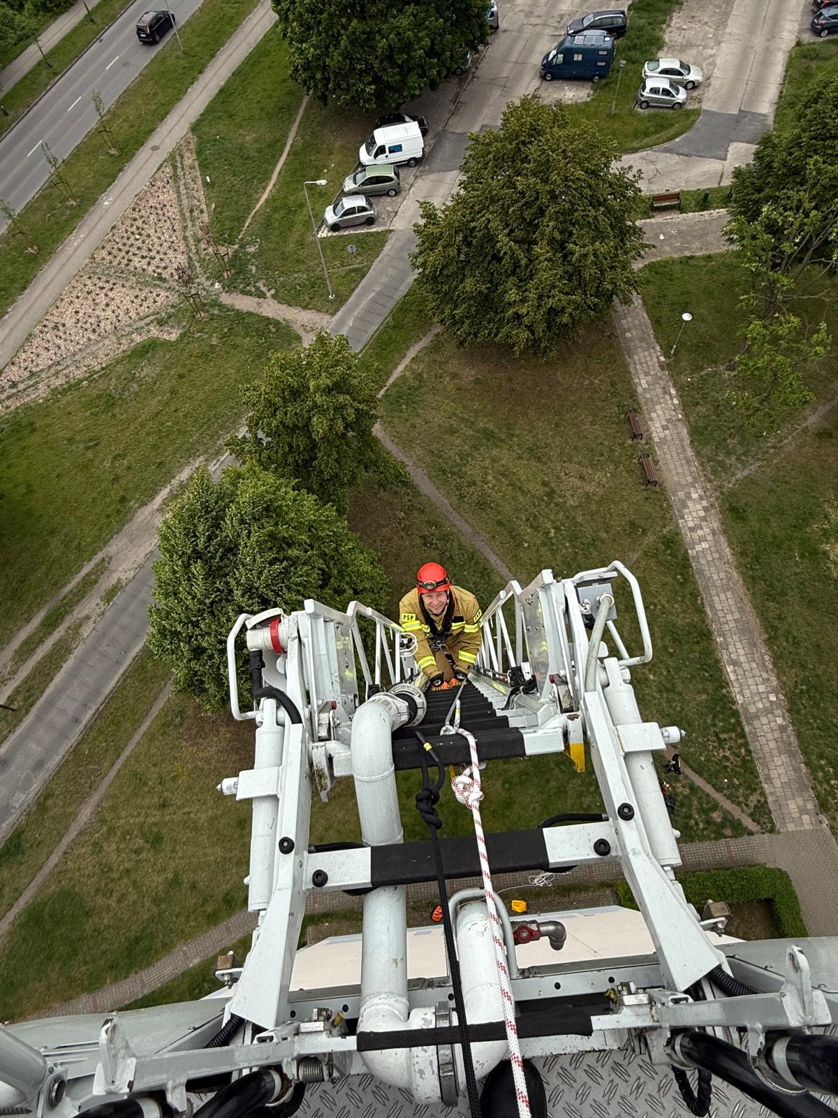 - wejście po drabinie mechanicznej i samoratowanie z kosza