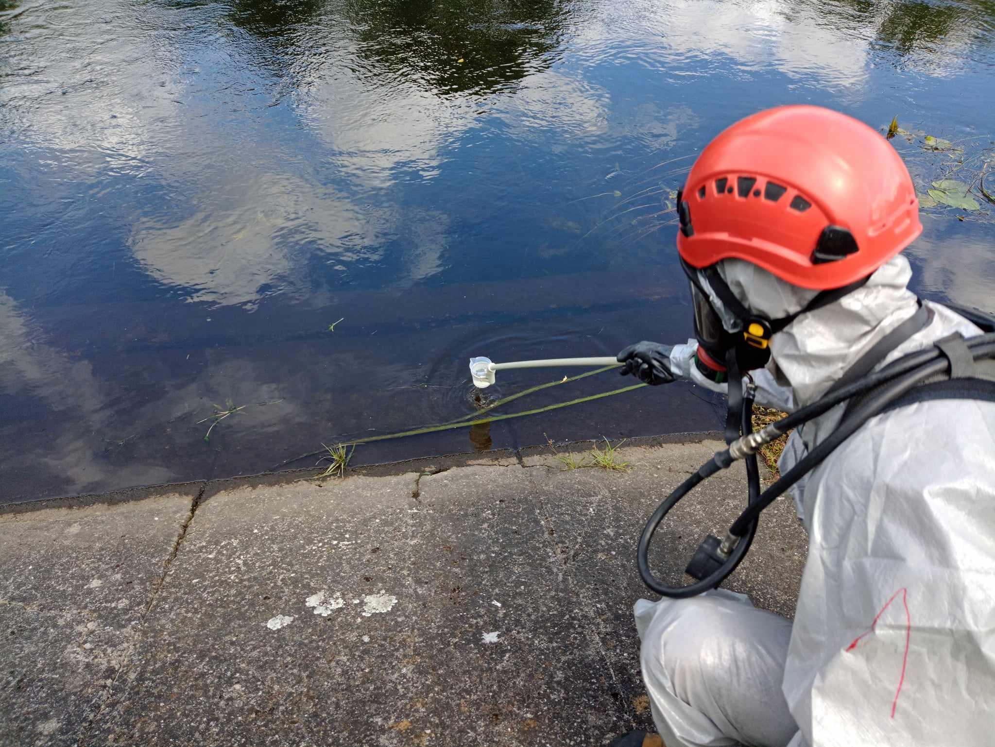 - sprawdzenie strefy wokół miejsca zdarzenia i pobraniu próbki wody oraz określeniu jej stopnia skażenia
