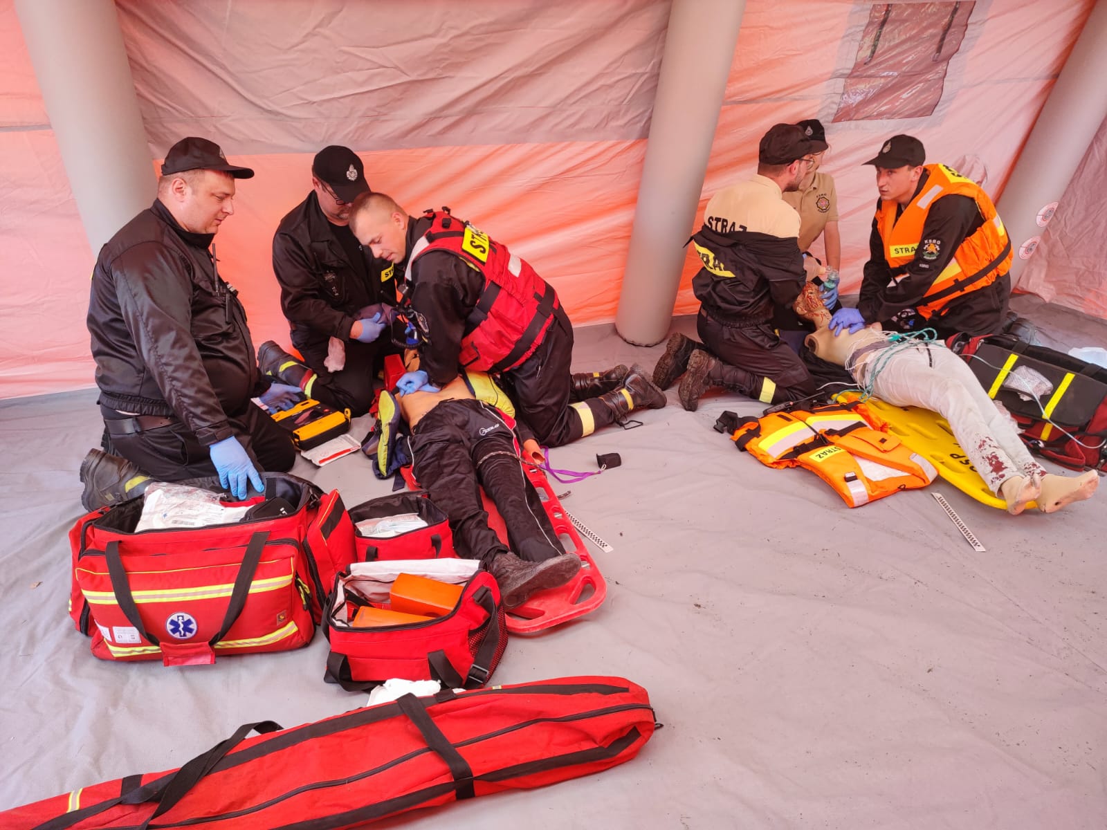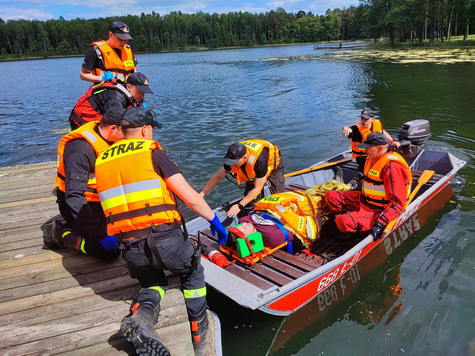 Scenariusz ćwiczeń zakładał ewakuację osób poszkodowanych drogą wodną z obozowiska survivalowego oraz dwie osoby znajdujące się w wodzie.