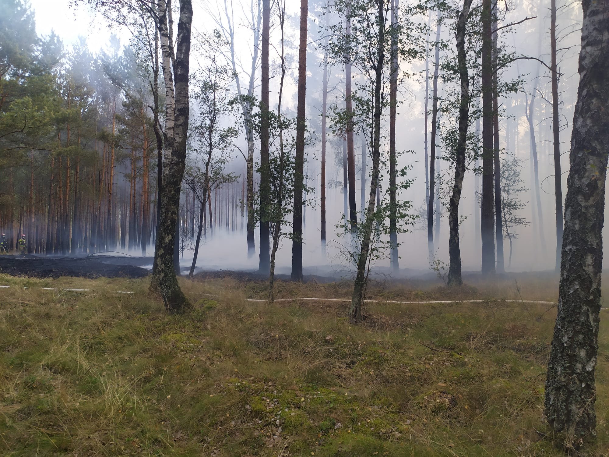 1,5 ha spalonego lasu i wstępne straty oszacowane na ponad 200 tysięcy złotych, to bilans pożaru lasu, do którego doszło 05 sierpnia 2022 roku w Pile, w Leśnictwie Podlasie, w okolicach jeziora Płocie.